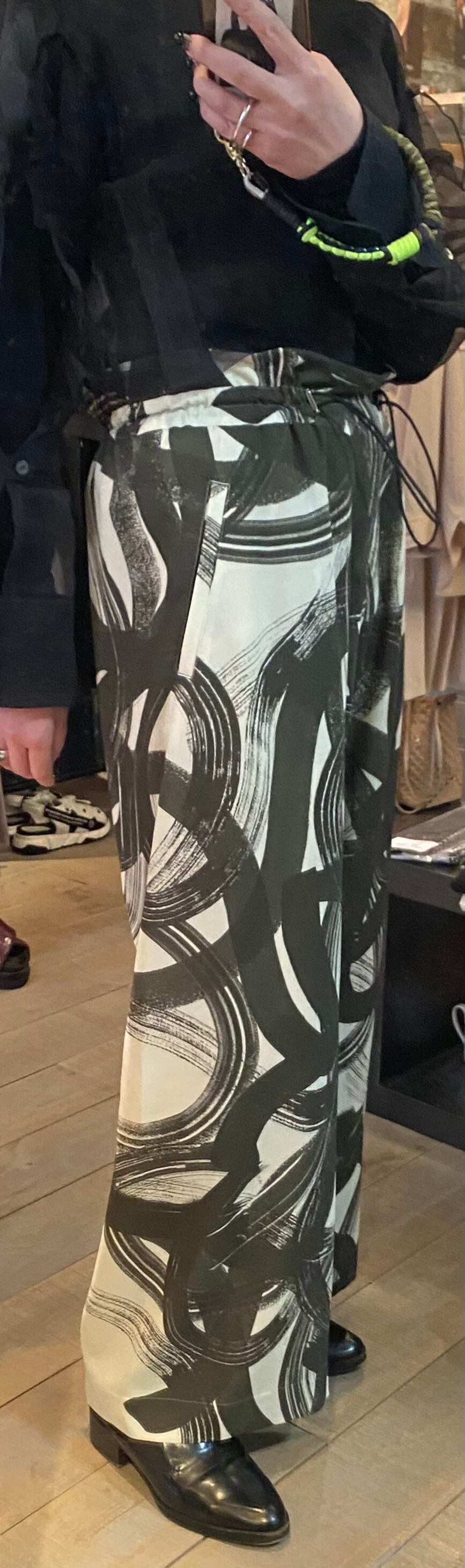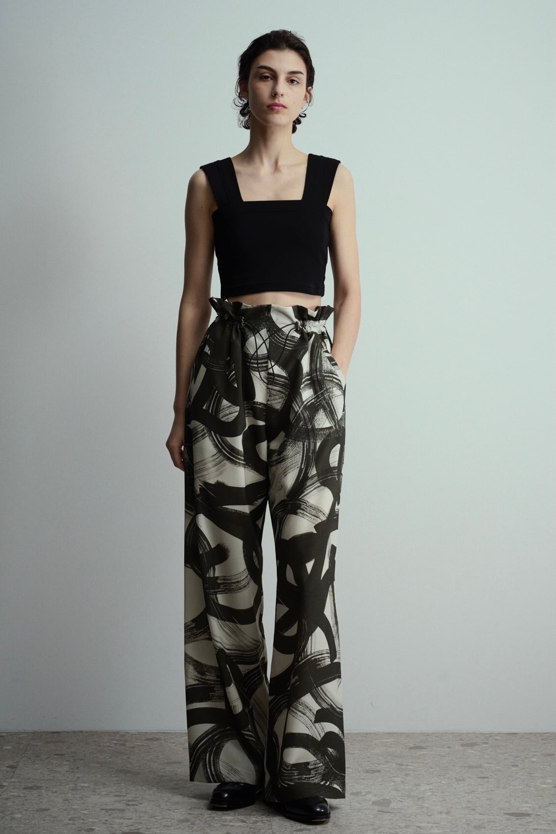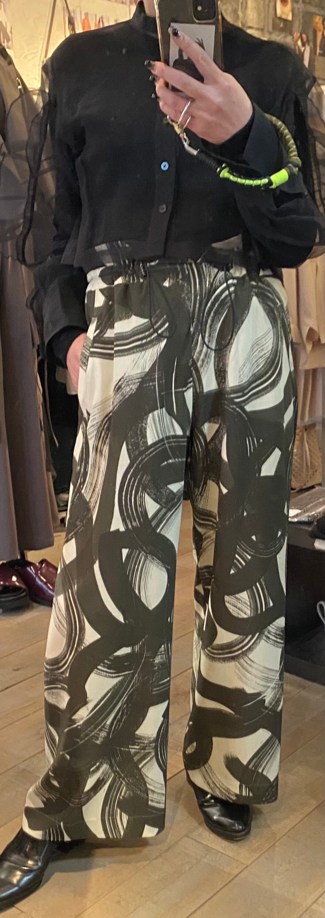 極力ディテールをシンプルにする事でダイナミックなプリント柄を活かしたワイドパンツ。ウエストドローコードがアクティブなアクセントになり、シンプルながらも1枚でサマになるアイテムです。