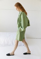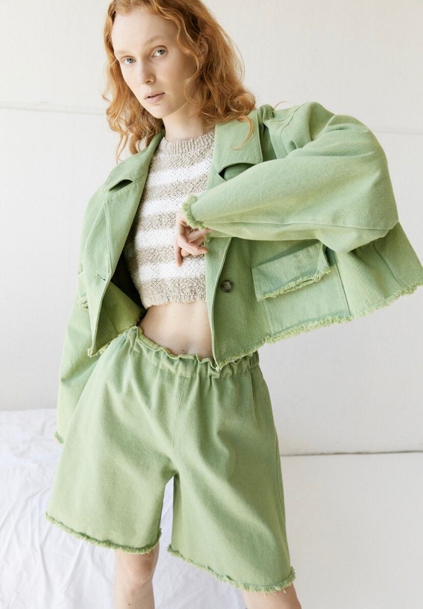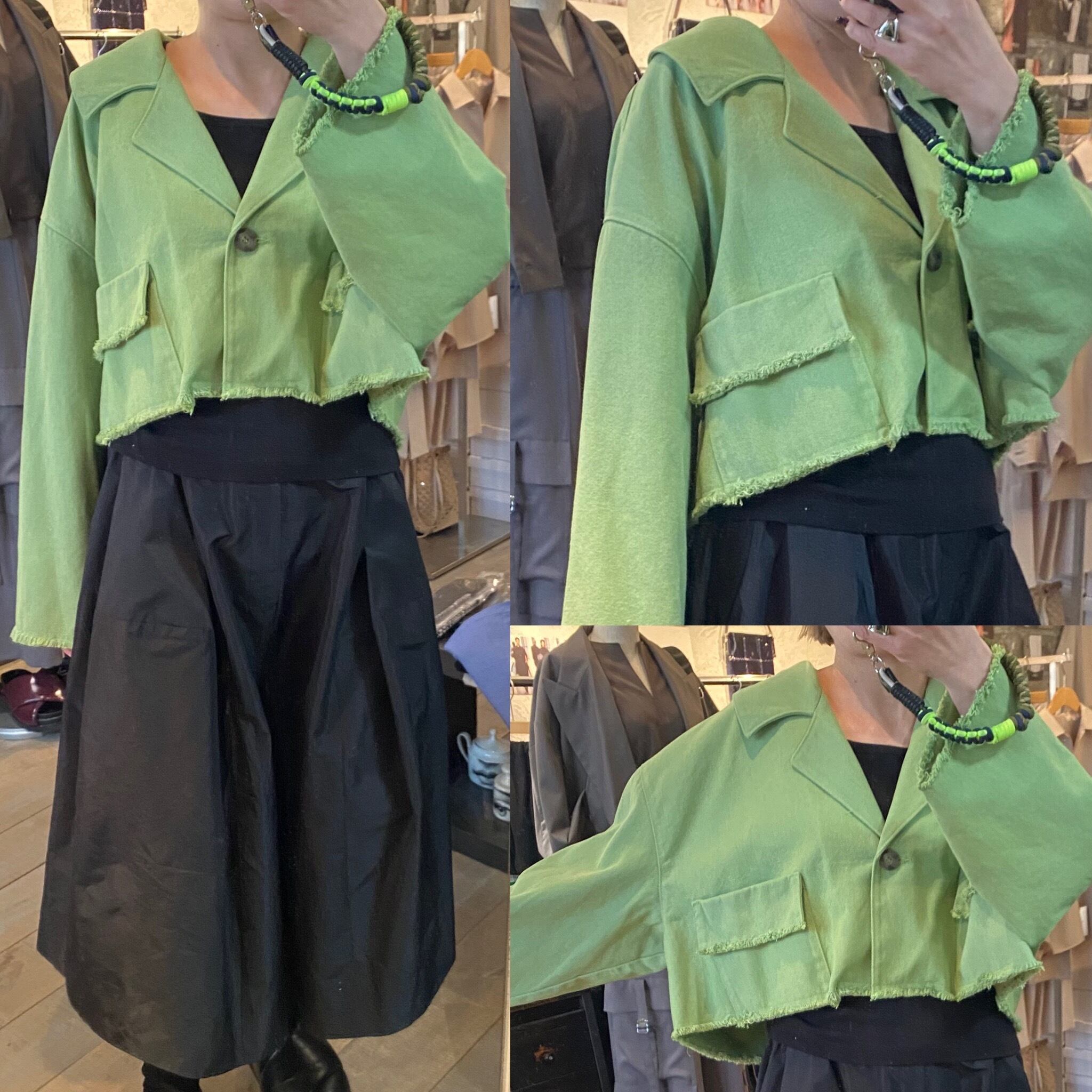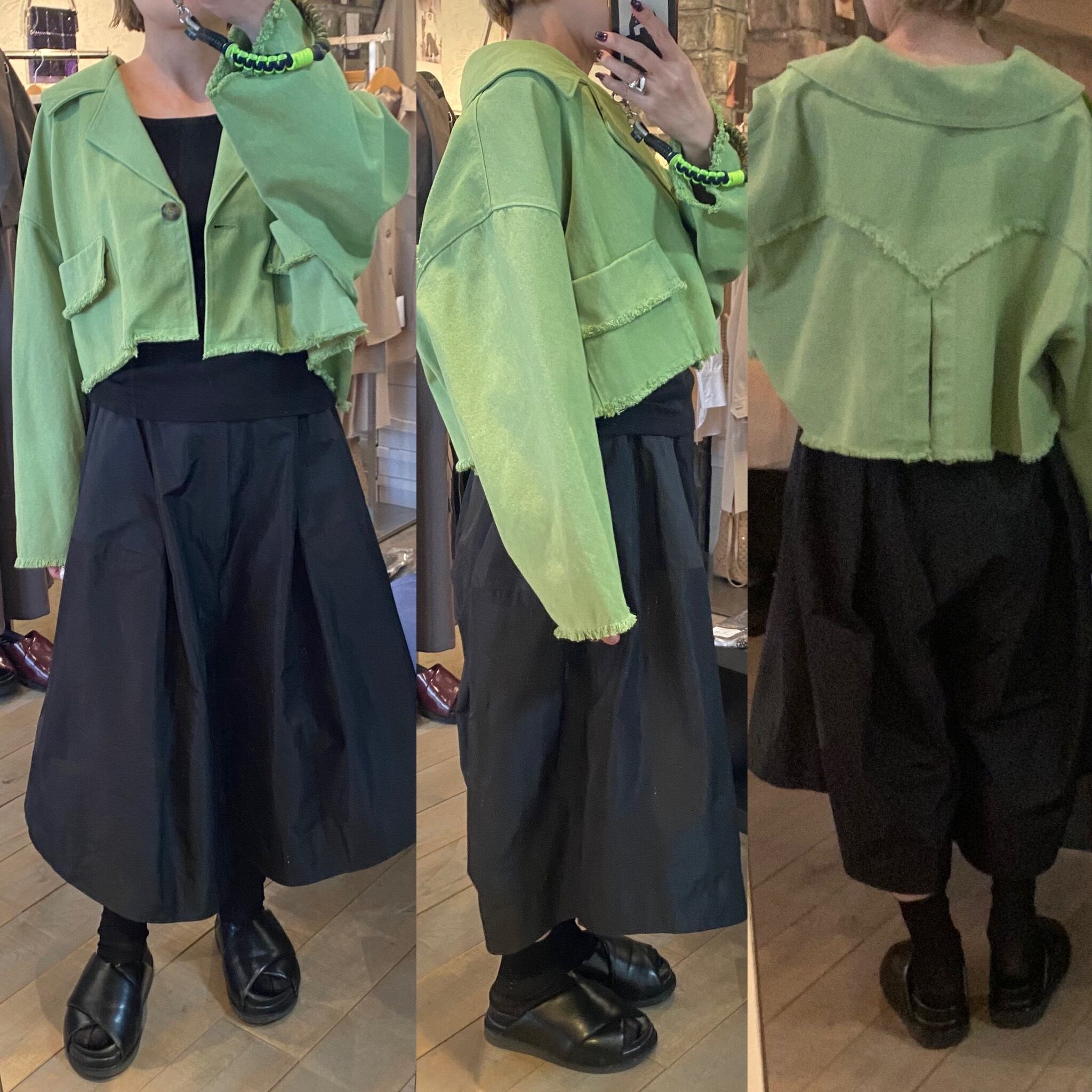 オーバーシルエットのクロップドジャケット。細部にこだわりの詰まったデザインで、サラッと着るだけで雰囲気の出るアイテム。カラーもステキで、スタイリングの主役に♪軽くて羽織りやすいのも◎