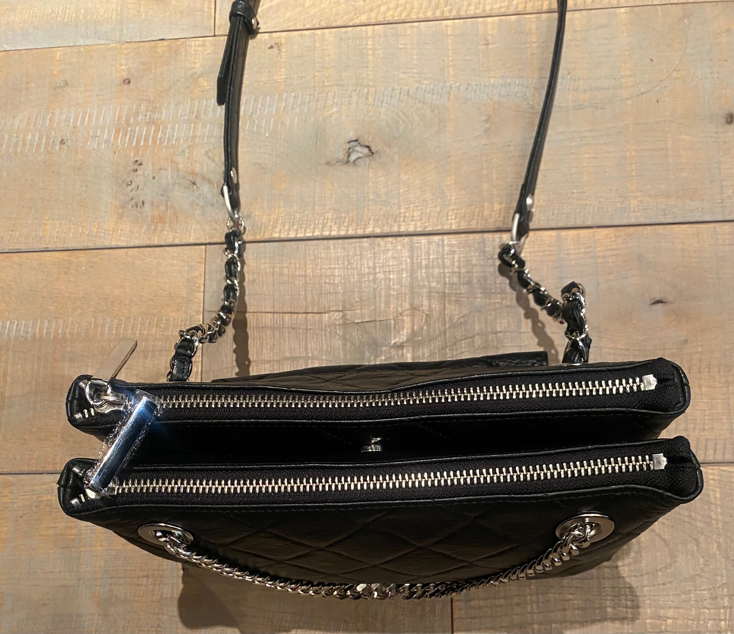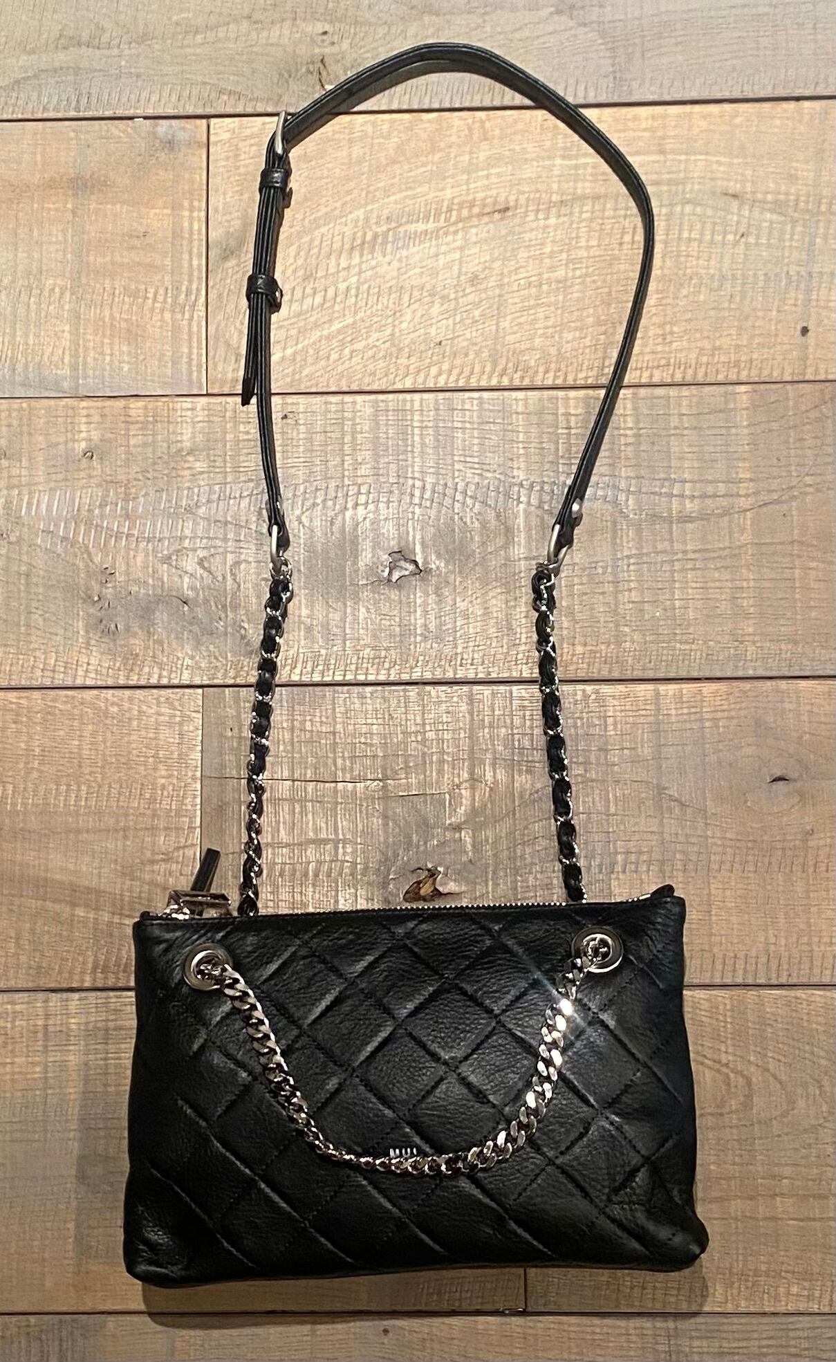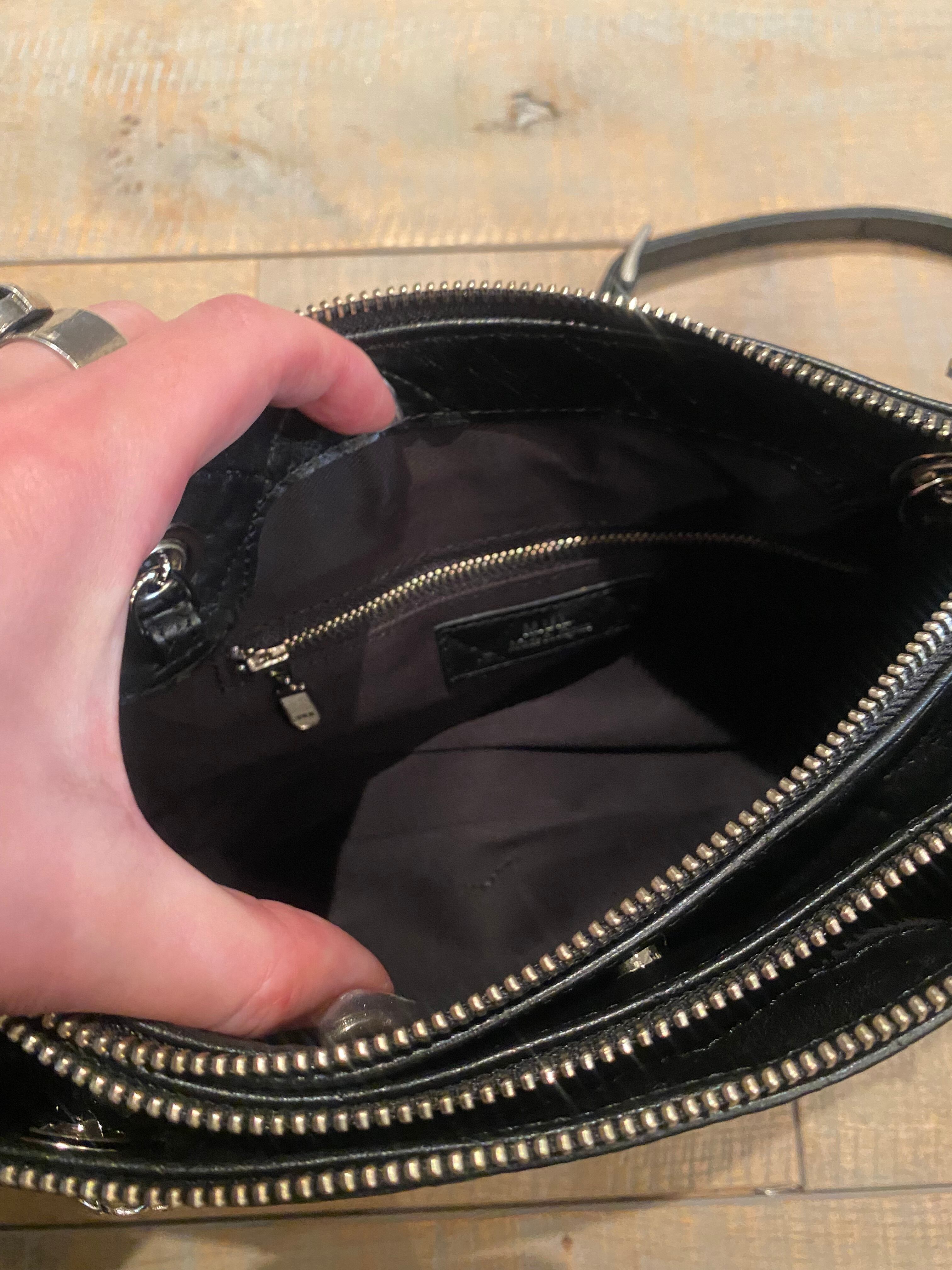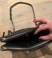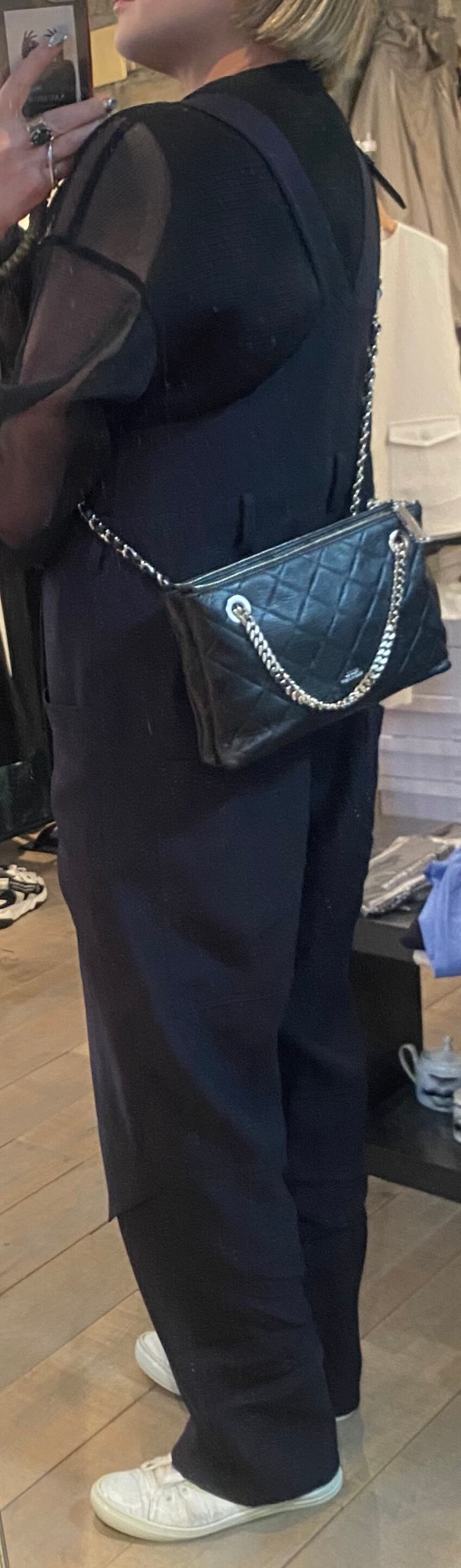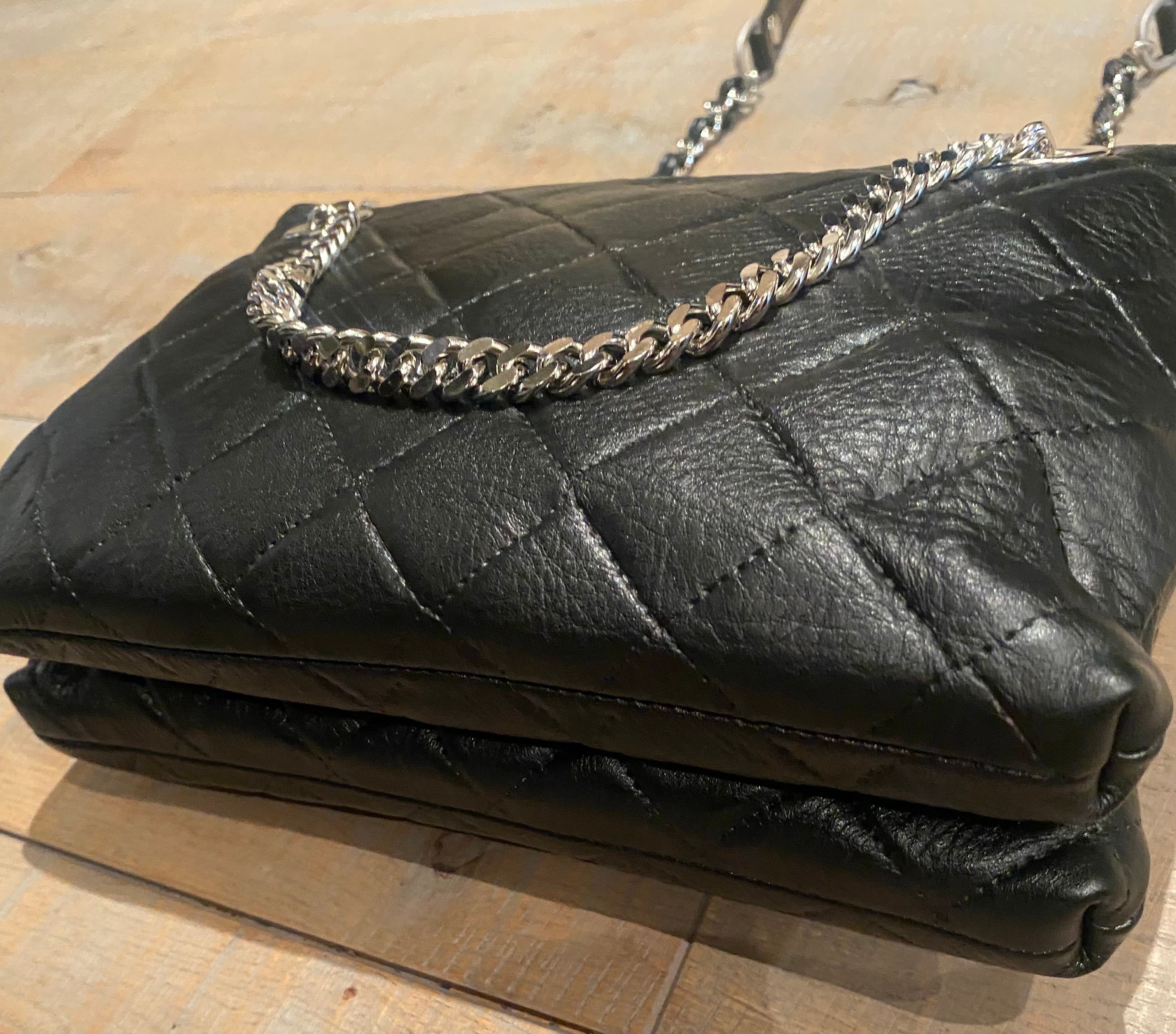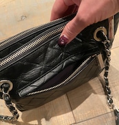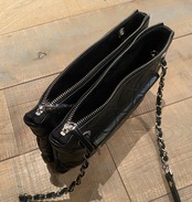 デザインはlayer chain shoulder。細部にこだわりの詰まったデザインになります。ファスナーありのメイン収納2箇所。その片側には内側にポケット1箇所。メイン収納部分の間にも収納箇所有り。外側にもファスナー有りポケット1箇所有り。ショルダーは長さ調節可能。