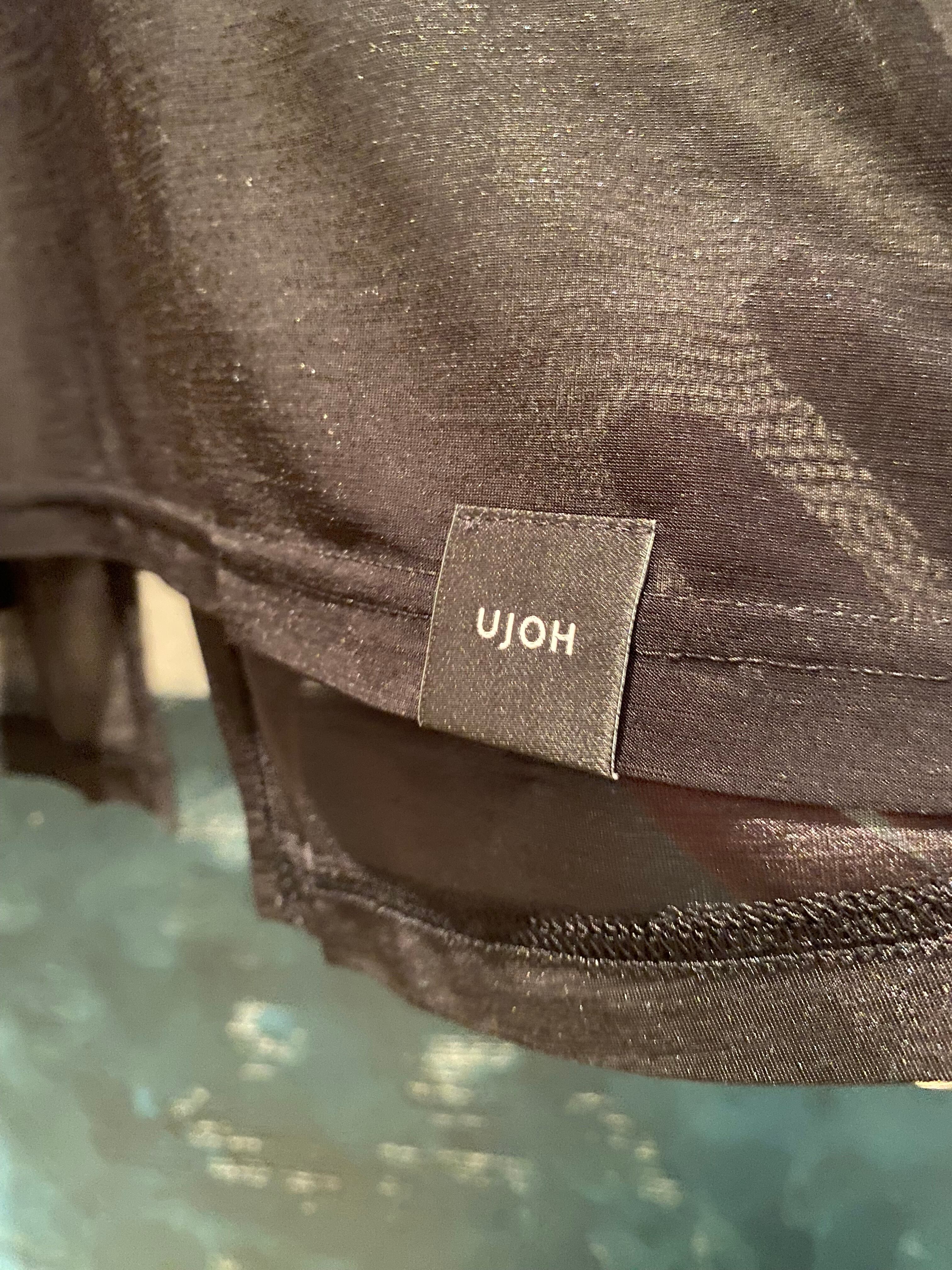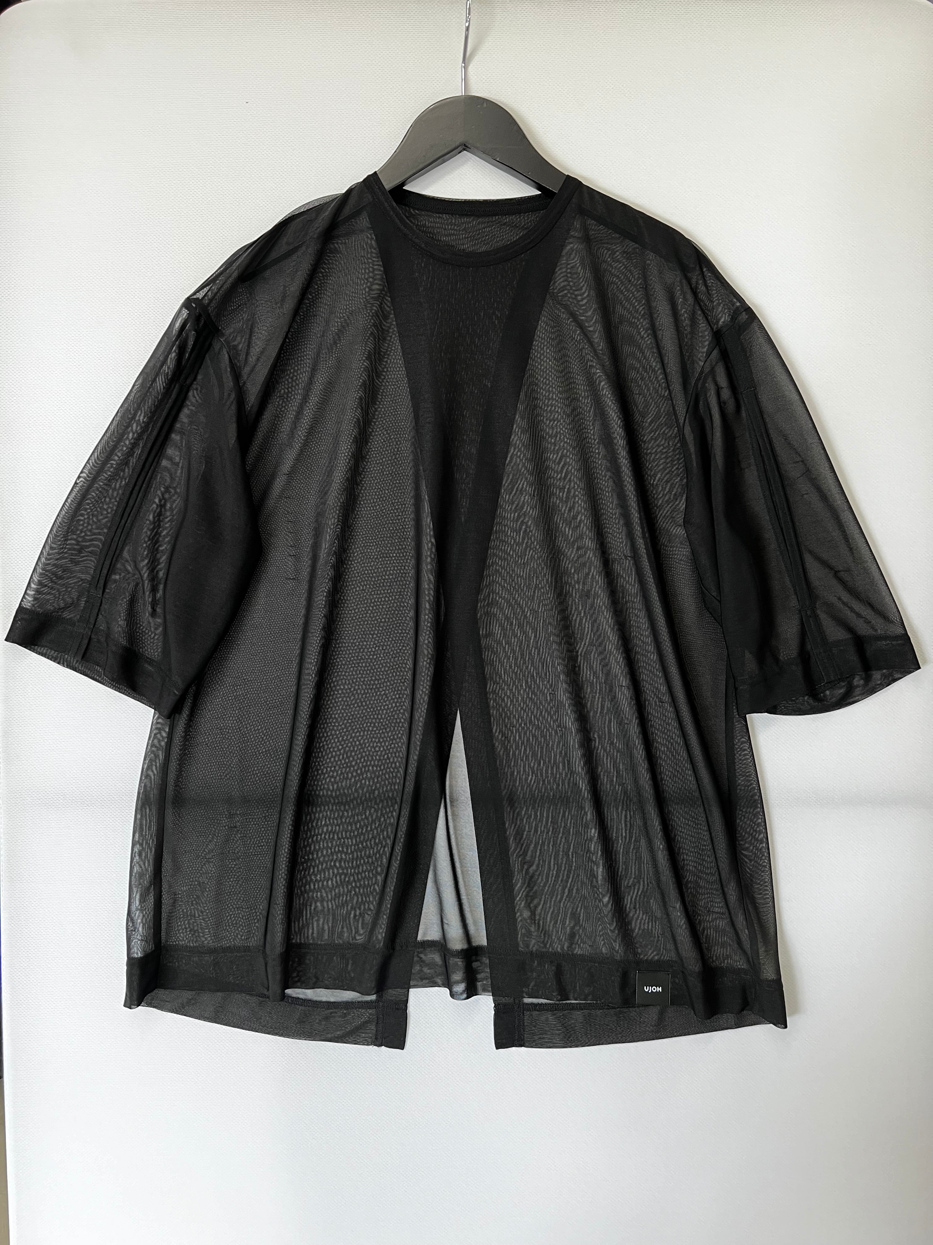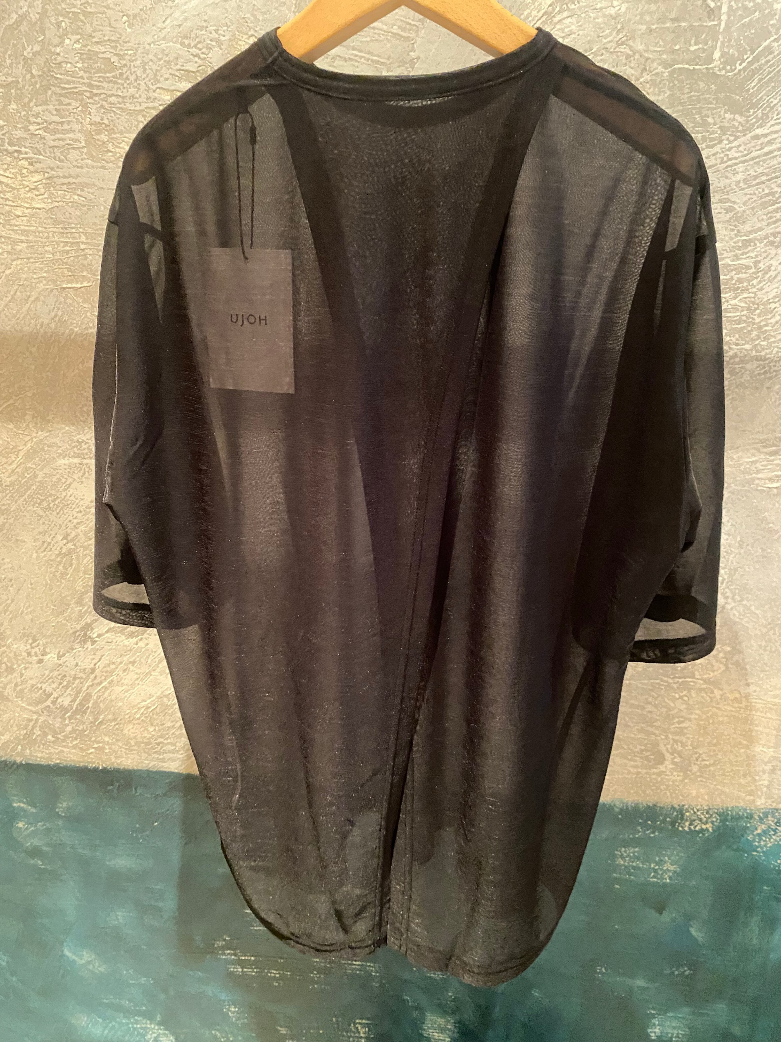 【UJOH】Sheer Back Cutting Off Half Sleeve Tee
