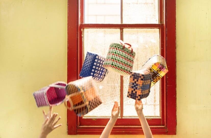 ミャンマーの遠隔地の村々で一つ一つ手織りされたパリバツケット。新しいものや再利用されたパレットストラップを作って作られており、防水性があり耐久性も高く長く使えるようにデザインされています。バスケットの販売によって職人たち、村の家族、そしてミャンマーのコミュニティへの支援を継続することができます。公正で安全かつ快適な労働環境を確保し、何世代にもわたって受け継がれてきたビルマの伝統的な織りの技術によるものです。