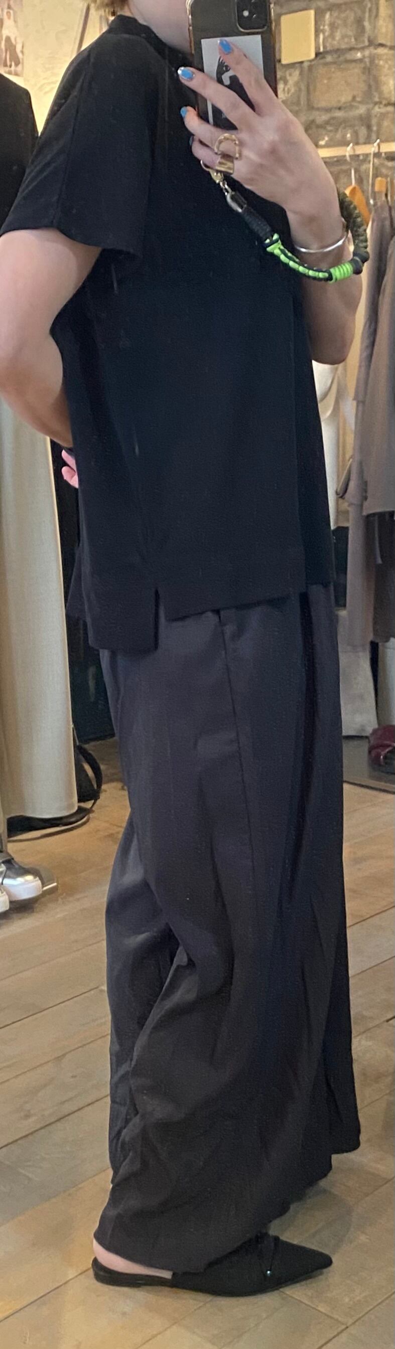 毎年のように延長される暑く長い夏を快適に過ごして頂くためにデザインされた「猛暑キャンセリングパンツ」肌から距離を置いたフレアスカートのような裾巾が涼しさを感じさせます。素材はアメリカのココナ社が開発した天然活性粒子由来の温度調整と湿度調整を持つ機能性素材【37.5™️テクノロジー】を使用。汗が液体になる前の水蒸気の状態でじょうはつ蒸発させる効果があり、いつでも快適に過ごすことができます。また、37.5™️テクノロジーは、トリートメント加工ではなく、糸に機能が埋め込まれているため、洗濯を重ねても機能が劣化することがありません。この生地は、37.5™️テクノロジーの持つ機能に加え、ストレッチ性を付与することで、着心地の良さにも配慮されています。真夏のオススメパンツになります♪