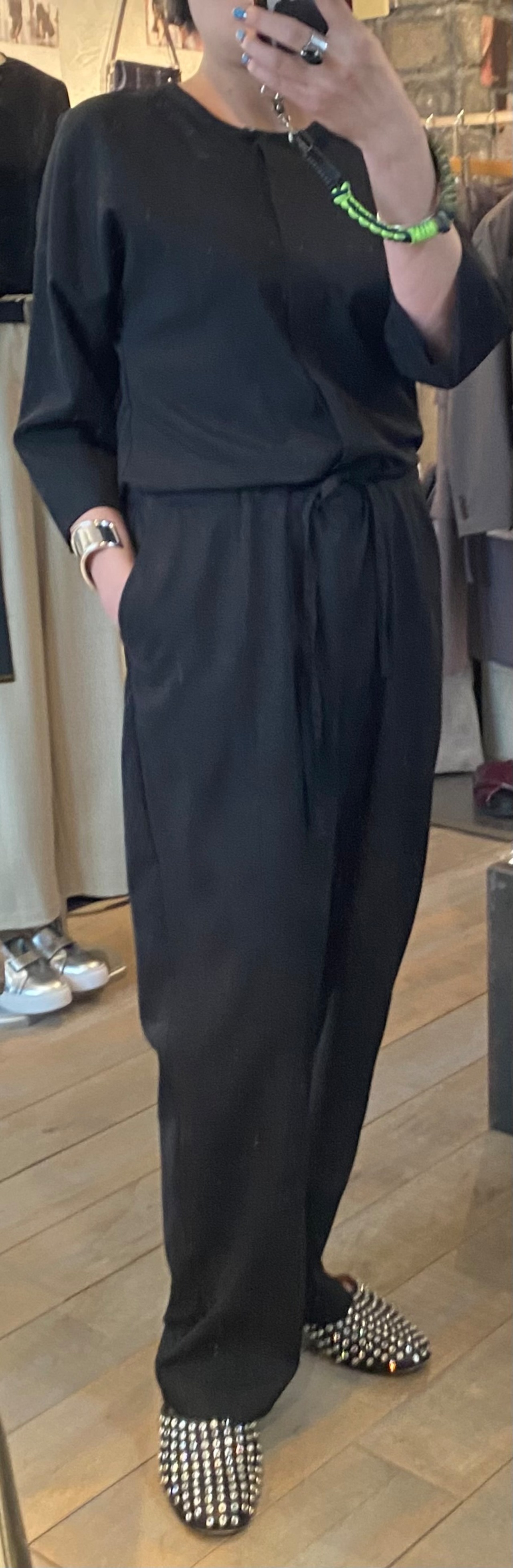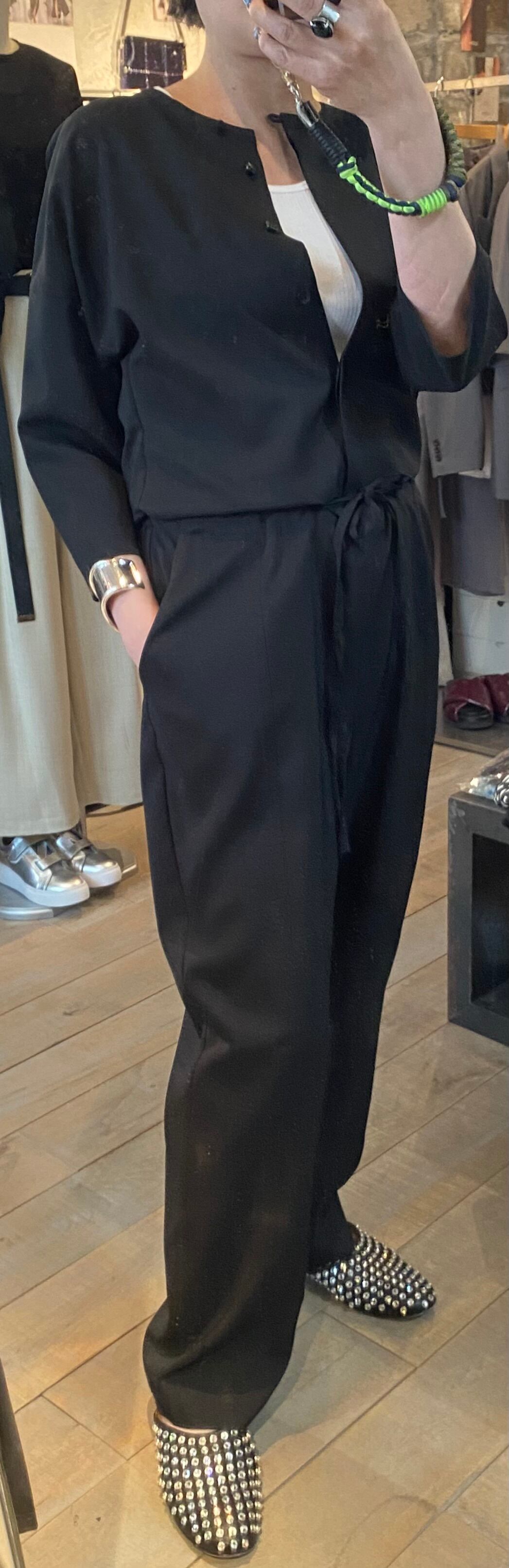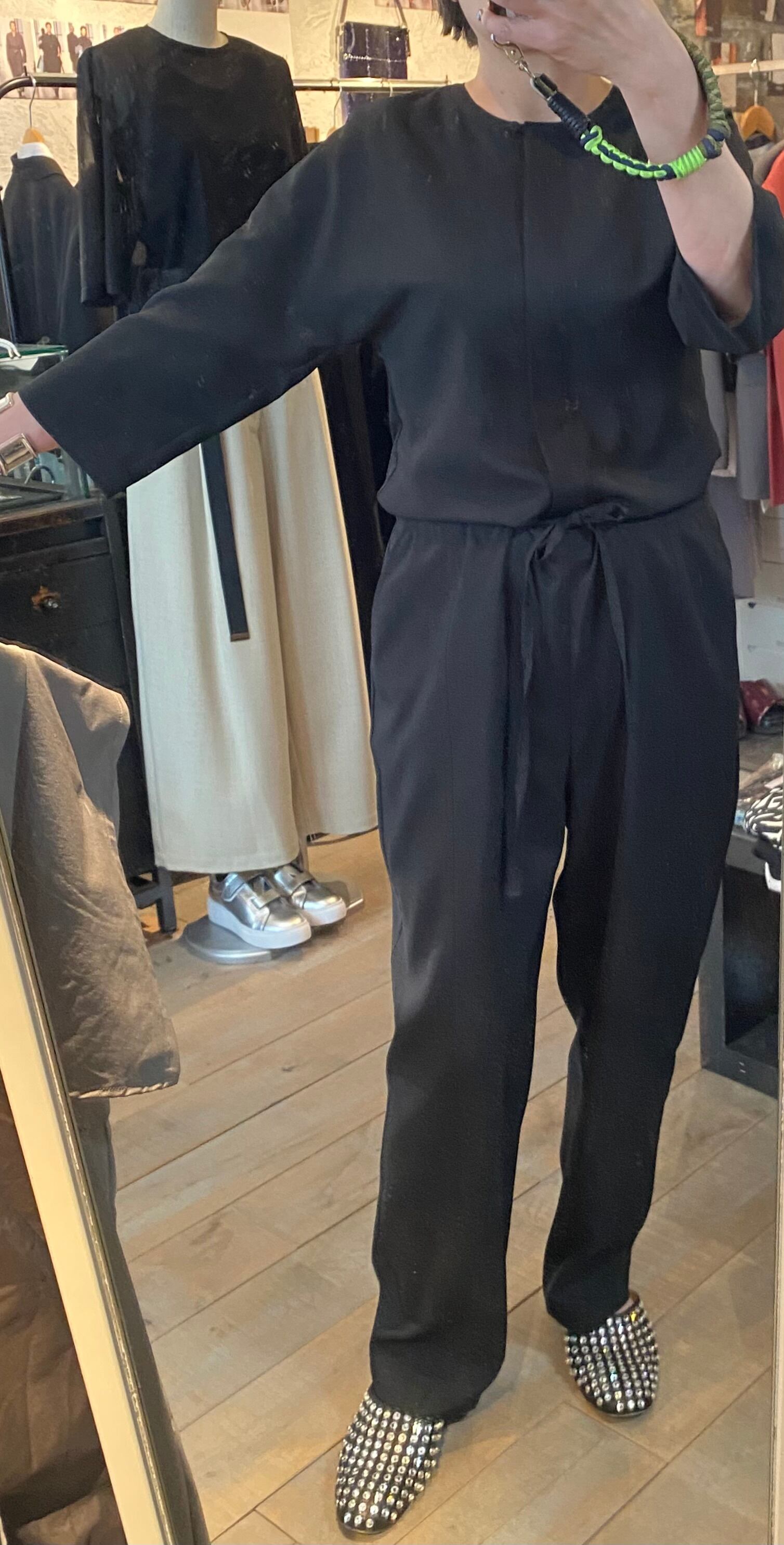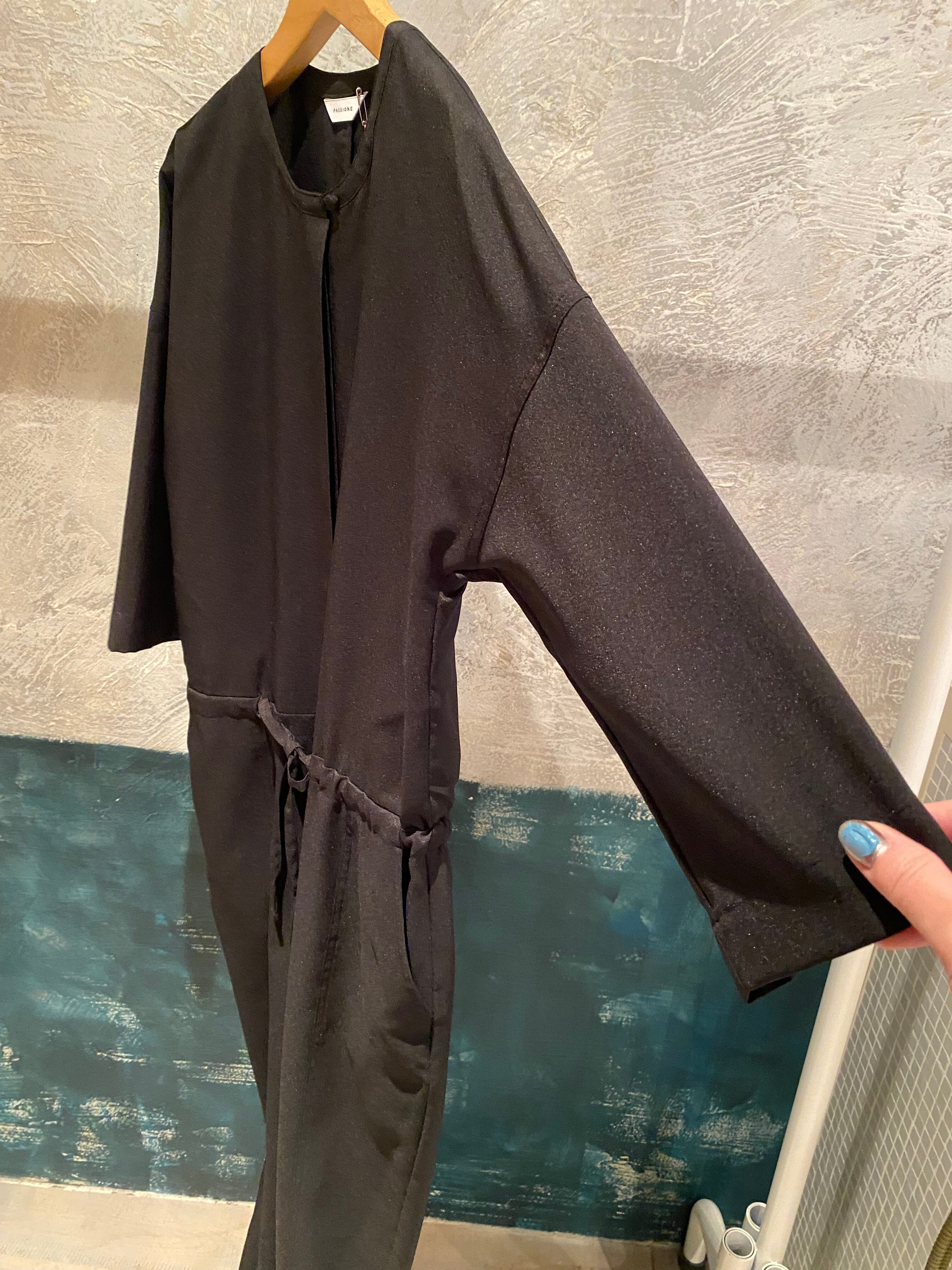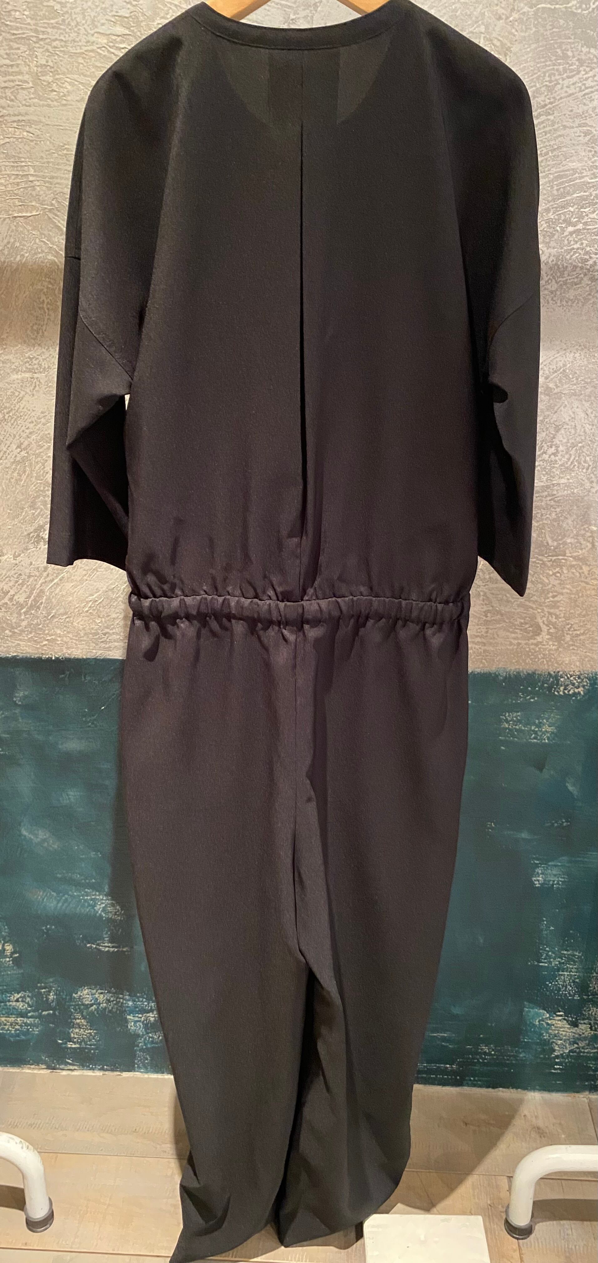 1枚でスタイリングが完結するオールインワン。クルーネックで7部丈のお袖で上品な印象に。フロントのボタンは閉めても、開けてインナーを覗かせるのも◎ウエストは紐で調節可能。軽めの素材でオチ感もあるキレイめに着れるオールインワンになります。