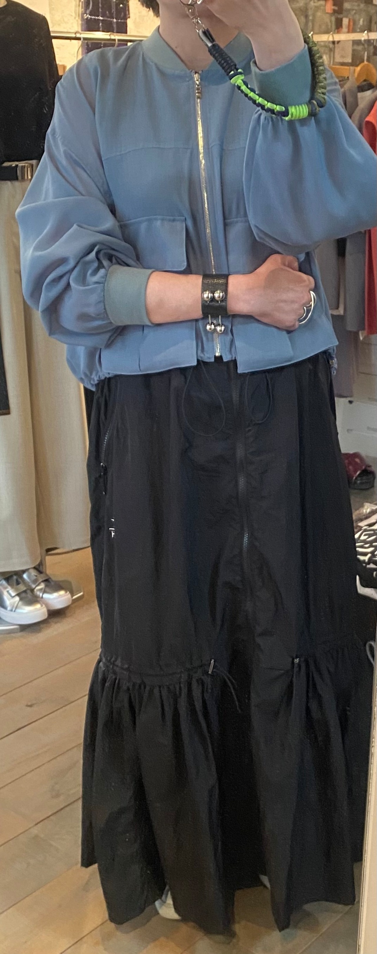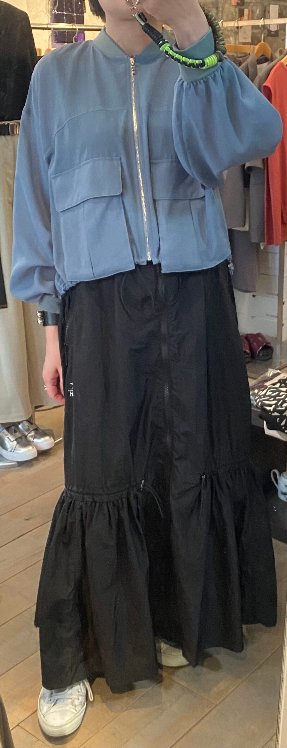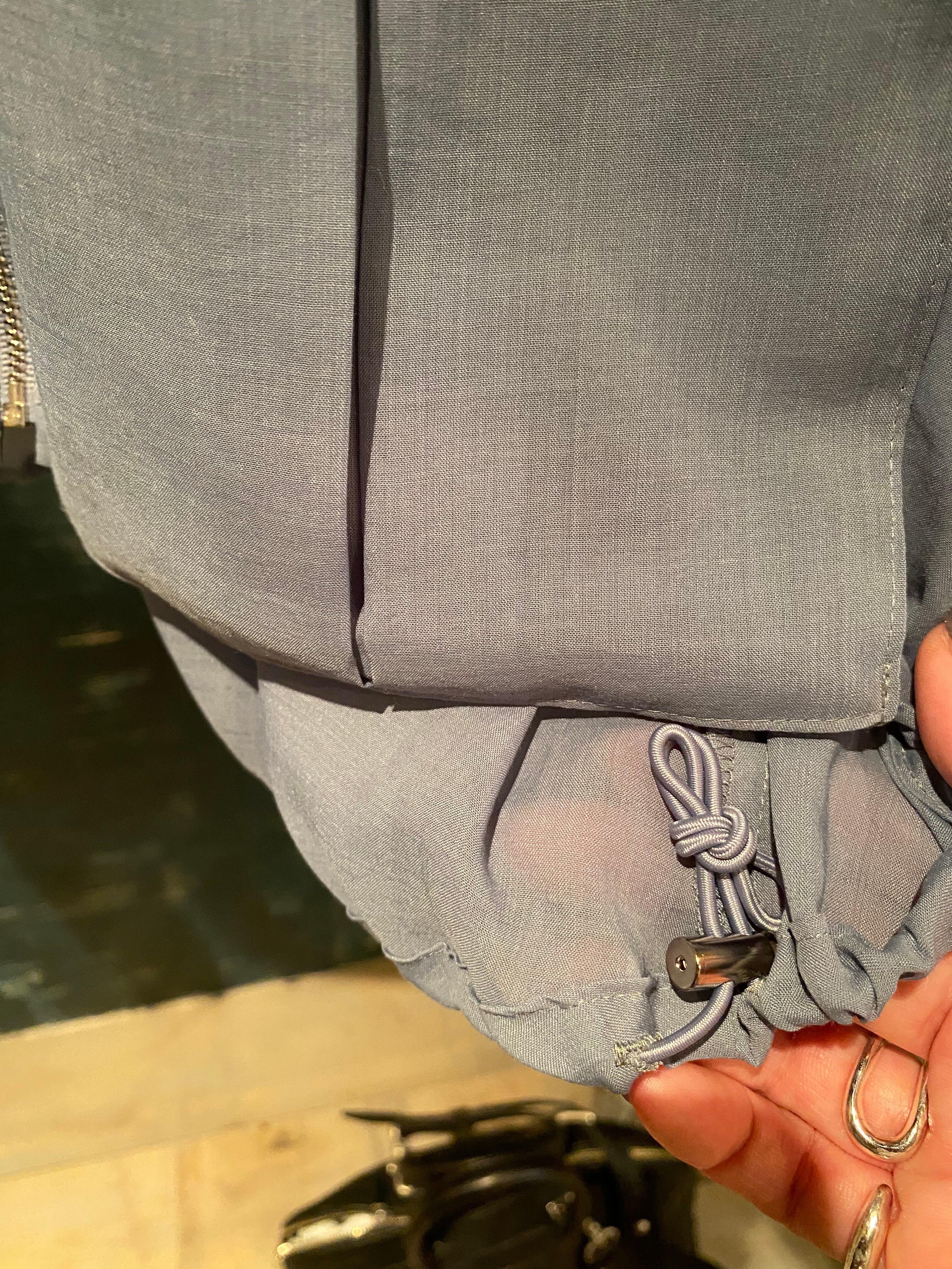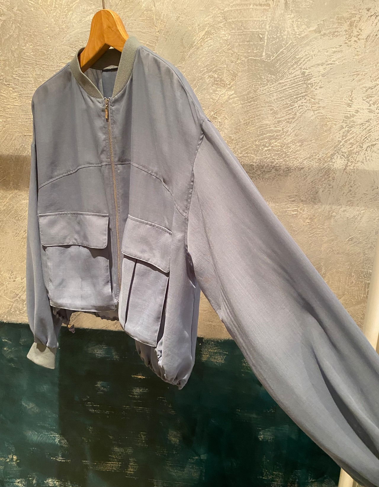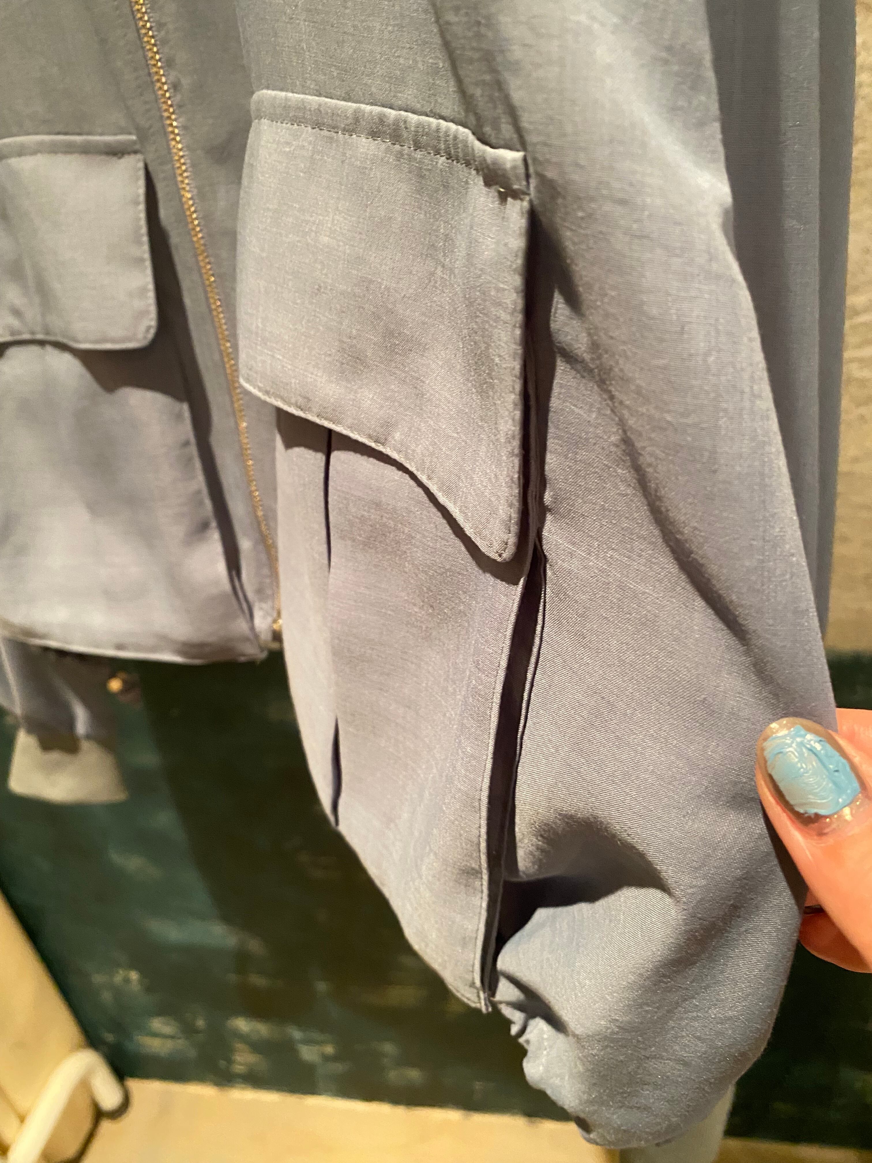 上品なカラーが素敵なジップブルゾン。立体的なポケットのデザインが特徴的。裾のドローコードでシルエットの変化を楽しんで頂けます。さりげないシアー素材もポイントに。夏場も羽織りやすく、ロングシーズン着回せます。