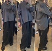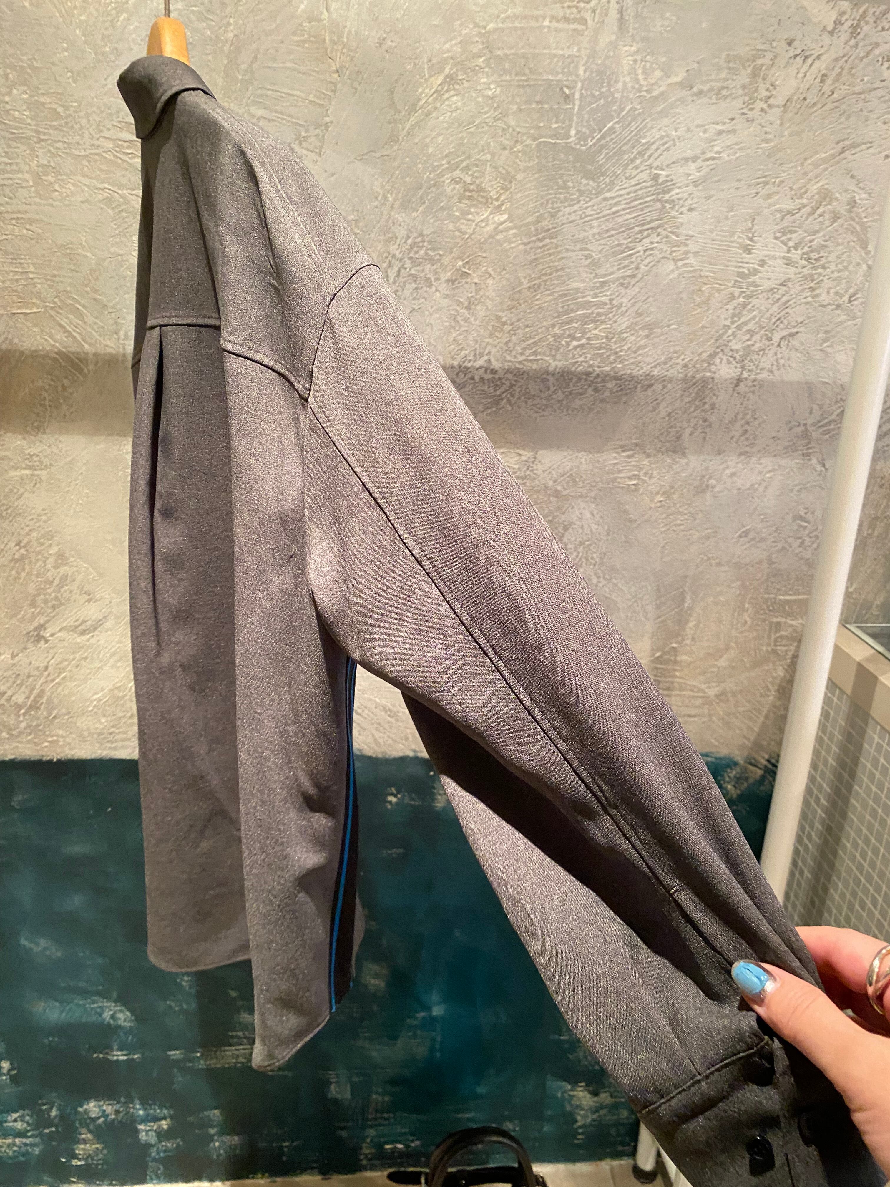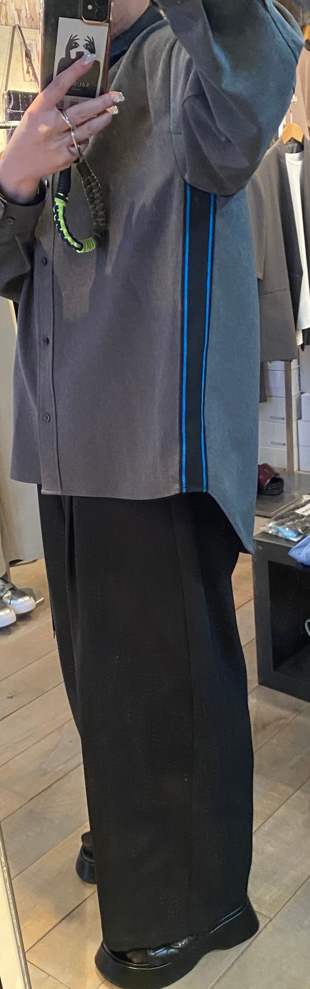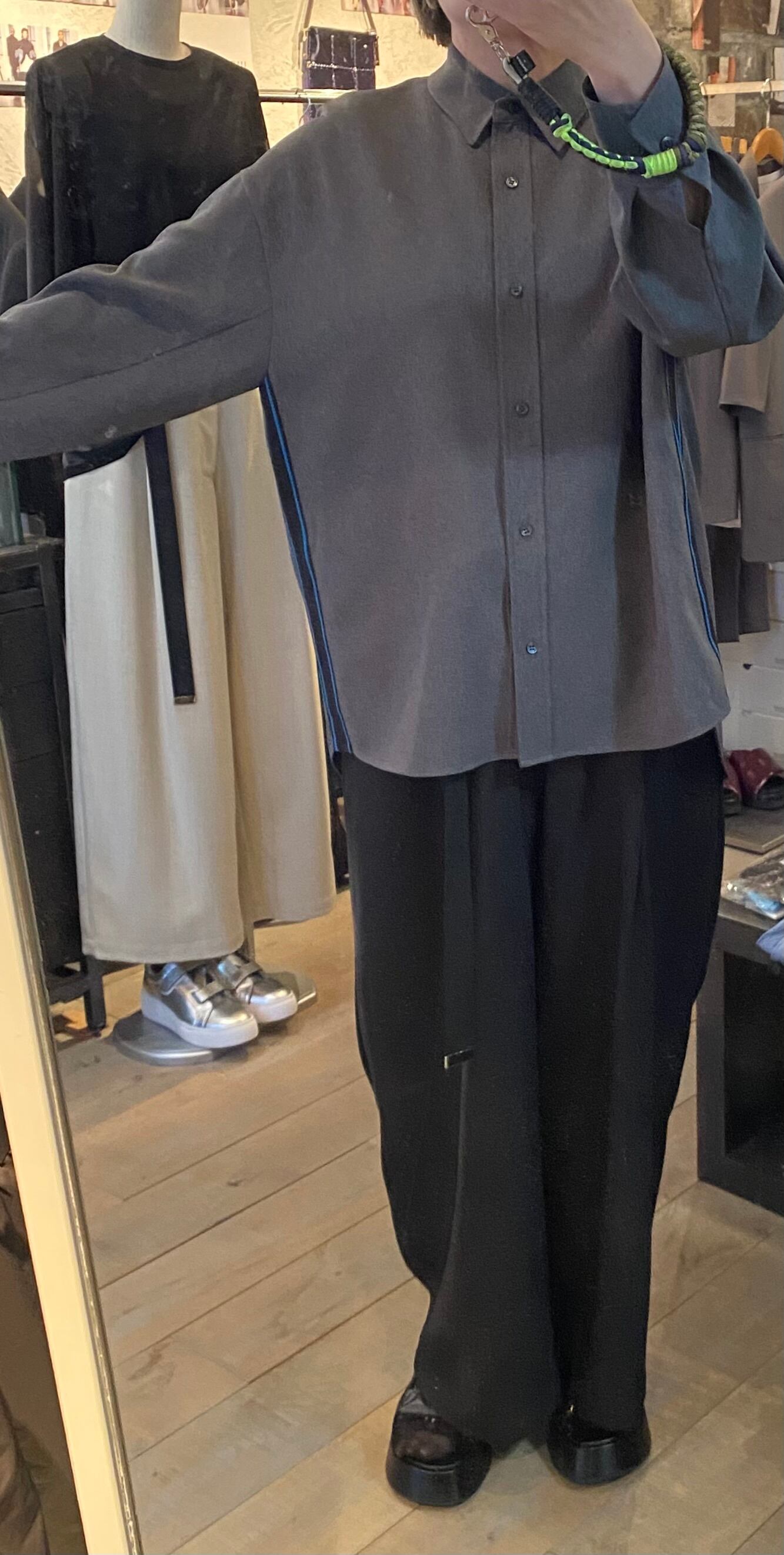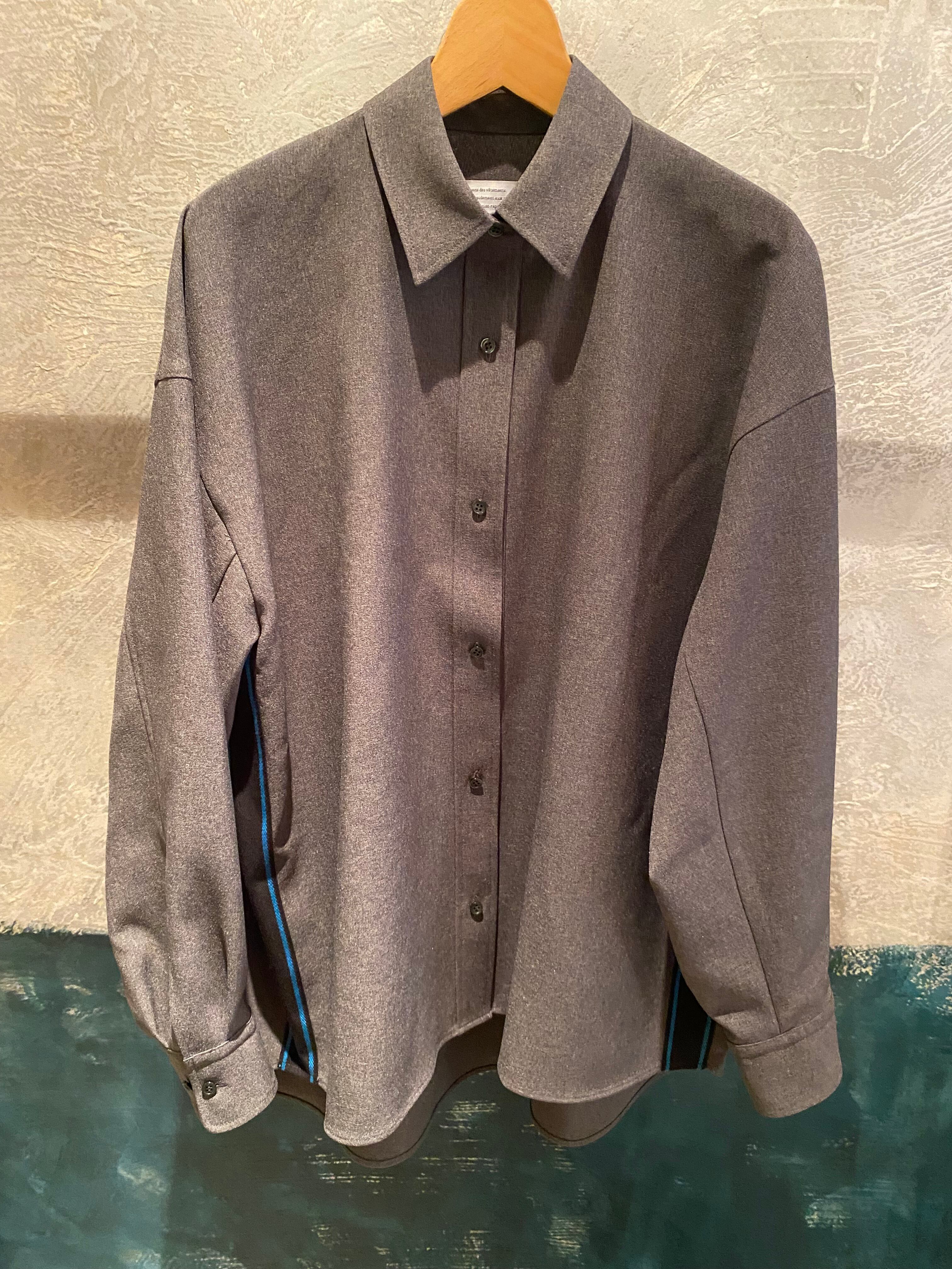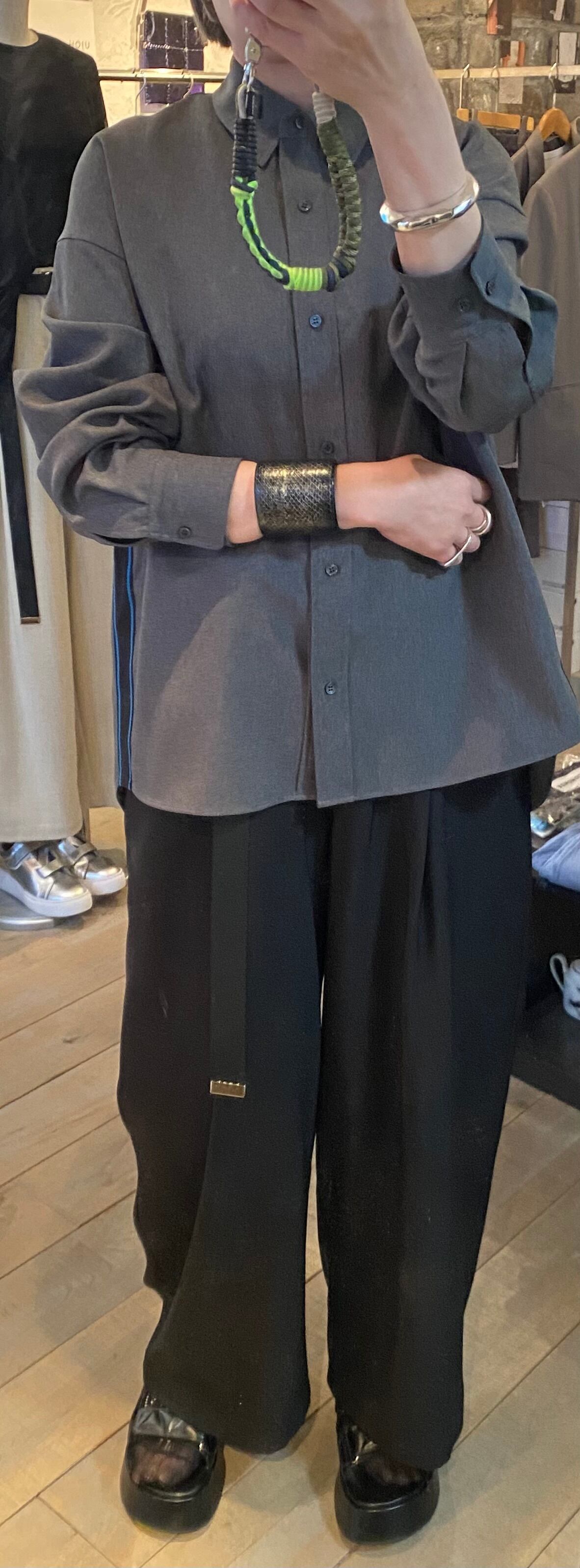 程よいゆとりを持たせたオチ感のあるブラウス。サイドのラインがポイントに。ブラウスとしても、開けてシャツジャケットとしても活用できます。ポリエステル素材でイージーケアでロングシーズン着回せるのも嬉しいところ。