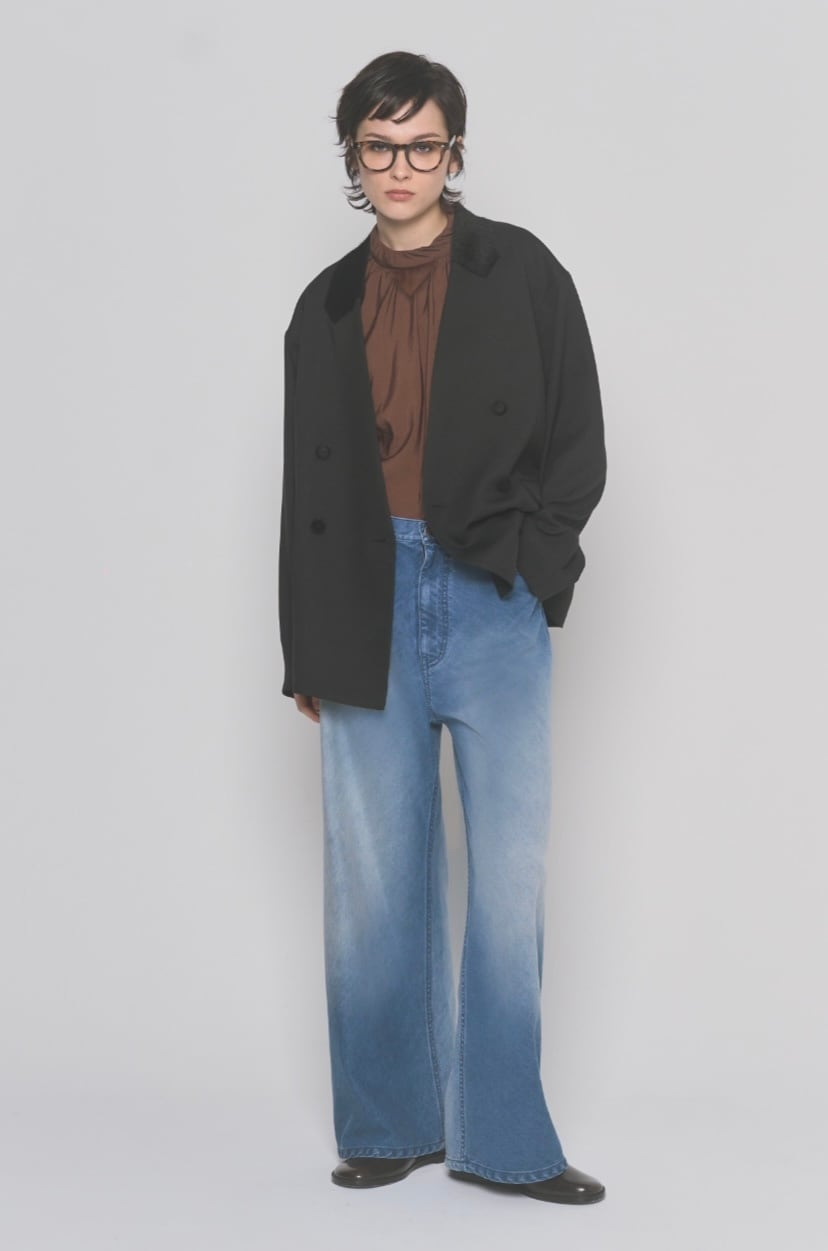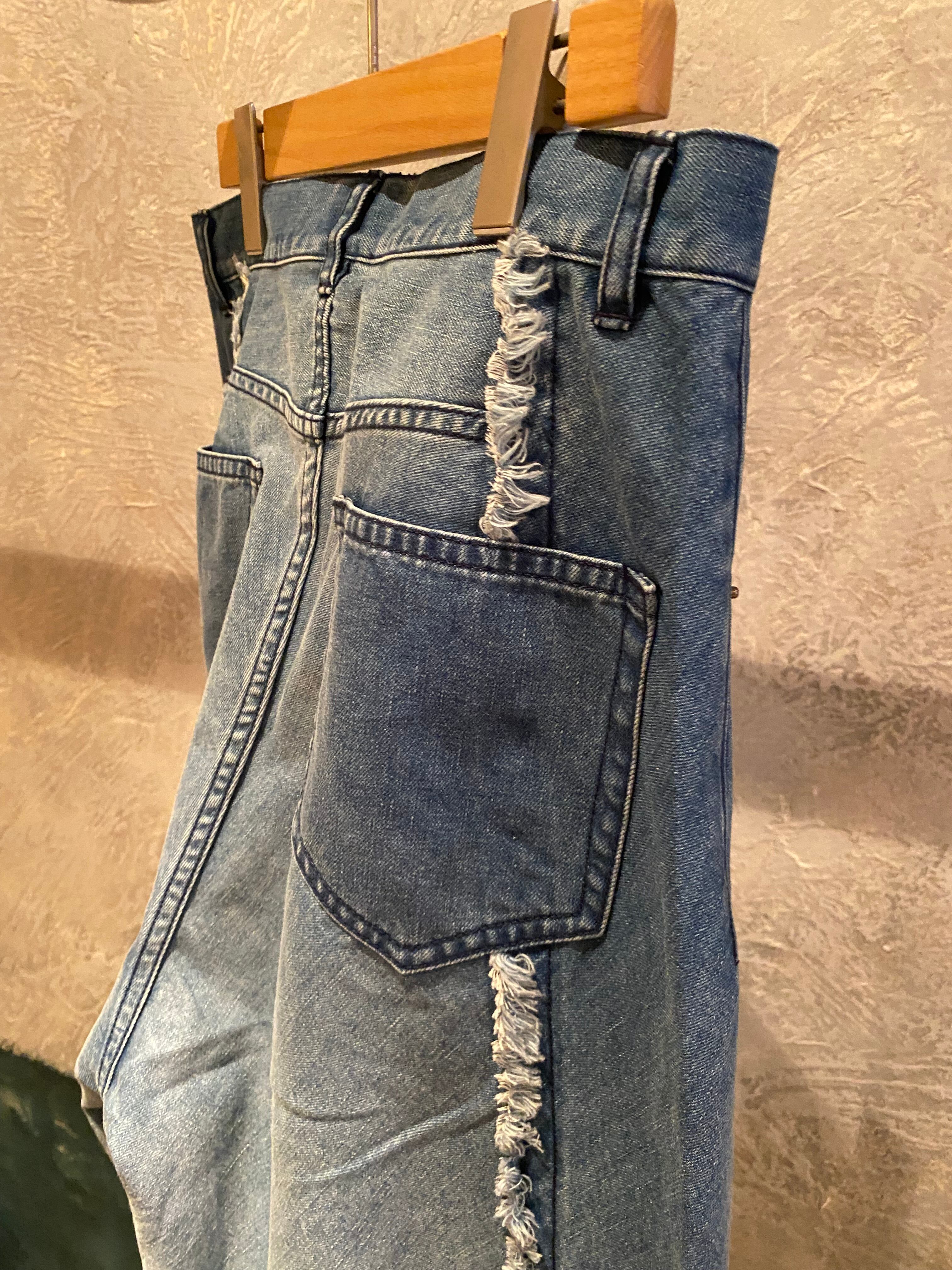 スタンダードアイテムである「5ポケット」をクチュールテクニックの1つである「バイアスカット」を施して、通常の5ポケットとは違うドレープ感のあるシルエットを体感して頂けるアイテムです。“DENIM”はパーツ毎にビンテージ加工を調整したものを縫い合わせることで「色の落ち加減の対比」を作り上げました。肌触りも良く履き心地抜群でオールシーズン着回せます♪