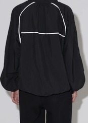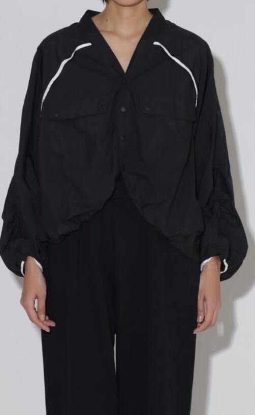 カーディガンジャケットは、ゆとりのあるシルエットでリラックスして着て頂けるトップスになっています。前立ては裾にぐるりと繋がっておりラウンドした裾のラインもポイントです。お袖や裾にコードゴムが内蔵させており、シルエットの変化も楽しめます♪ラグランスリーブ切り替え、後ヨーク切替に施されたパイピングがアクセントになっています。
