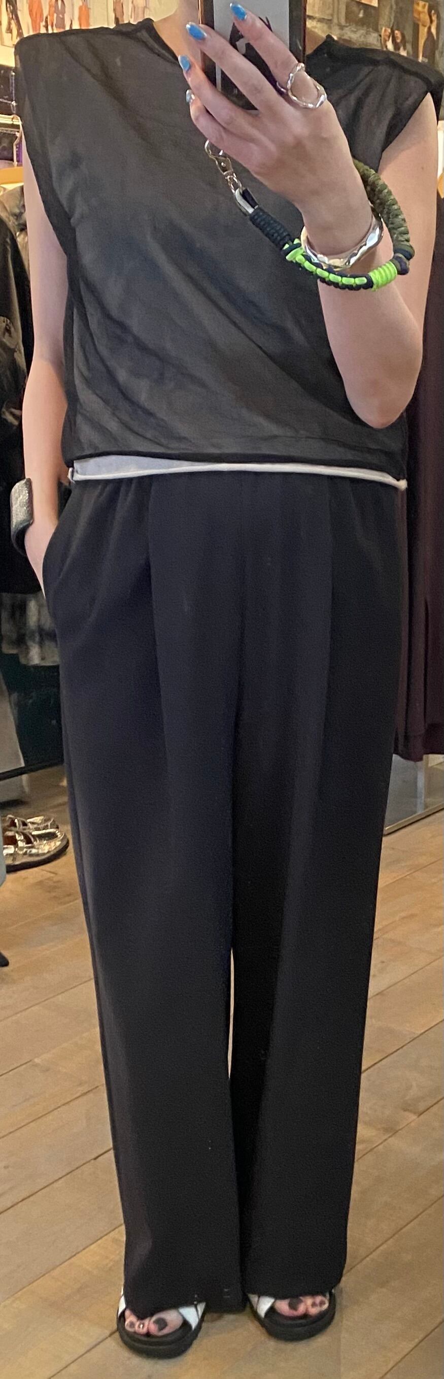 タックのデザインの入ったストレートパンツは、体型など選ばず取り入れられるラクチンパンツです♪シルエットもストレートで合わせるアイテムも選びません。オチ感もありスッキリ見えするパンツです。