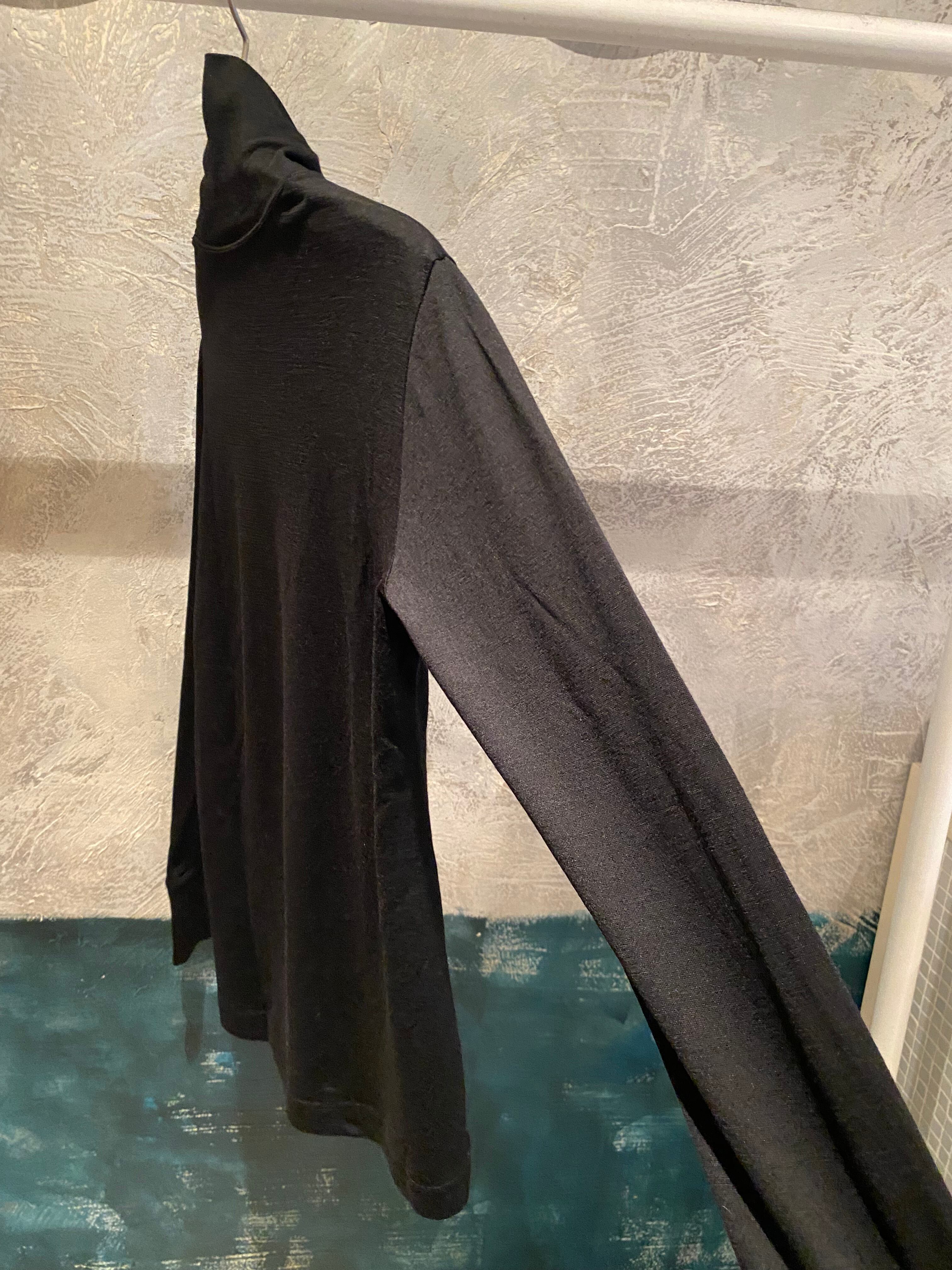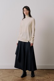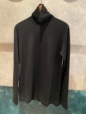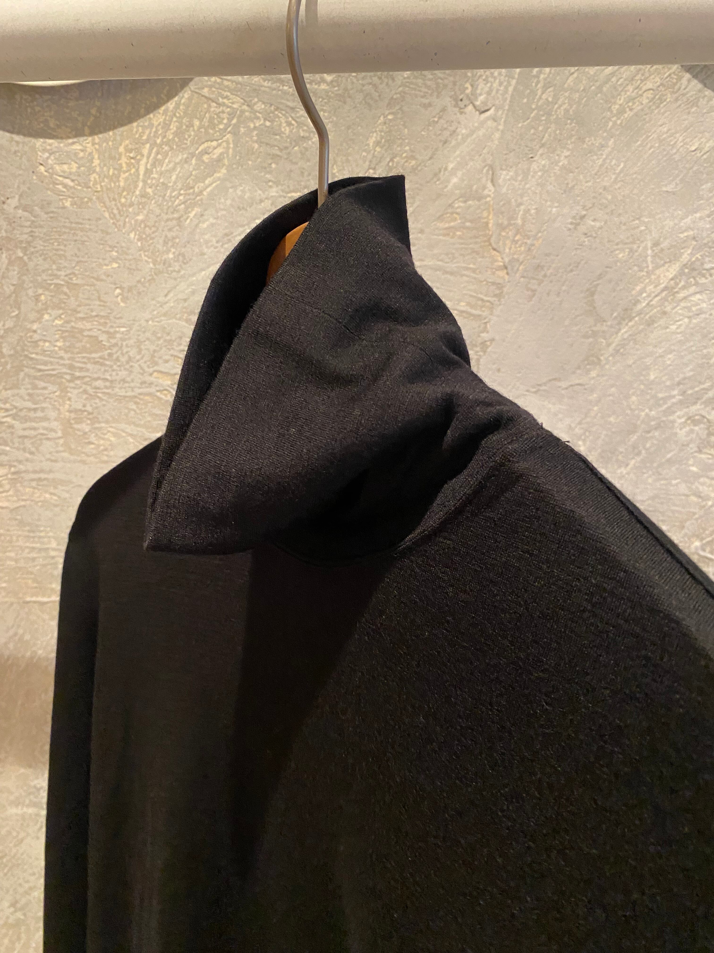 梳毛ウールで編み立てた、洗濯可能なウール天竺素材です。タンブラー加工を施すことによりより一層柔らかいタッチになっています。膨らみのある風合いと、軽くエアリーな着心地が特徴です。綺麗にフィットするように仕立てたハイネックTシャツです。1枚でもレイヤードのインナーとしても活躍するデザインです。