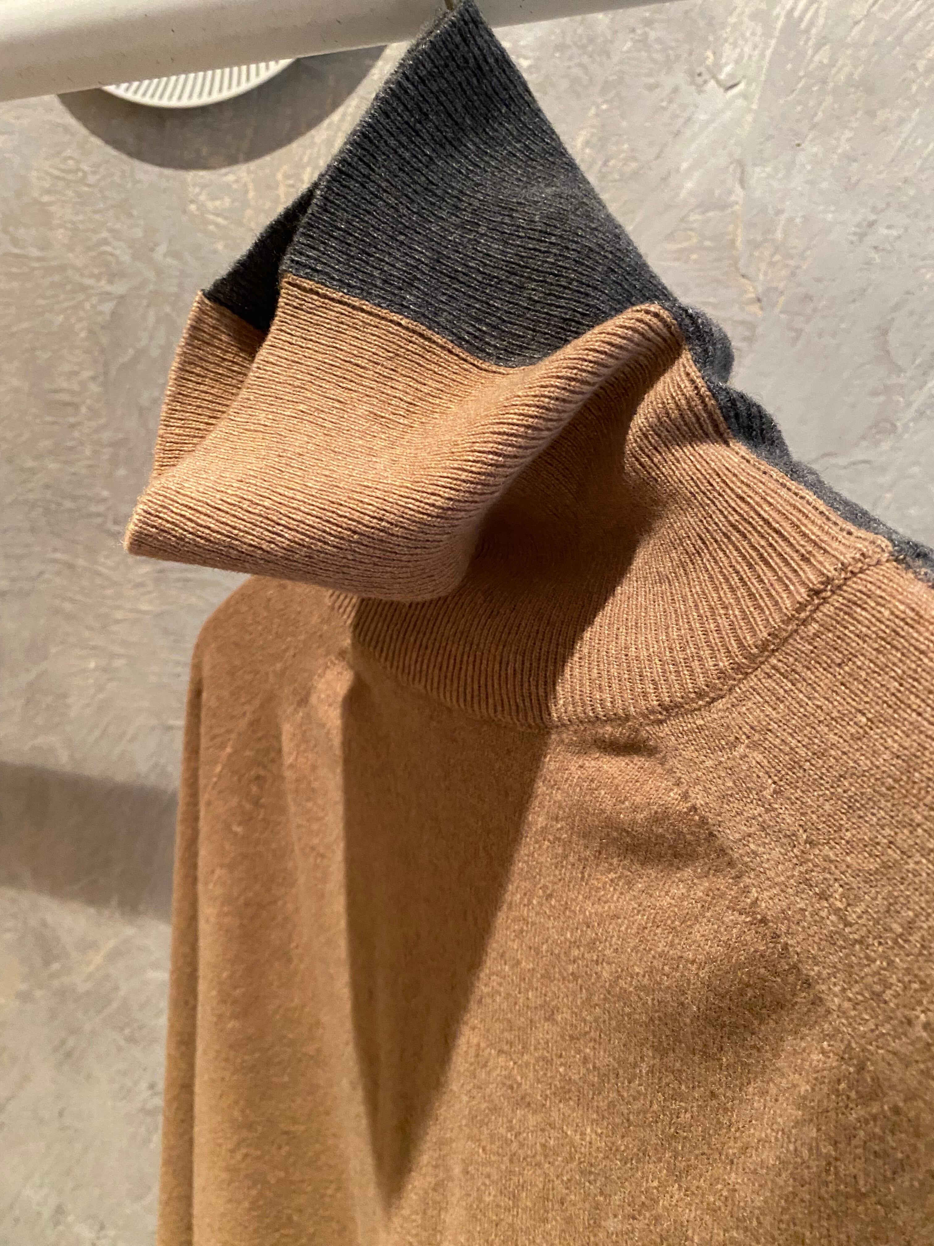 【SEMICOUTURE】wool cashmere bi-color turtleneck pullover