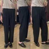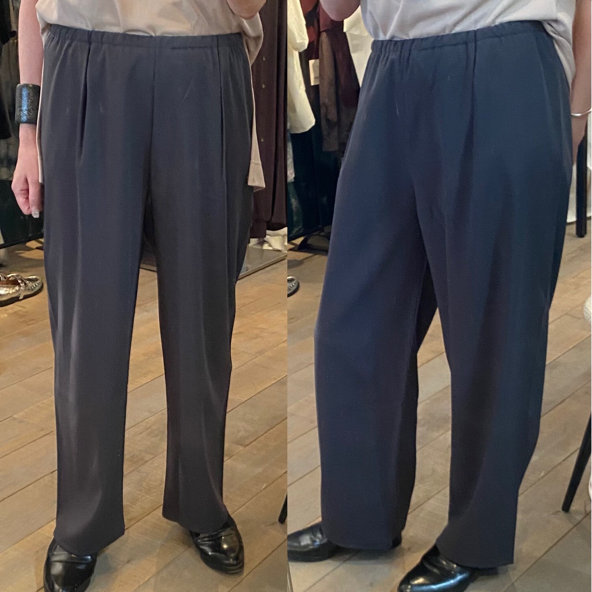 シルキーな質感にコンパクトな密度感に仕上げたダブルクロスのイージーパンツ。2シーズンこちらのブランドで人気のイージーパンツがアップデートされ、生地のハリ感を活かす為、前パンツにタックを施しました。シワになりにくく、ご家庭での洗濯が可能な機能素材。オールシーズン着回せる履き心地抜群のスッキリ見えするパンツです♪