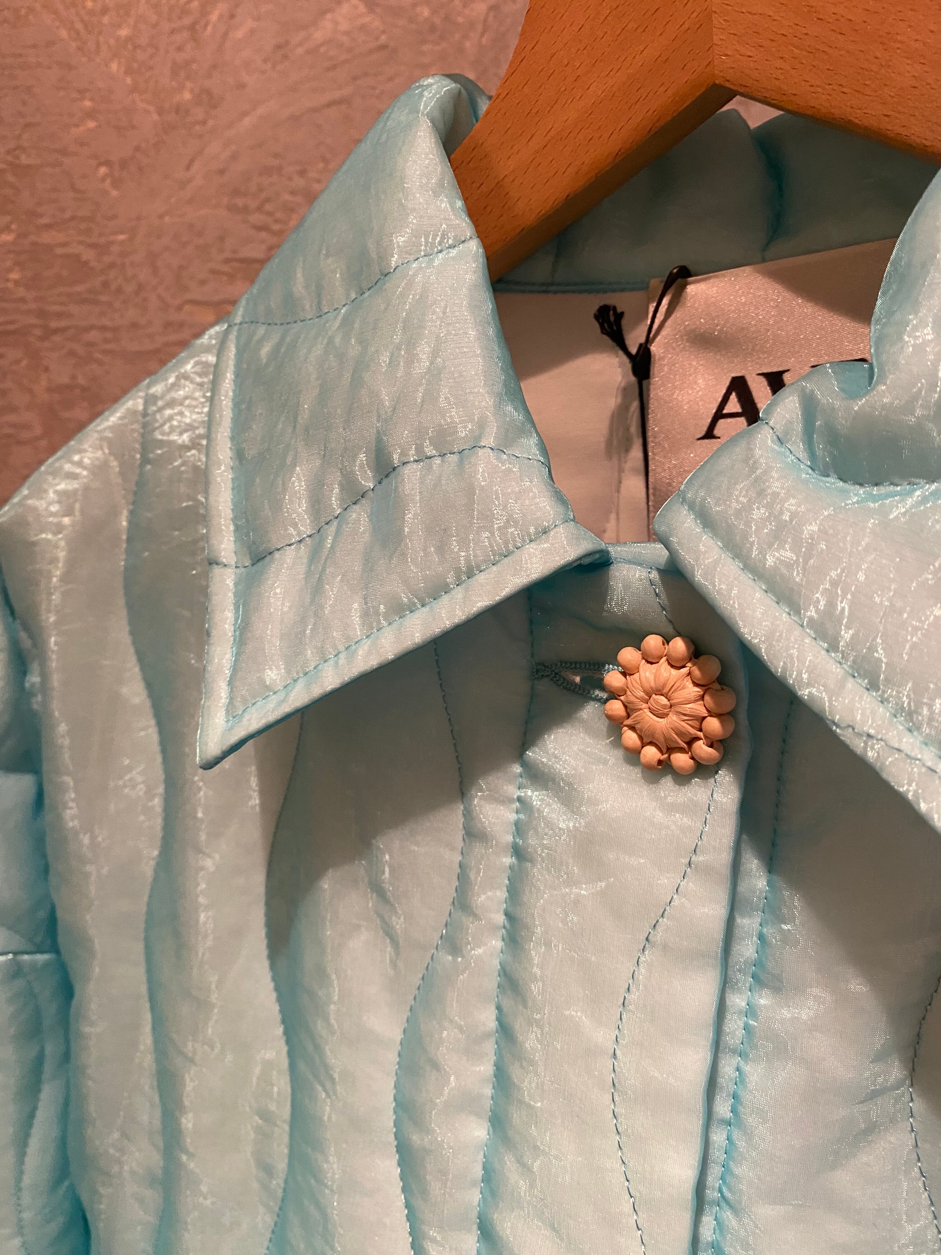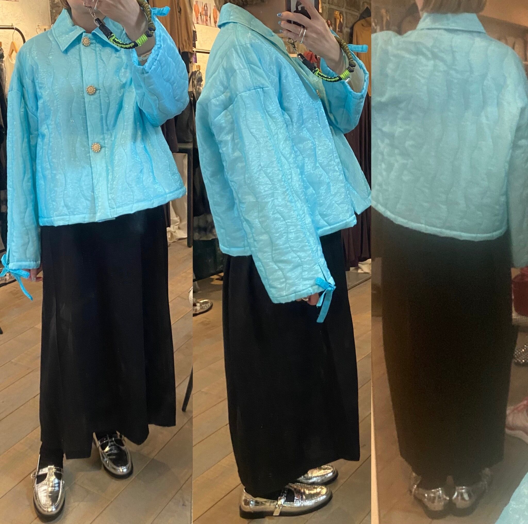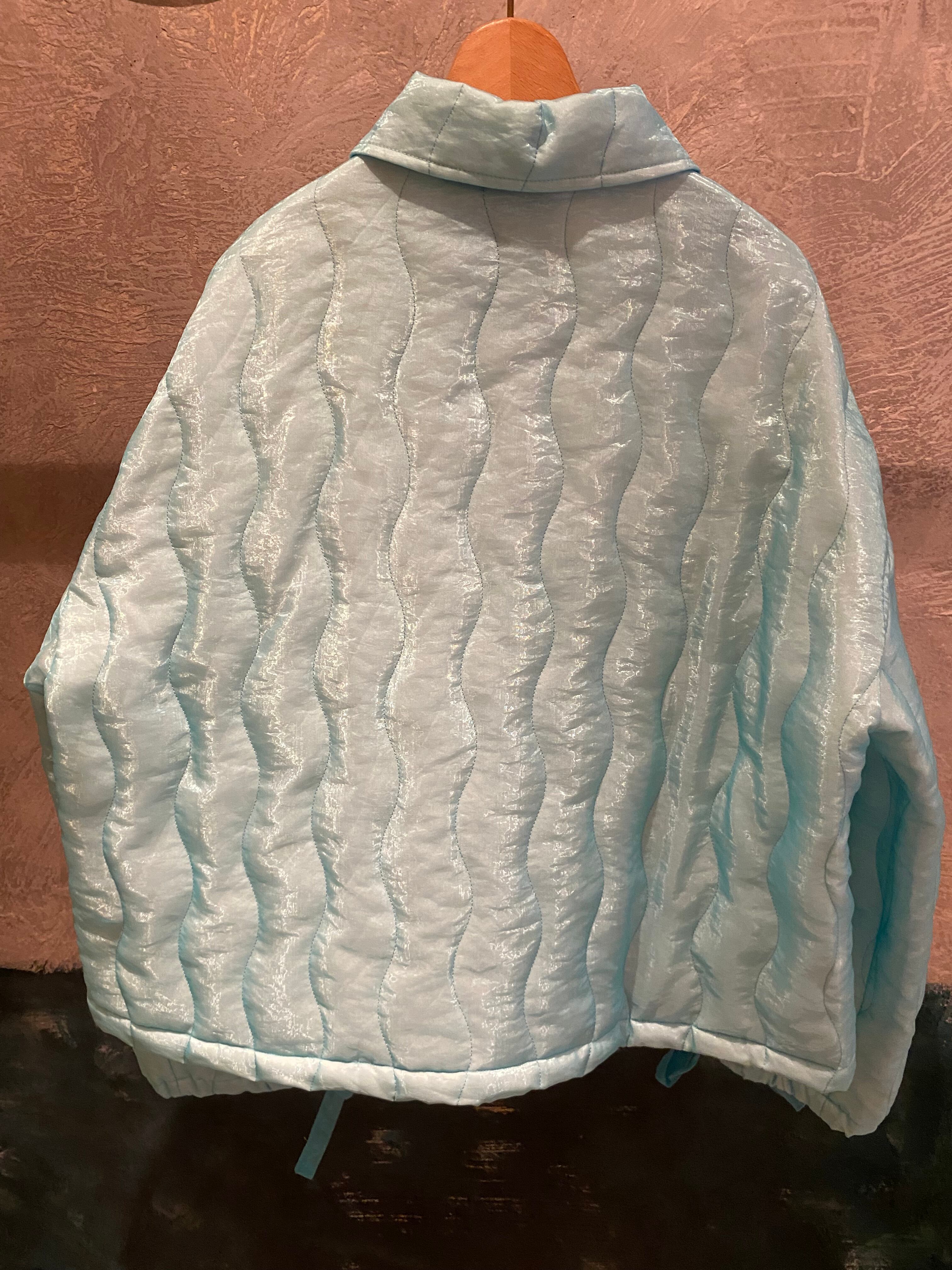 フロントのボタンやお袖口のリボンデザインがポイント。キルティングのデザインも特徴的で素敵です☆