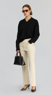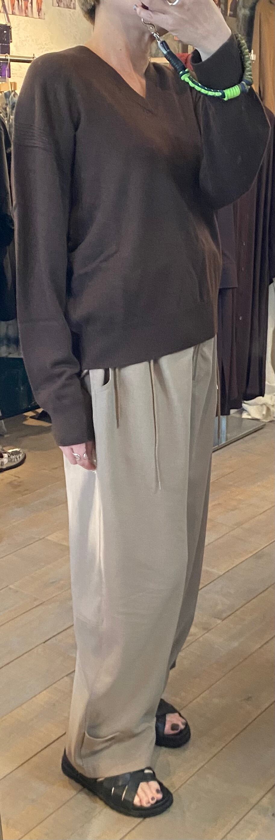 程よいオーバーシルエットのVネックプルオーバー。サラッと着るだけで雰囲気の出るシルエットになっています。ウールカシミヤで軽くて暖かく、抜群の肌触りです。程よい肉厚さも取り入れやすいアイテムです。スタイリングの主役でも、レイヤードスタイルにも飽きのこないアイテムです。