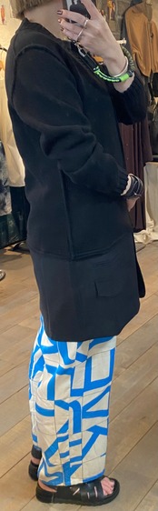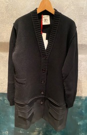ヒップがしっかり隠れる着丈で着回し力抜群。裾は布帛素材でポケットのデザインなども特徴的。ドッキングデザインで、カーディガンだけではなくジャケット見えするアイテム。シルエットはスッキリしているのでアウター下でもごわつかず秋冬の期間着回せます。モードさも兼ね備えたアイテムです☆