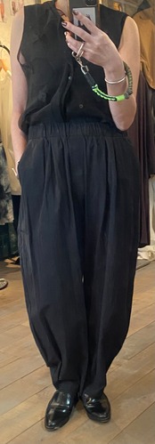 パターンにこだわったaurora easy pantsは、サラッとはくだけで雰囲気の出るアイテム。ウエスト総ゴムで楽チンで履き心地抜群。両サイドポケット有り。内側ウエストに紐も内蔵されているのでサイズ調節可能。こちらもシーズンレスで着用可能です。