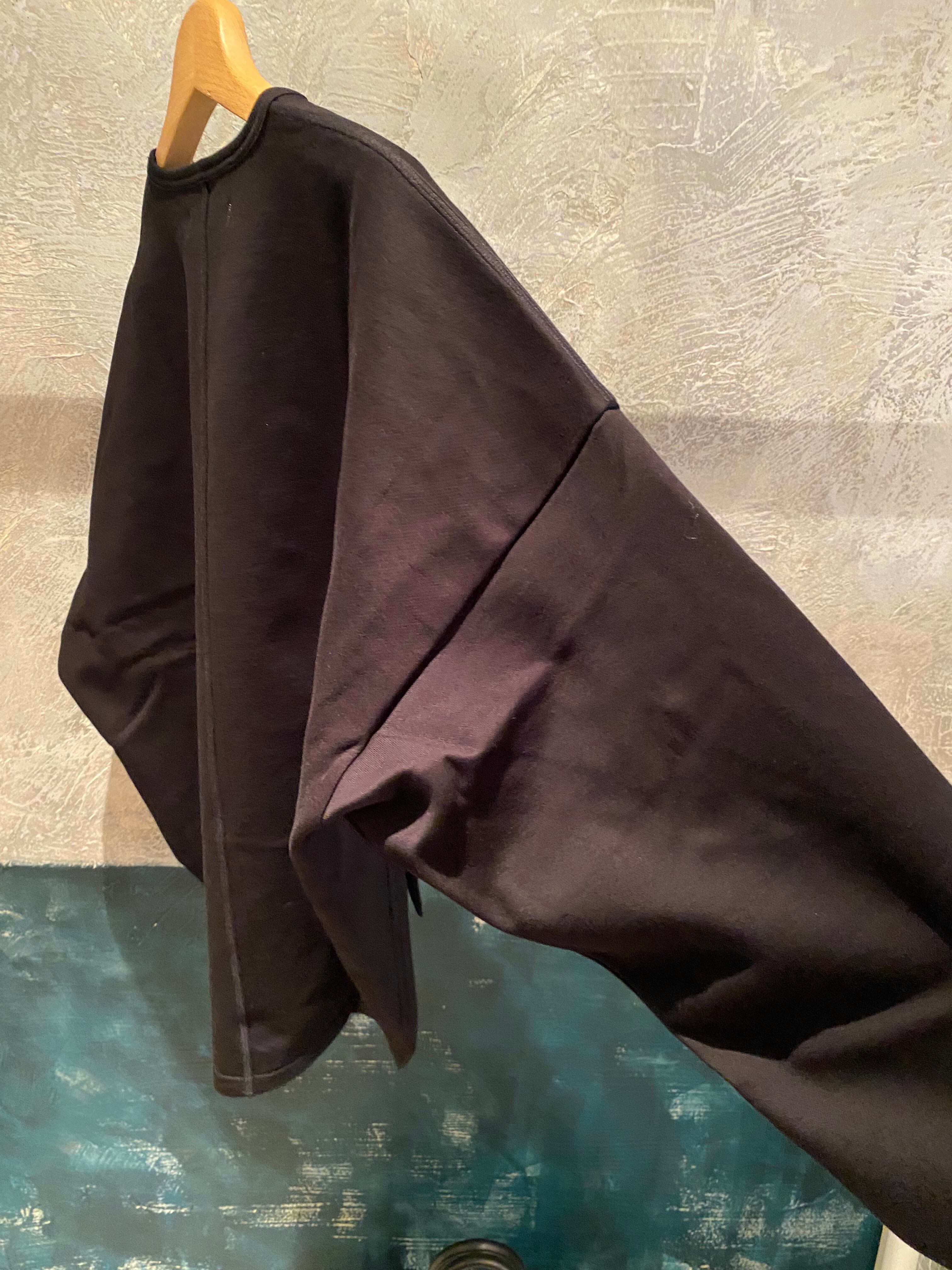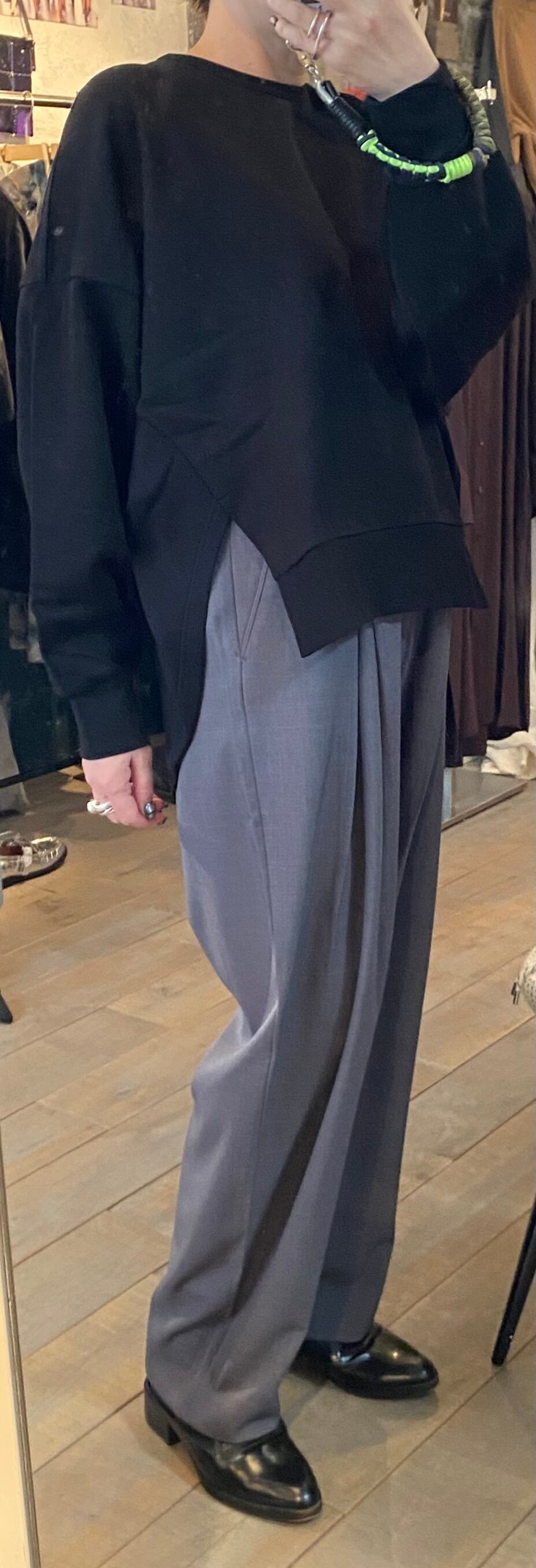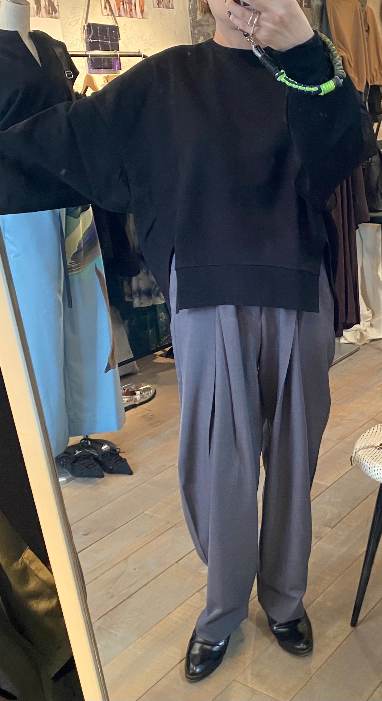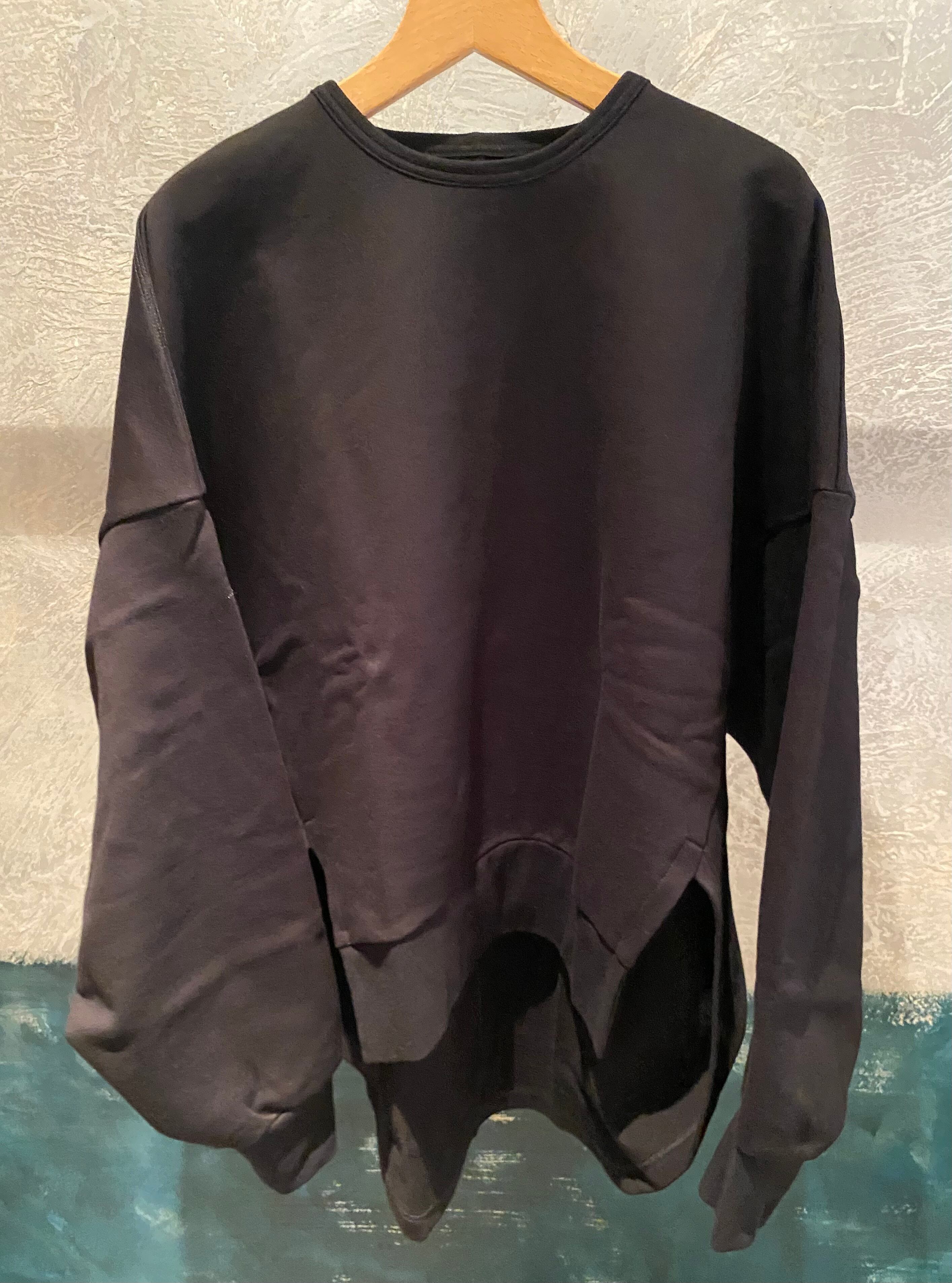 綿の柔らかな風合いは残しつつ、シルケット加工によりキレイに仕上げた裏毛素材です。表は毛羽が少なく光沢のある滑らかさが特徴です。ソフトなタッチとクリアな表情感のある生地です。前後段差をつけた着丈と、後ろ裾のラウンドにカッティングされたスワローテイルが特徴のプルオーバー。何とでも合わせさすいヘビロテアイテムです♪