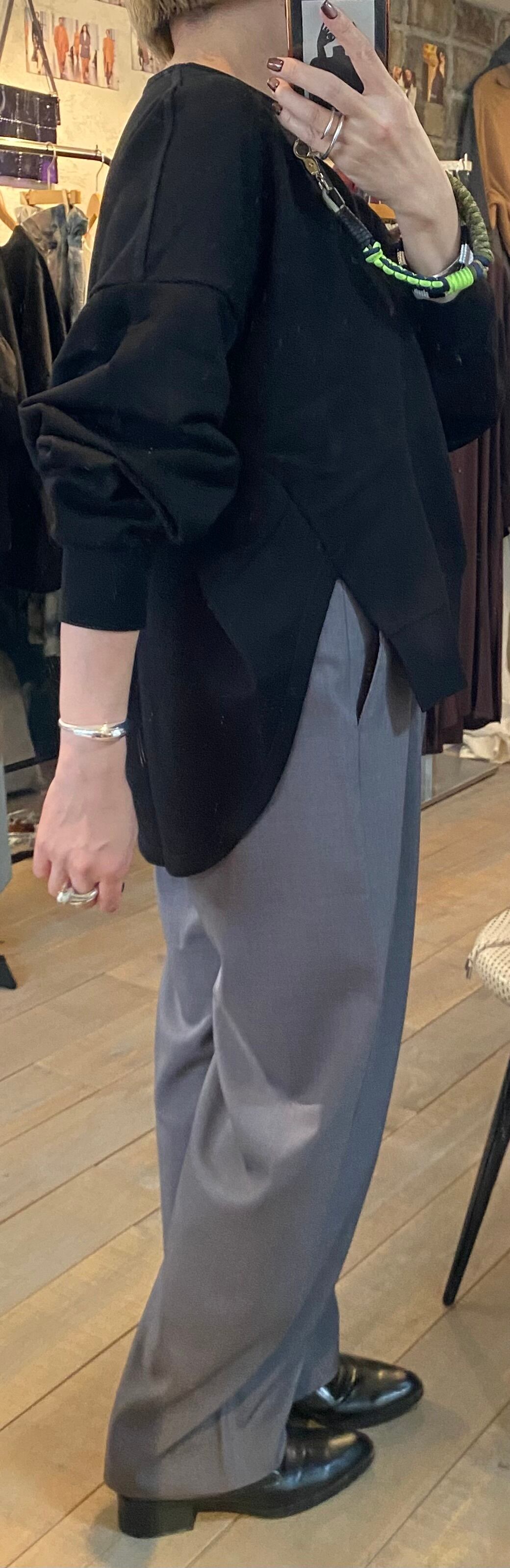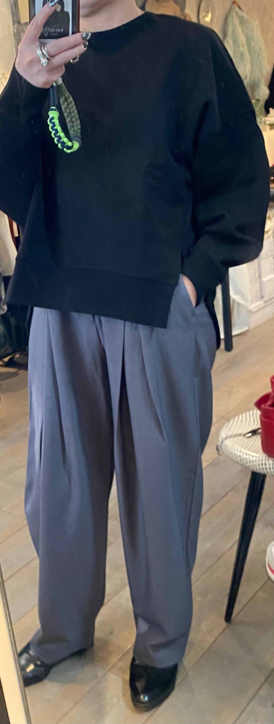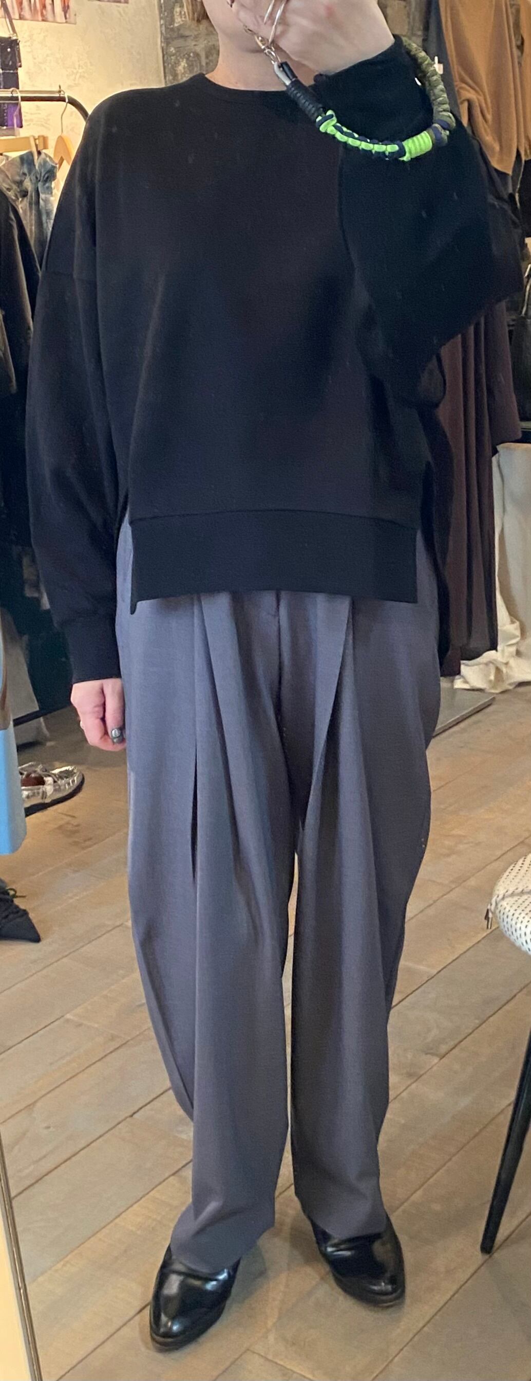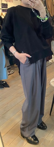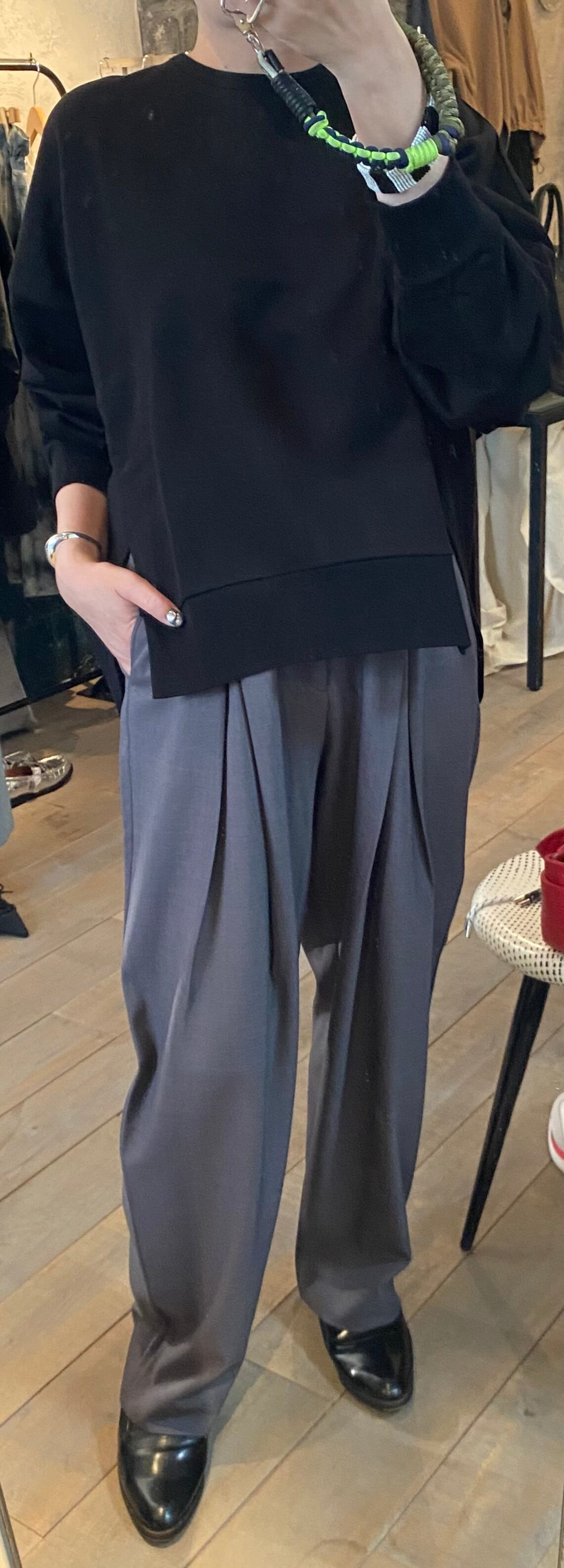 綿の柔らかな風合いは残しつつ、シルケット加工によりキレイに仕上げた裏毛素材です。表は毛羽が少なく光沢のある滑らかさが特徴です。ソフトなタッチとクリアな表情感のある生地です。前後段差をつけた着丈と、後ろ裾のラウンドにカッティングされたスワローテイルが特徴のプルオーバー。何とでも合わせさすいヘビロテアイテムです♪