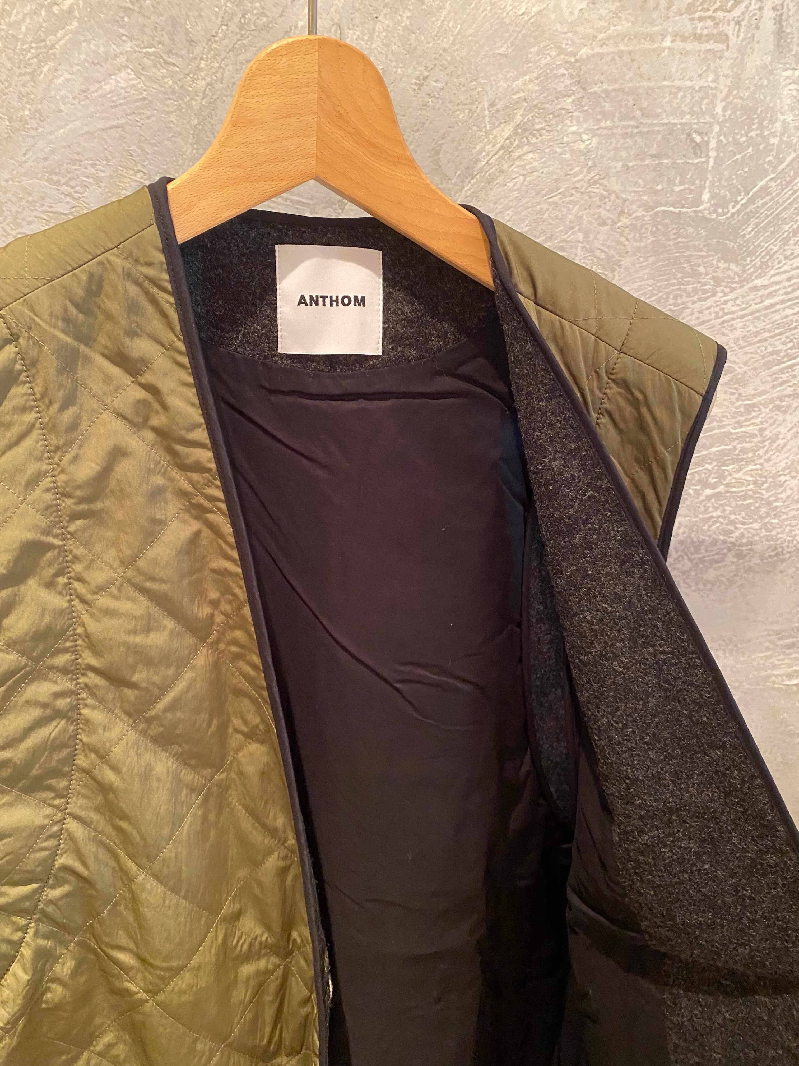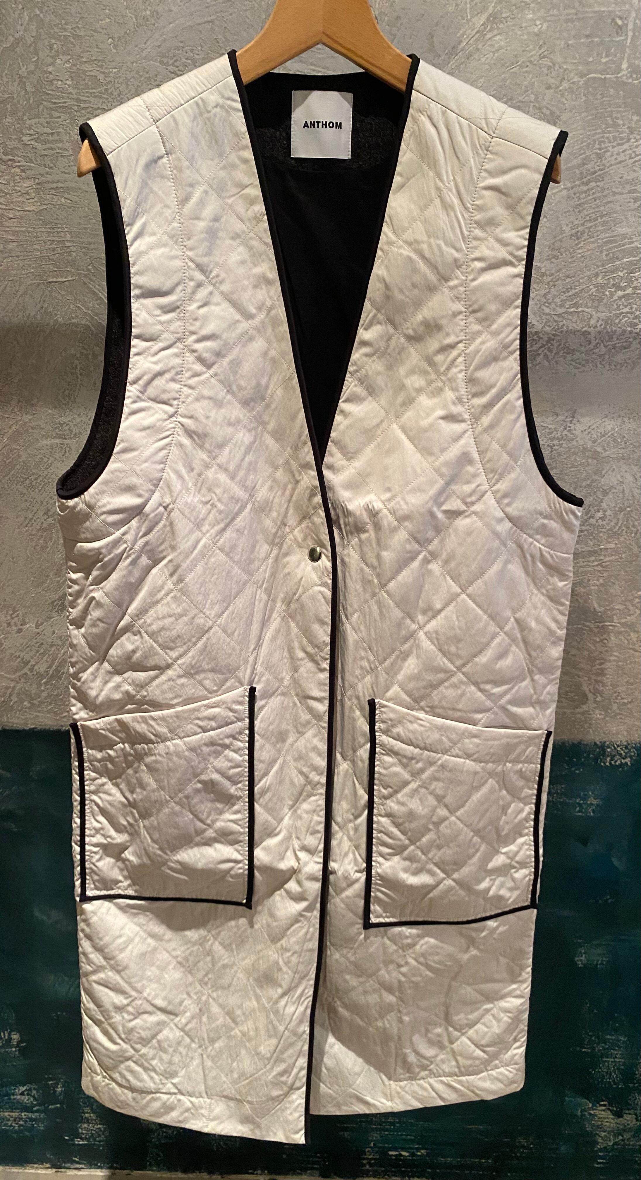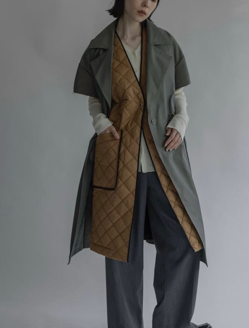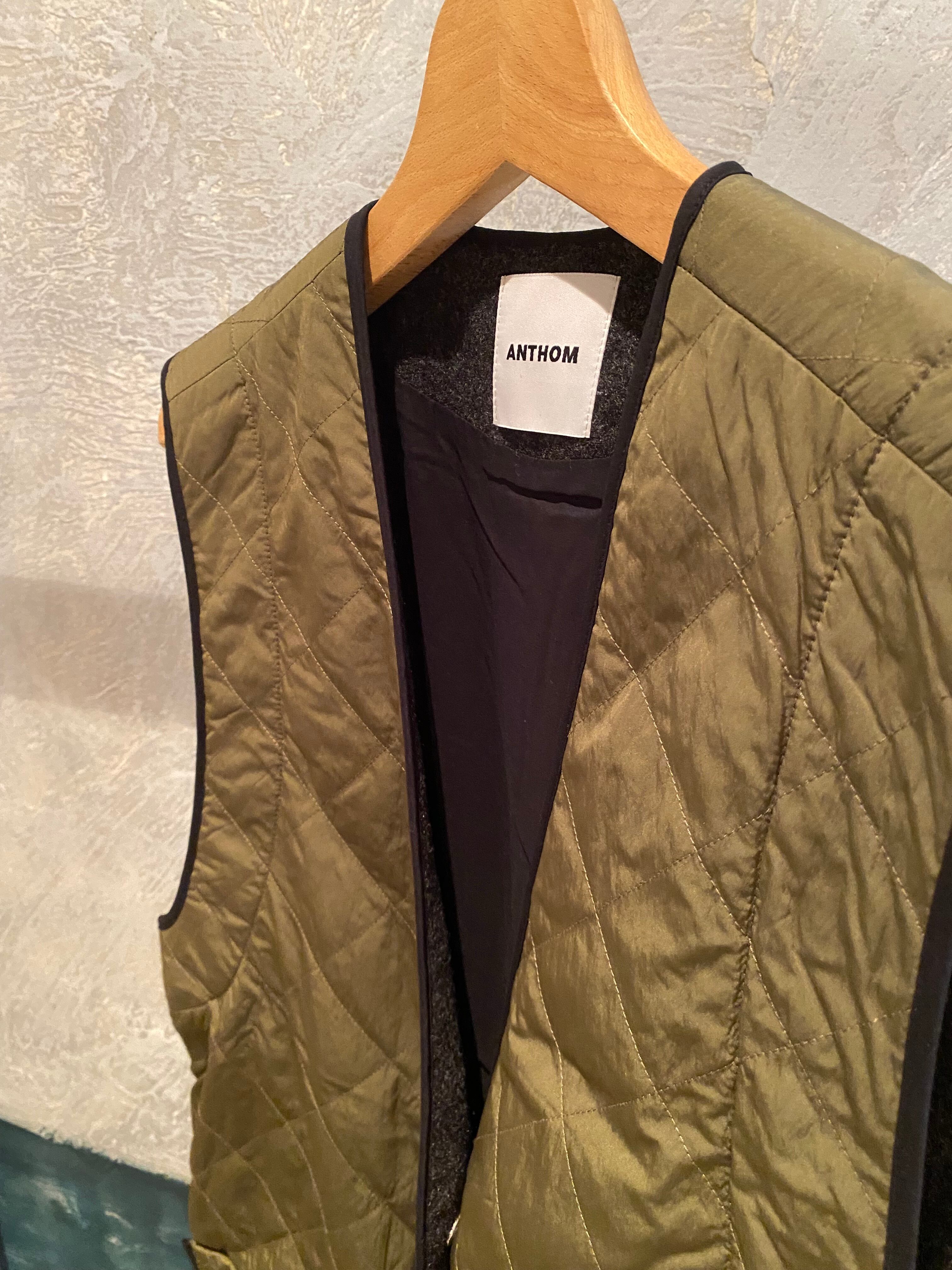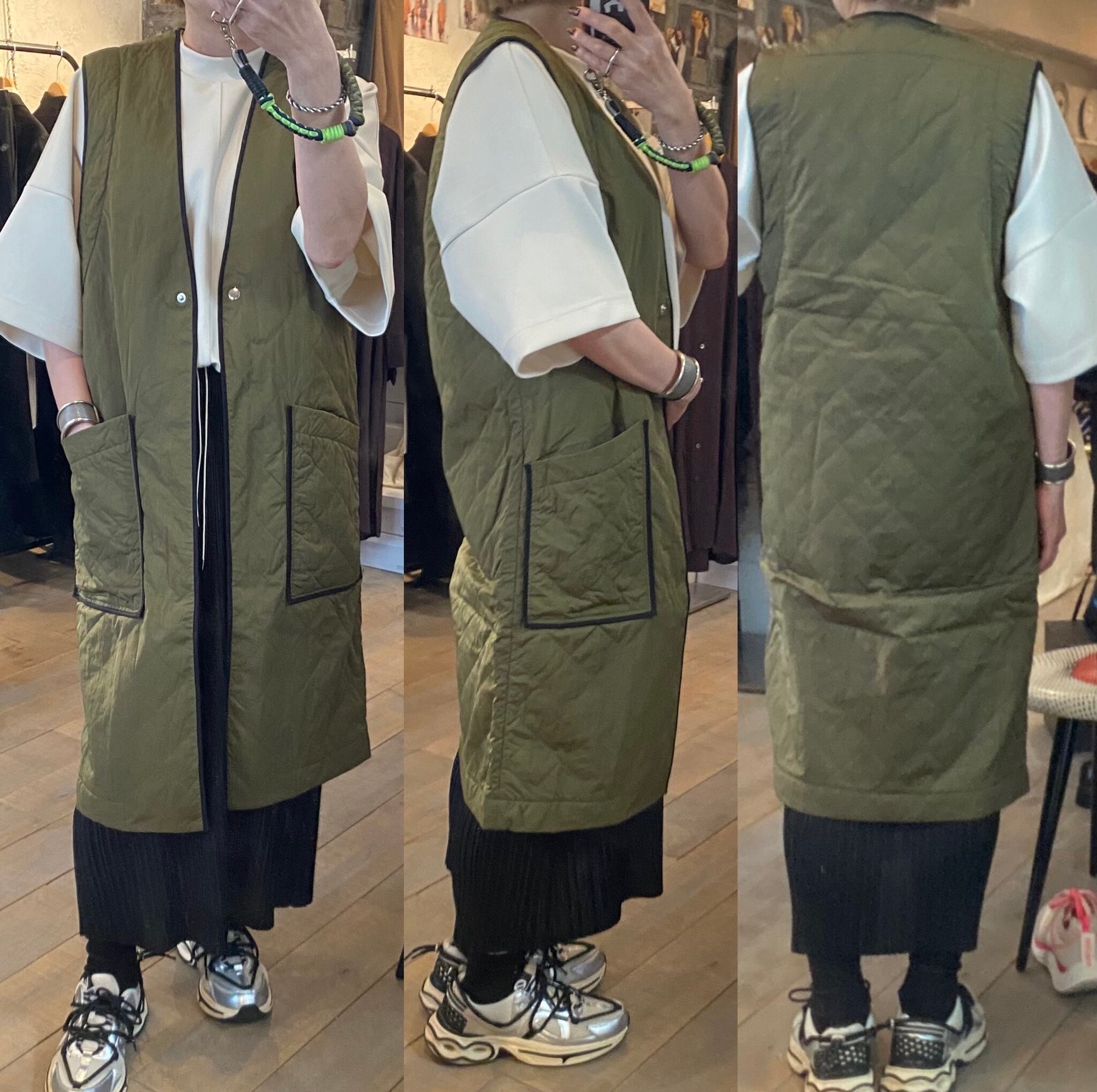 スッキリとしたシルエットのキルティングのジレベスト。フードやシャツ、カットソーでも合いやすいようにシンプルで無駄のないデザインにしております。トレンチなどの薄手のアウターのライナーに入れるととてもクールなコーデに。キルティング特有のホッコリ感を一切無くした洗練されたジレベストは、秋冬はもちろん、春先にも活躍するおすすめアイテムです♪