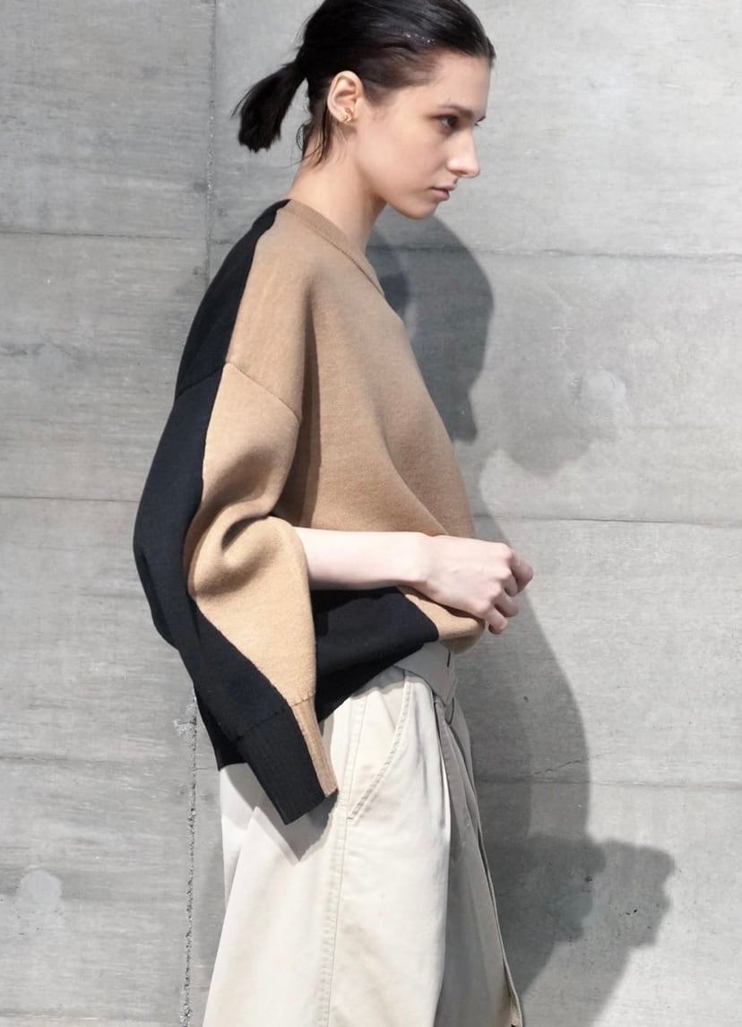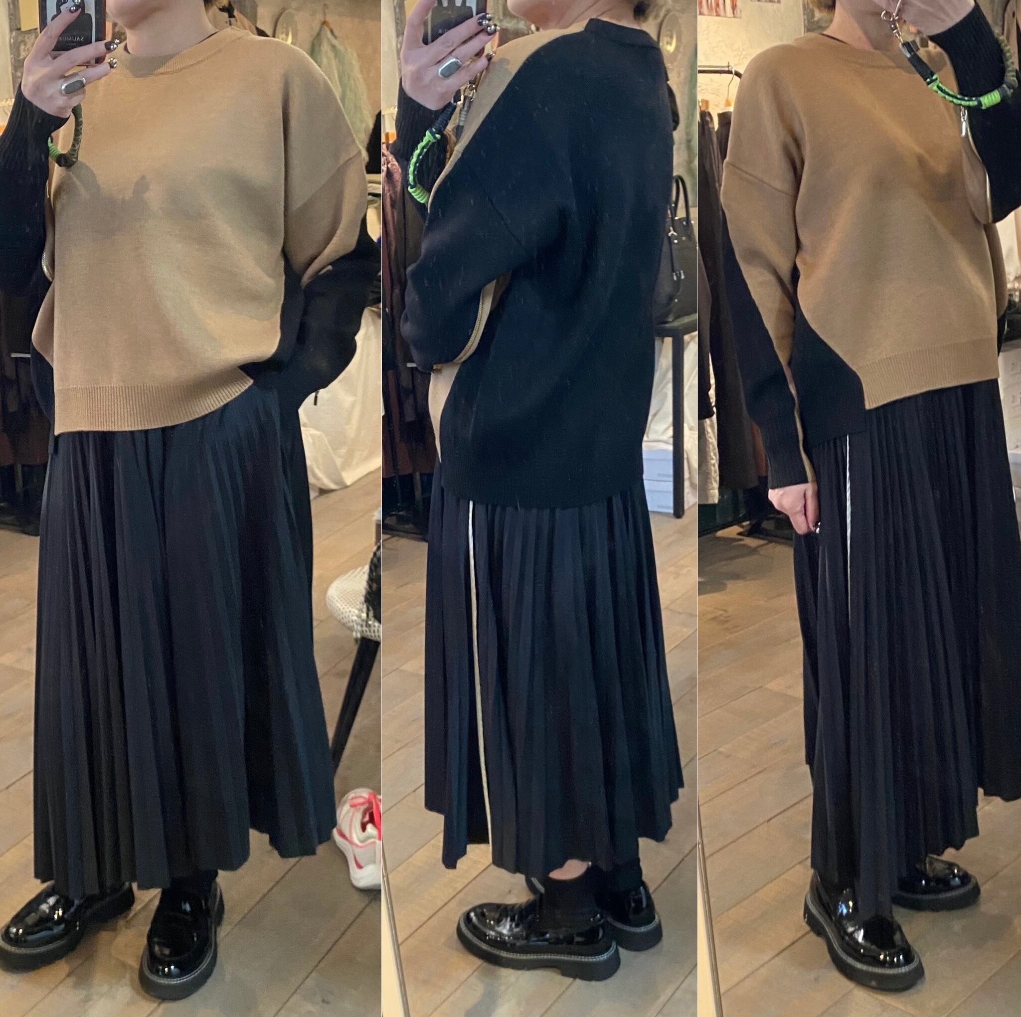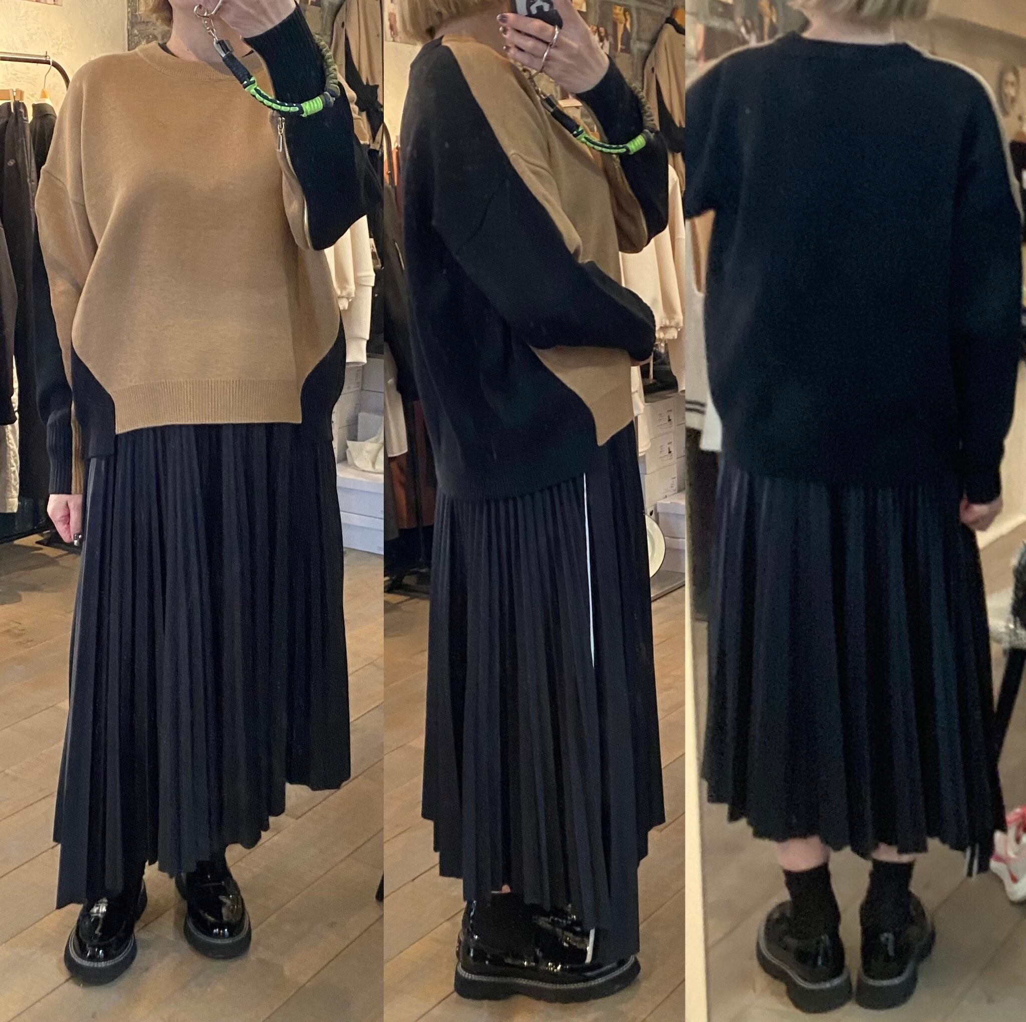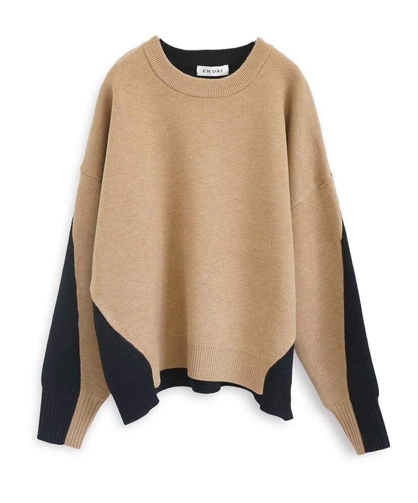 脇裾に入ったスリットを生かしてフロントだけトップスインして前後差をつけるなどスタイリングに立体感を作りやすいディティールです。キレイめなトレーナー感覚で着れる、大人のカジュアルスタイルに差をつける1枚。サラッとした混毛の生地を2層に編んだ、軽くて暖かい着心地の接結編みニット。2枚の生地の間に空気を含むので、膨らみとハリがあるスポンディッシュな仕上がりに。ウールの比率を抑えた程よいウォーム感で秋口から冬、春先までロングシーズン着用できる素材です♪