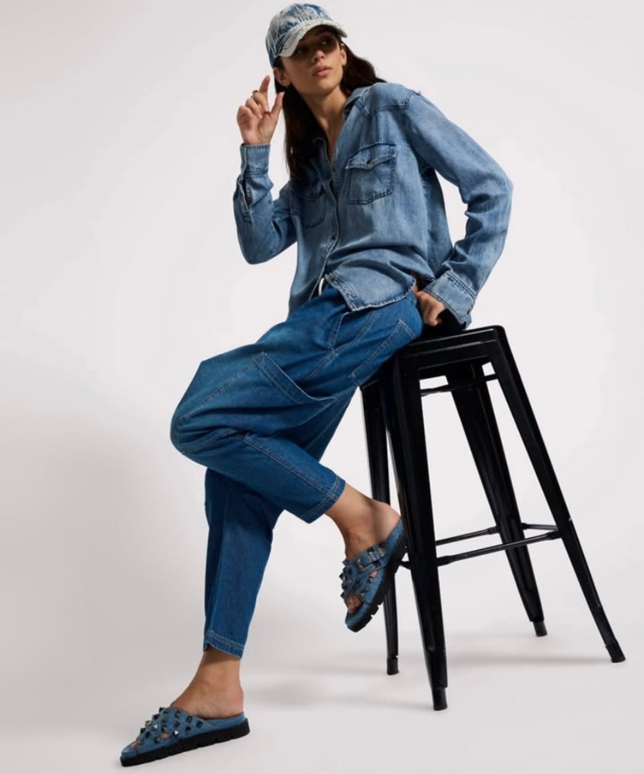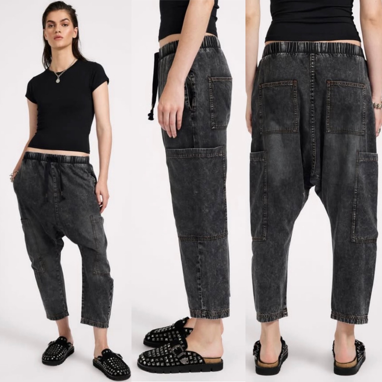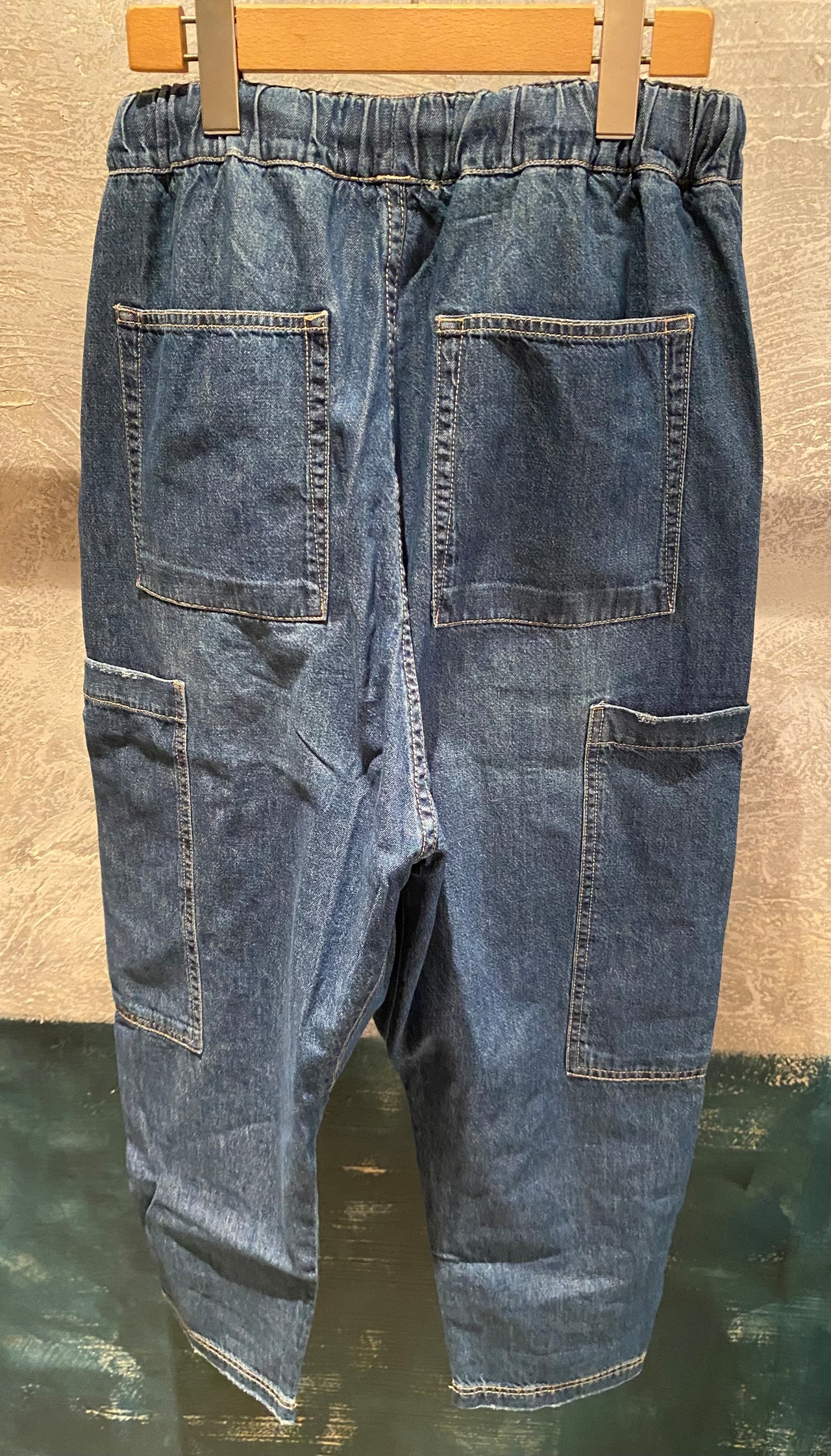 リラックス感のあるハーレムカットで風通しの良い柔らかく軽い素材のデニムパンツ。両サイドポケット有り、足を包むサイドポケット、クロップドテーパードの裾、快適なドローストリングウエストが特徴です。履き心地も良くシーズンレスで着回せます。