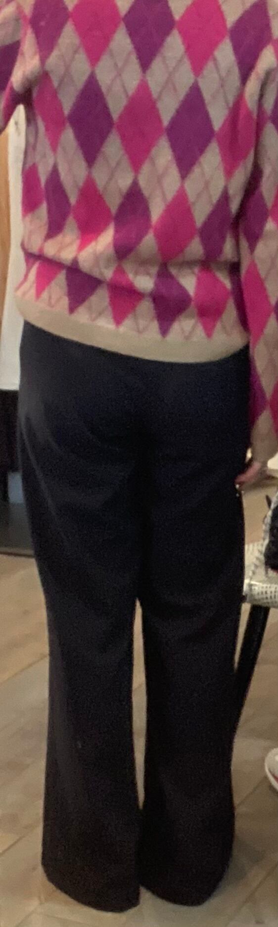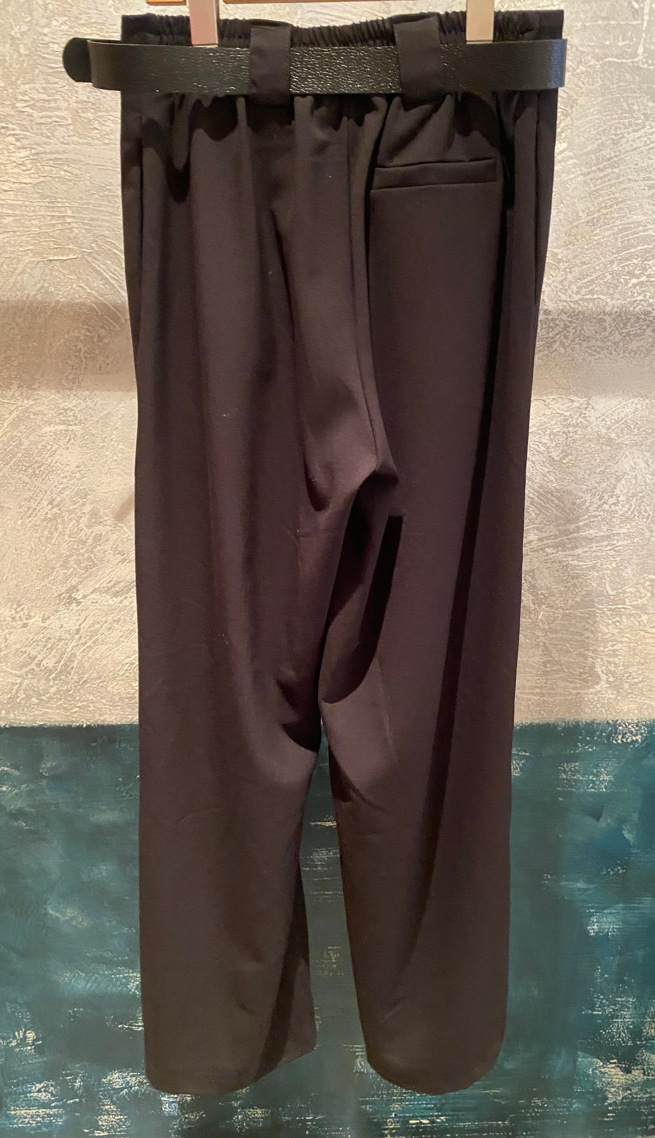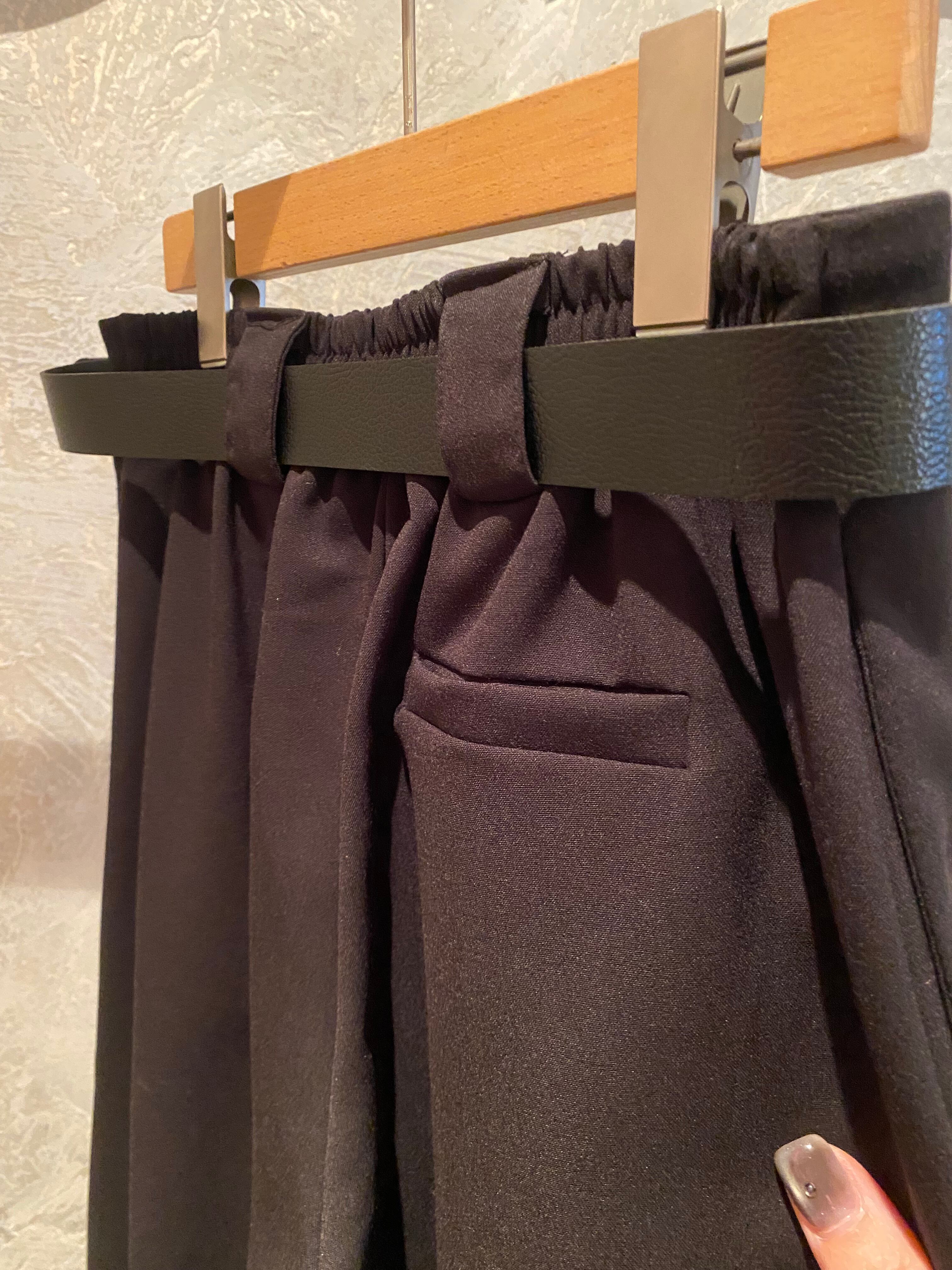 パンツはオチ感のある綺麗なシルエット。ファスナーなどなくスポット履くタイプで、後ろがゴム仕様でストレスフリー。付属のベルトでサイズ調節可能です。