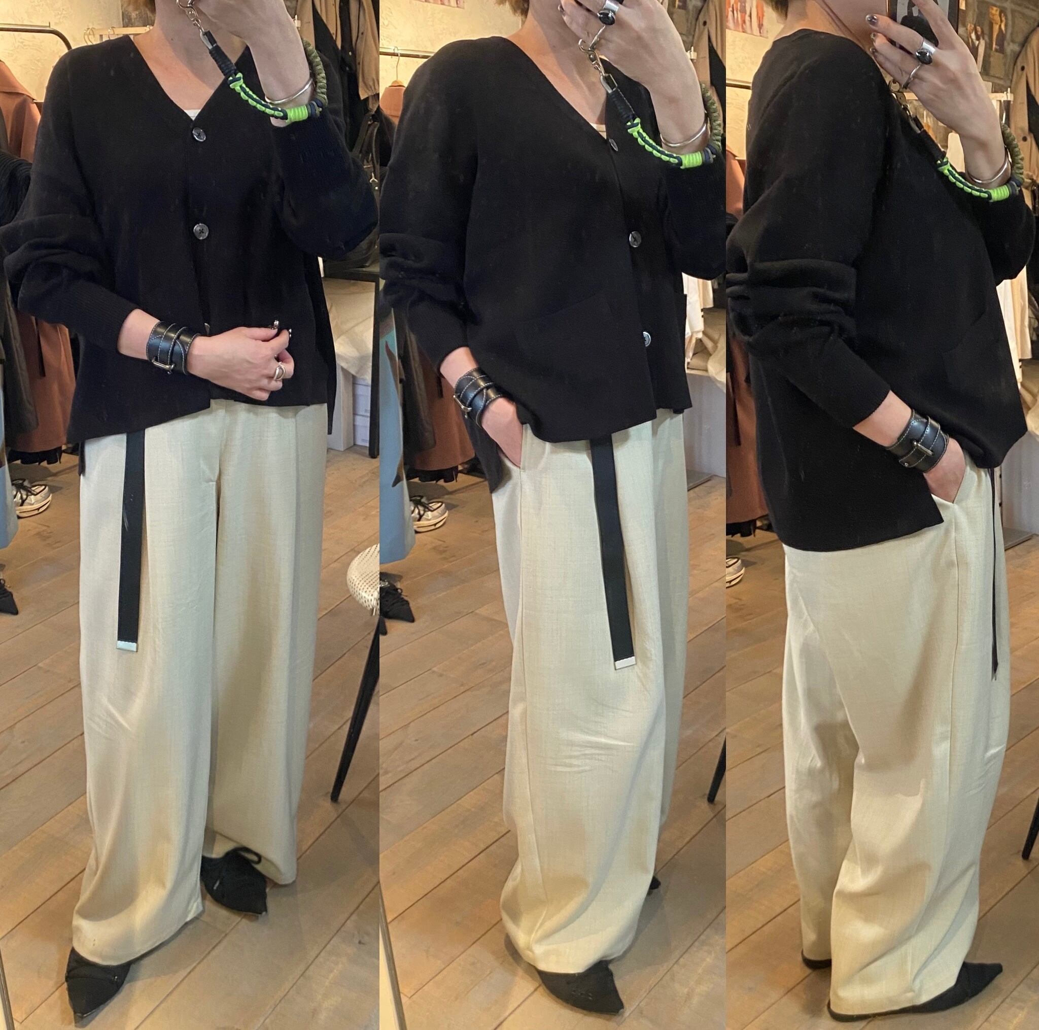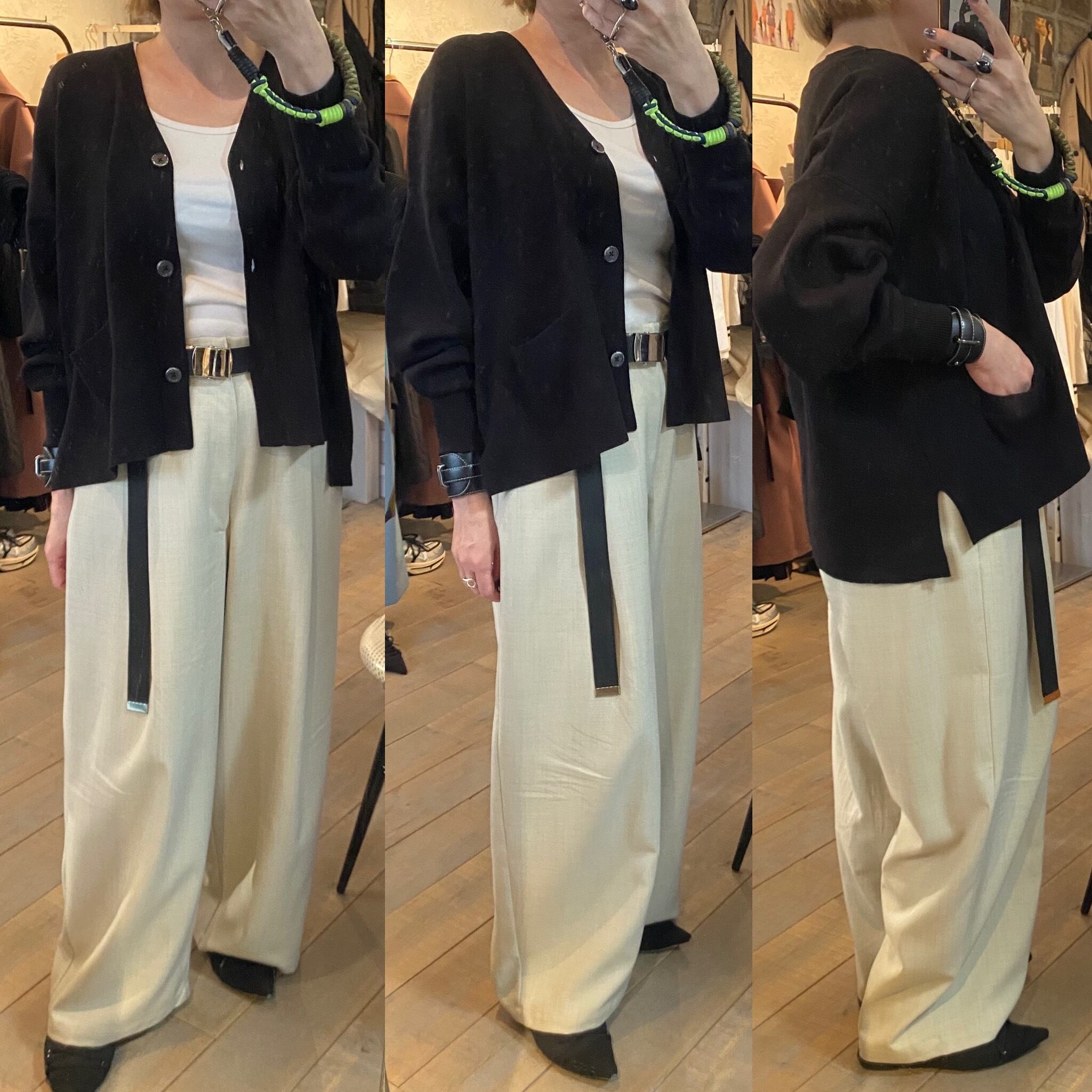 オーバーシルエットでサラッと着るだけで雰囲気の出るVネックカーディガン。コットン100%ですが、カシミヤが入っているような柔らかな着心地。ロングシーズン着回せ、ウールはまだ早い寒暖差のある今の季節にも重宝します。インナーも着込め、上から羽織るアウターも選ばないので、今から真夏に差し掛かるまでレイヤードを楽しめます♪
