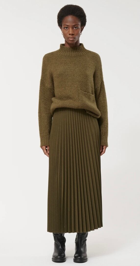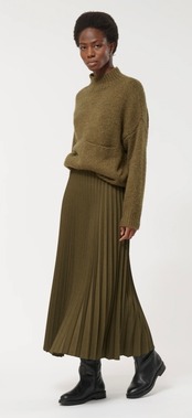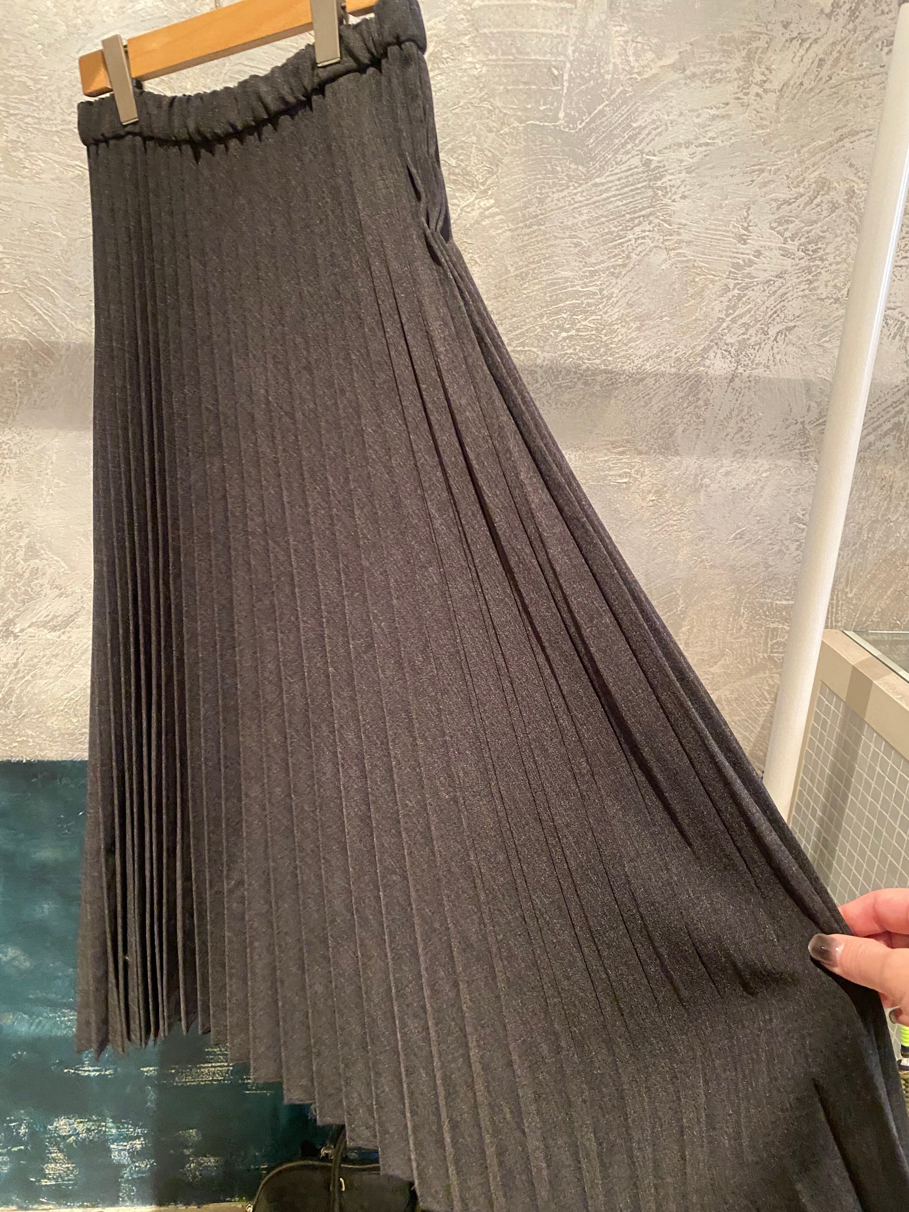 オチ感のあるプリーツロングスカート。プリーツですが広がりにくくスッキリ履け、着膨れはしないです。ウエストがゴム仕様で楽チンに履けるスカート。シーズンレスではけるのも嬉しいところ。手洗いも可能なイージーケアアイテムです♪合わせるトップスも選ばす着回しのきくスカートです。