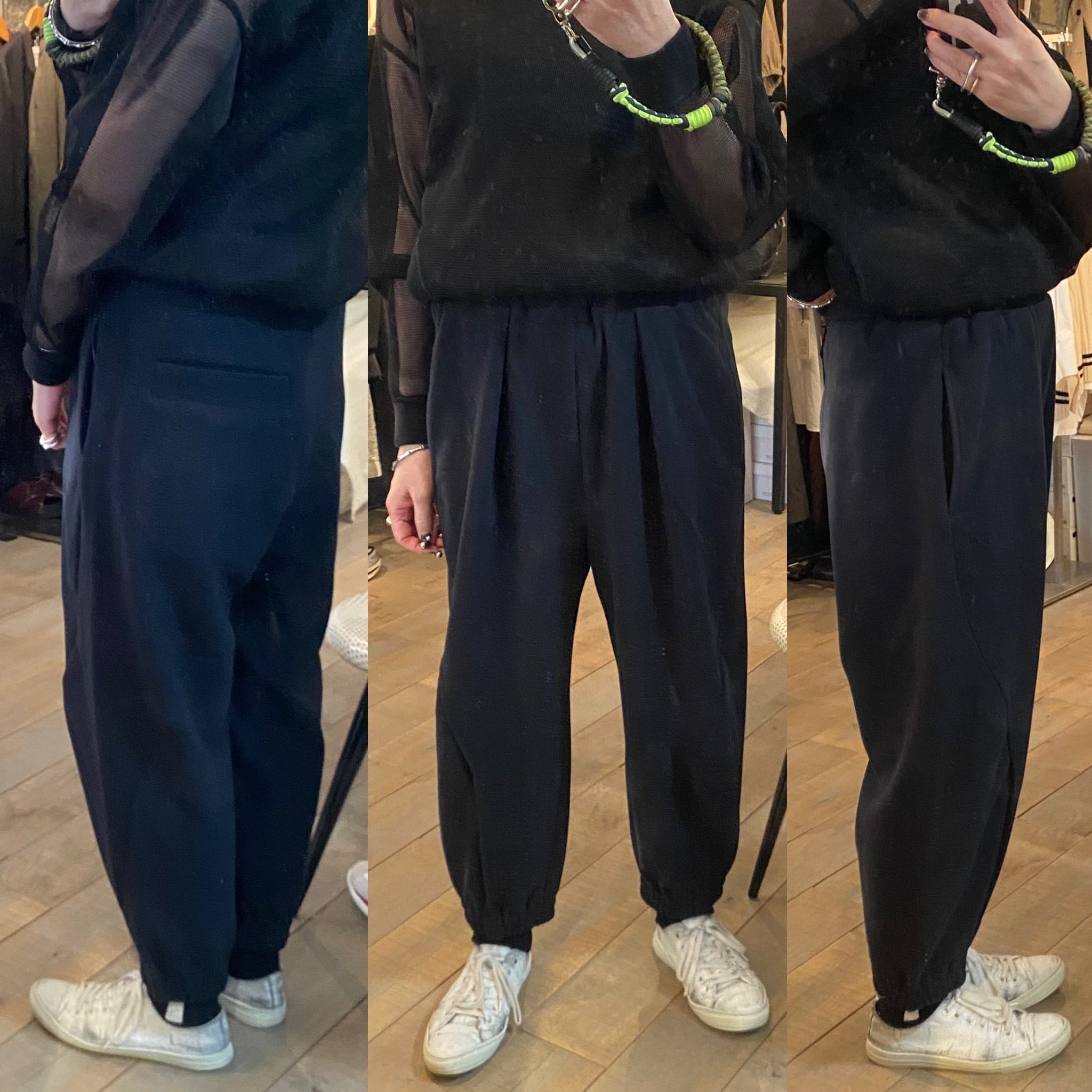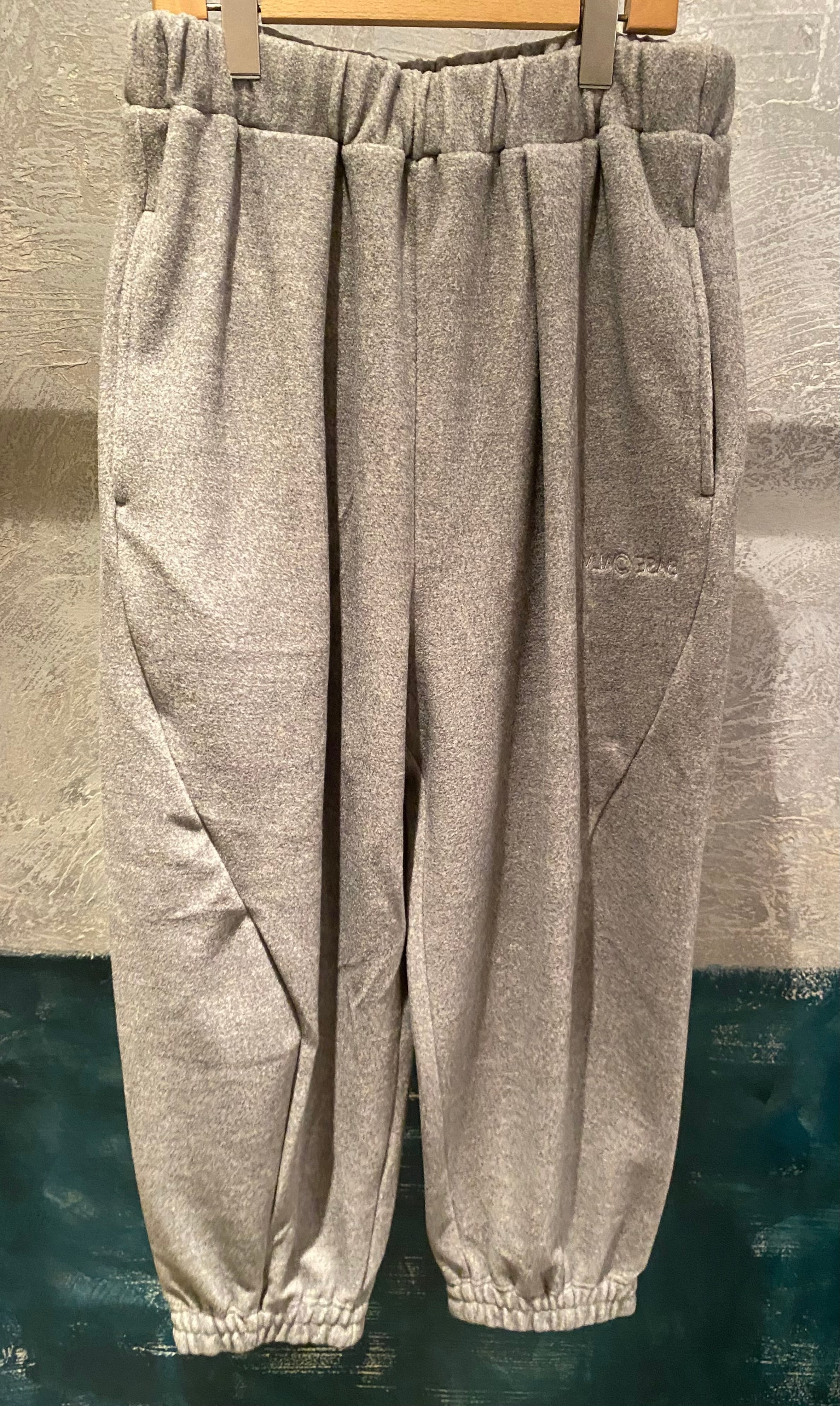 両サイドの切り替え位置を大きく前にカーブすることで立体的なシルエットを構築したこちらのブランドで定番のデザイン。プレーンなスウェットパンツですが、存在感のあるアイテムとして着用頂けます。ウエストは紐とゴム仕様でサイズ調節可能。フロントサイドのさりげないブランドロゴ刺繍もポイントに。