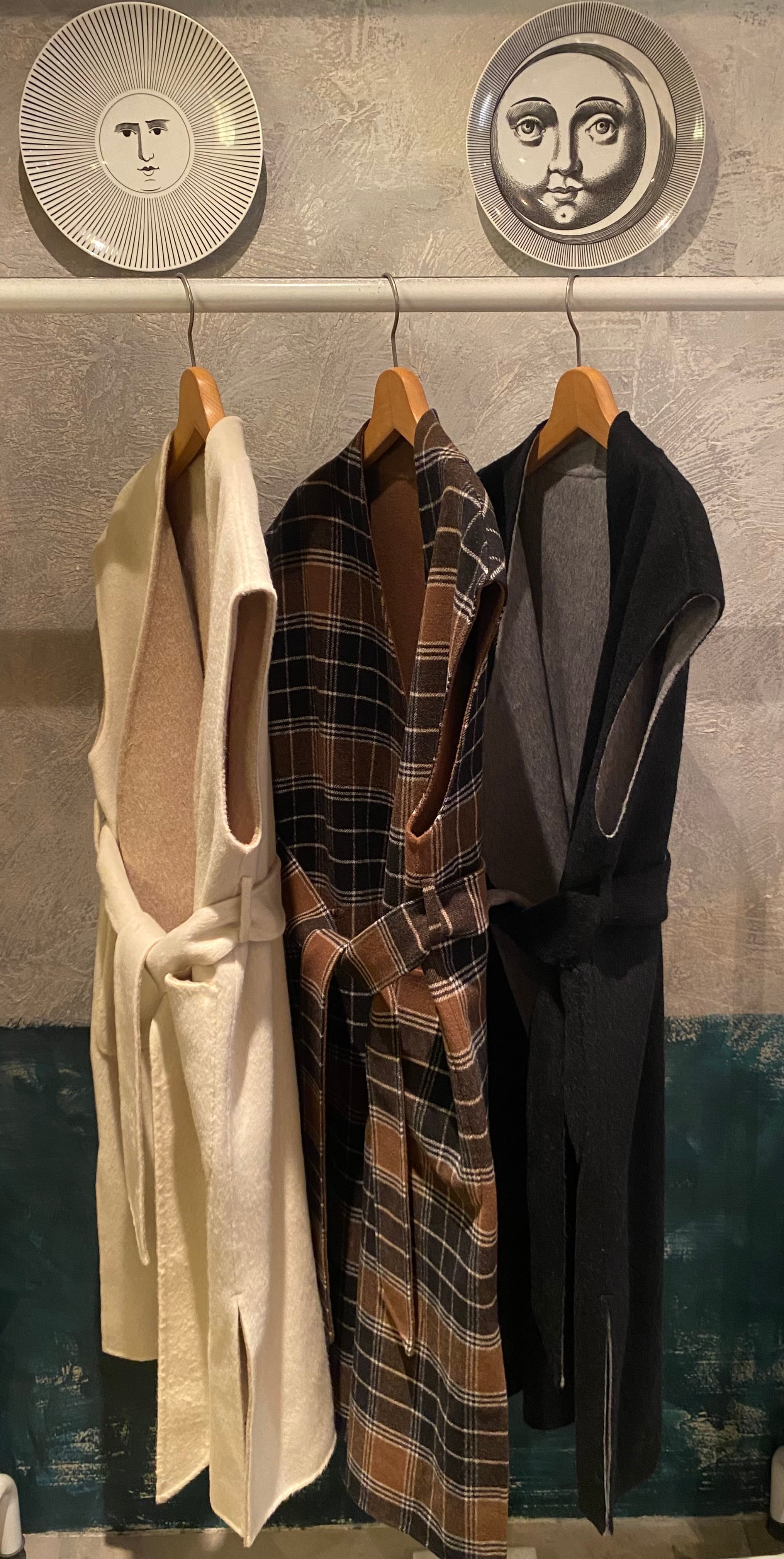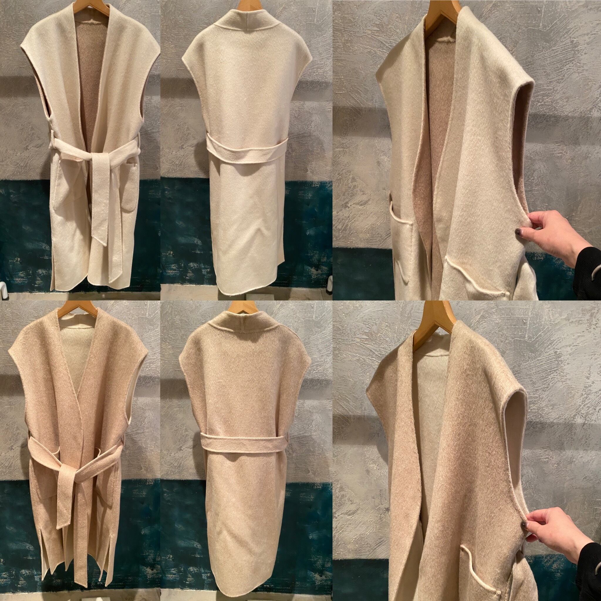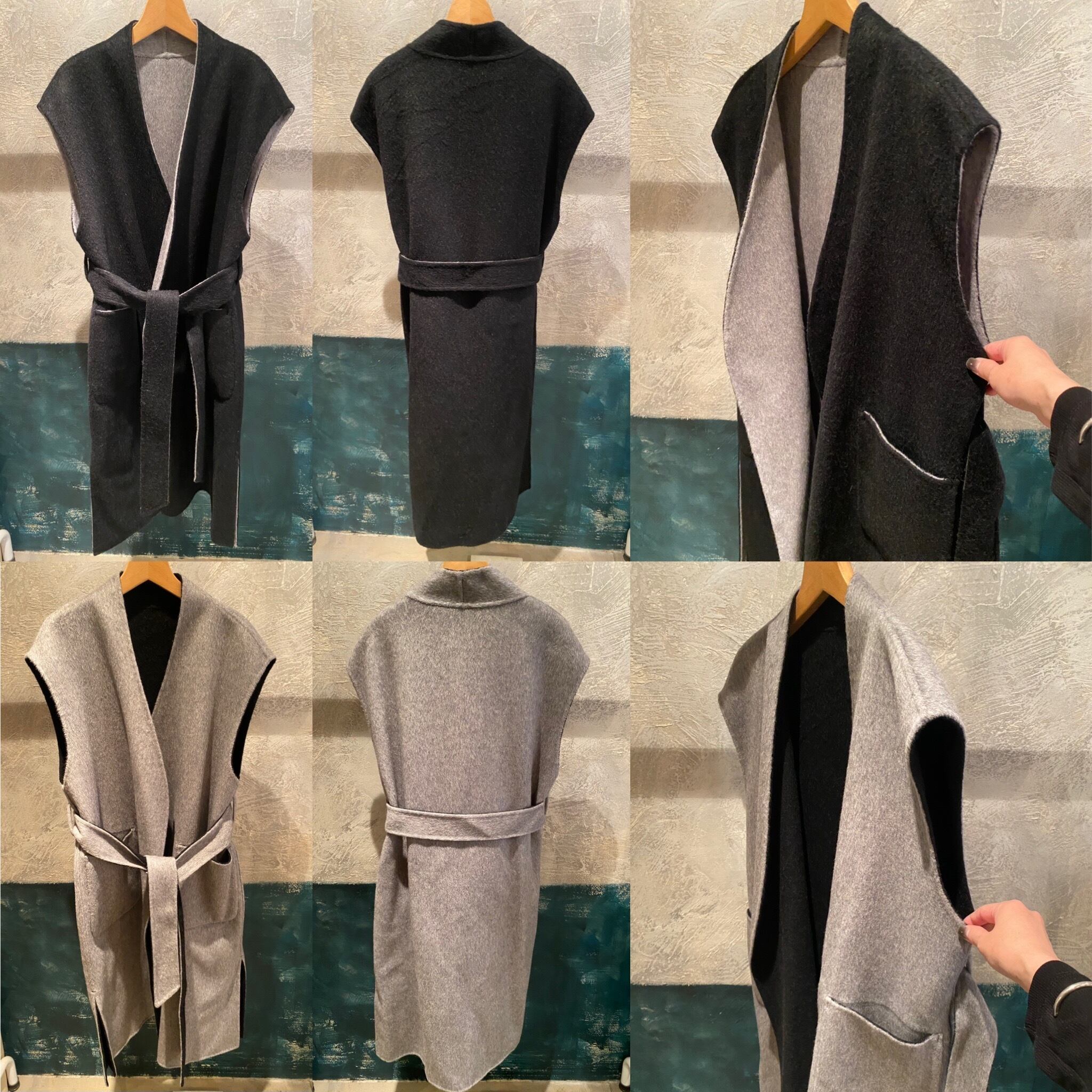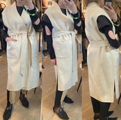 レイヤードに便利なベルテッドジレ。リバーシブルで楽しんで頂け、コーディネートの幅を広げてくれます。ダブルフェイスで上品な印象。フロントサイドにポケット有り。ベルトを開けてサラッと羽織っても、ベルトマークしてワンピース見えさせるのも◎