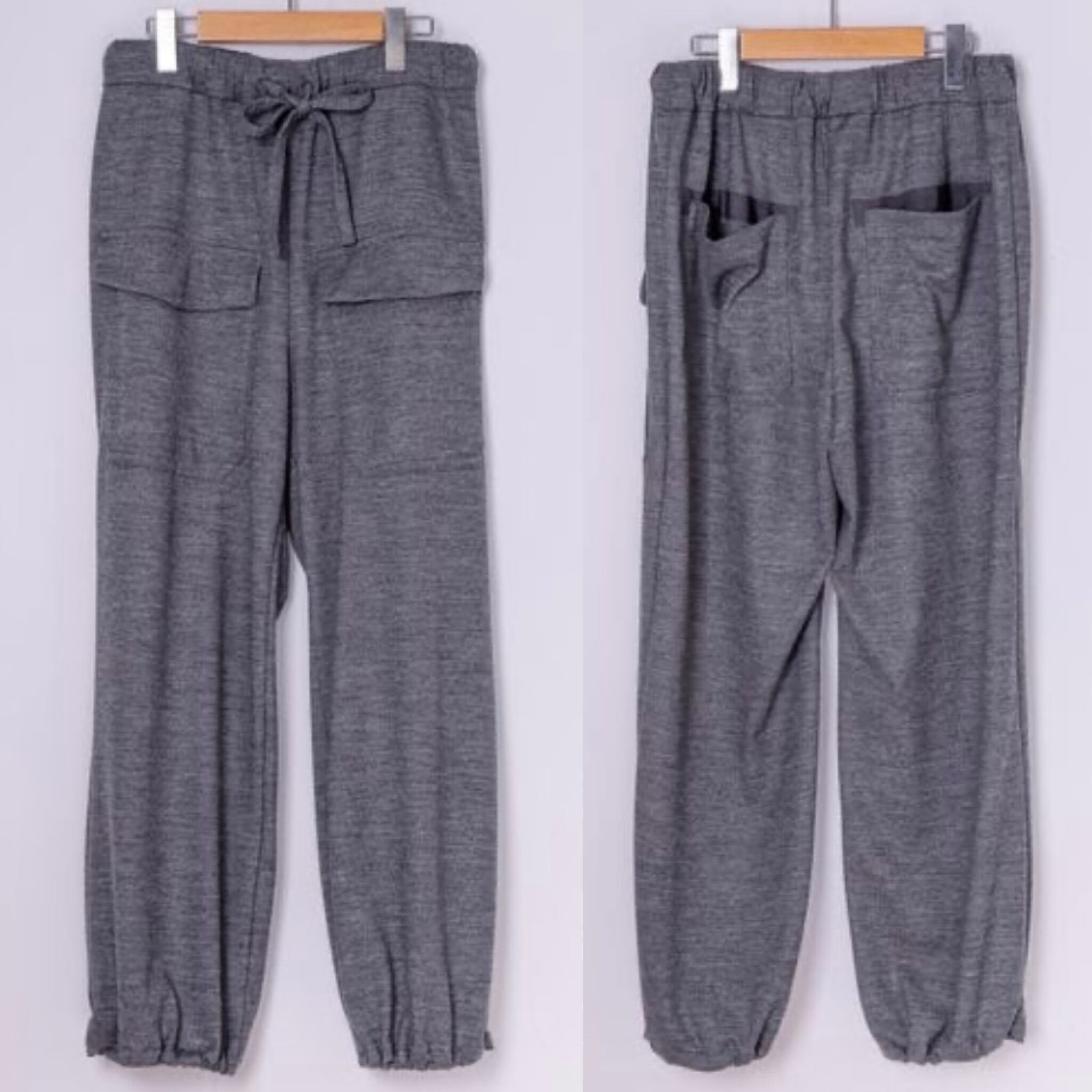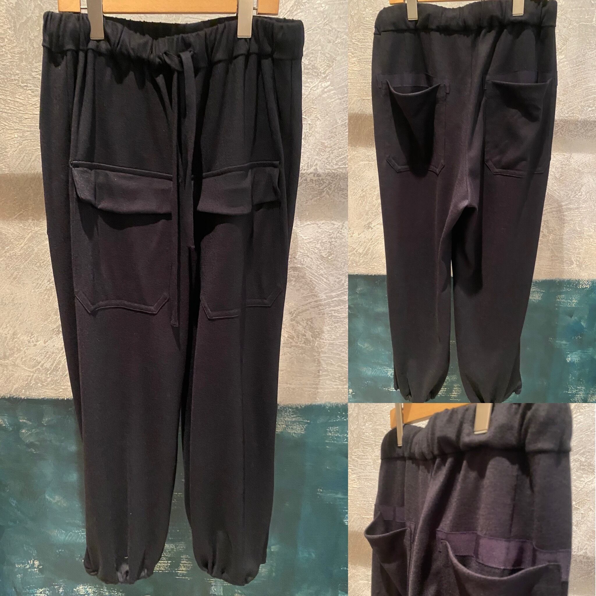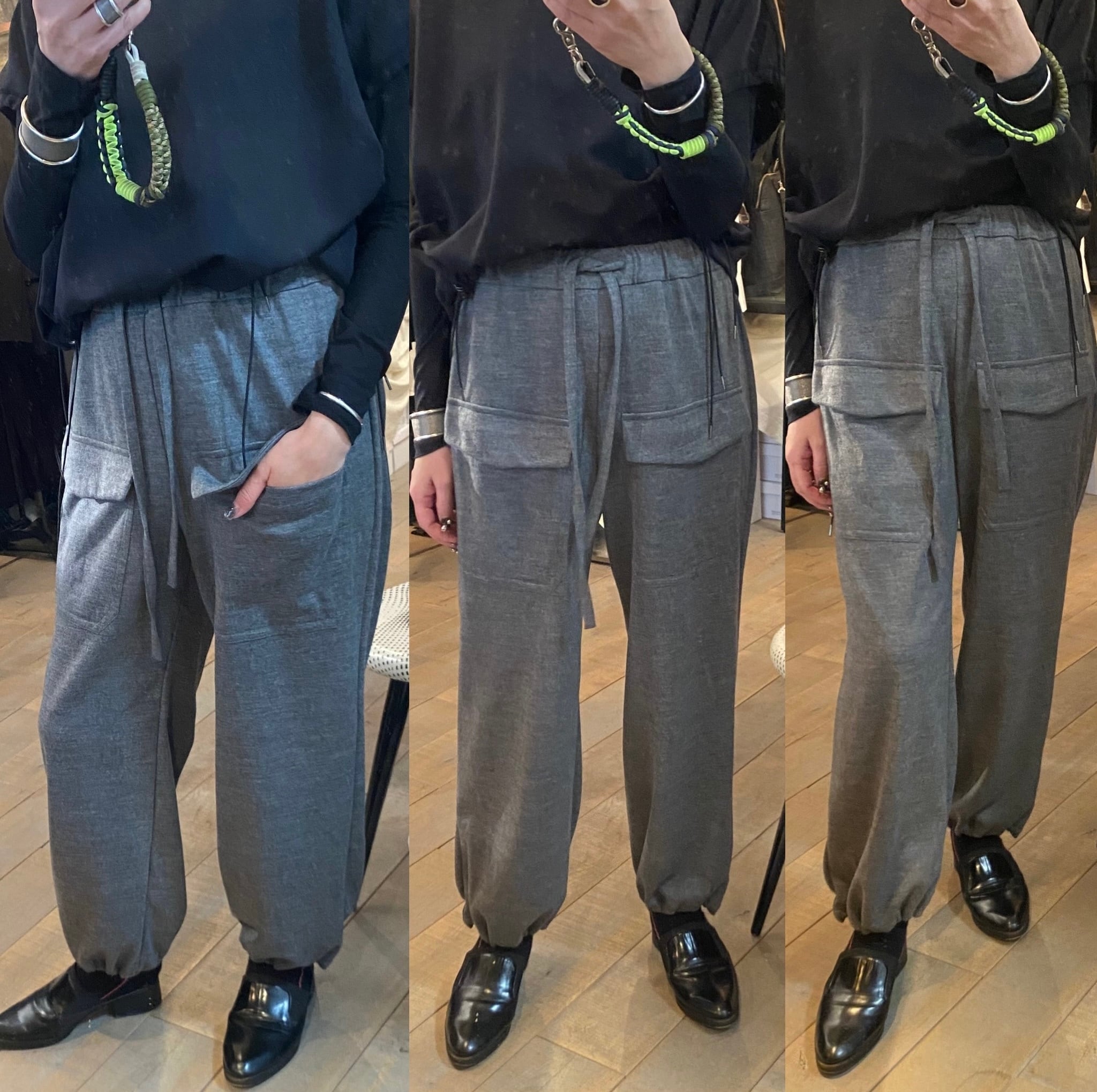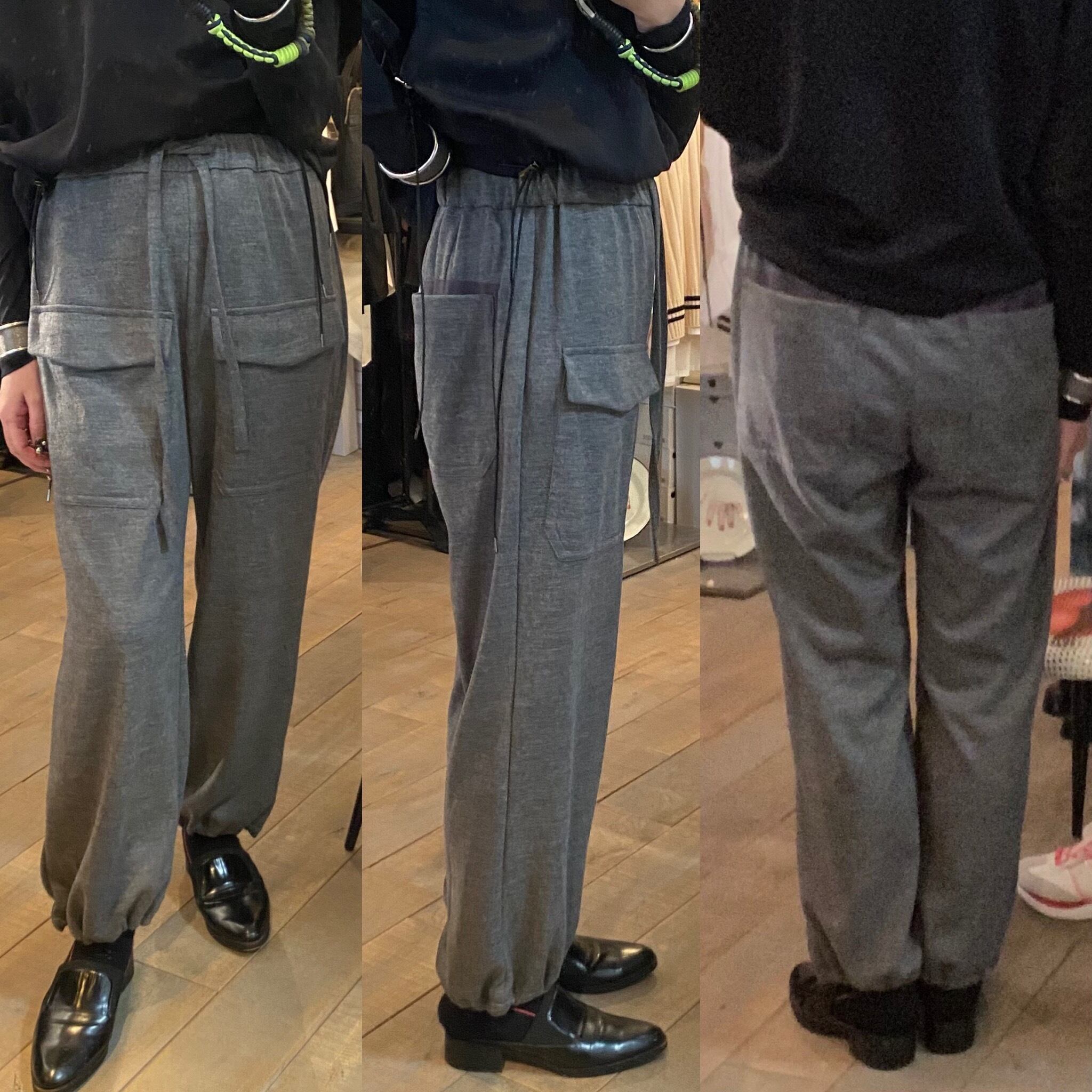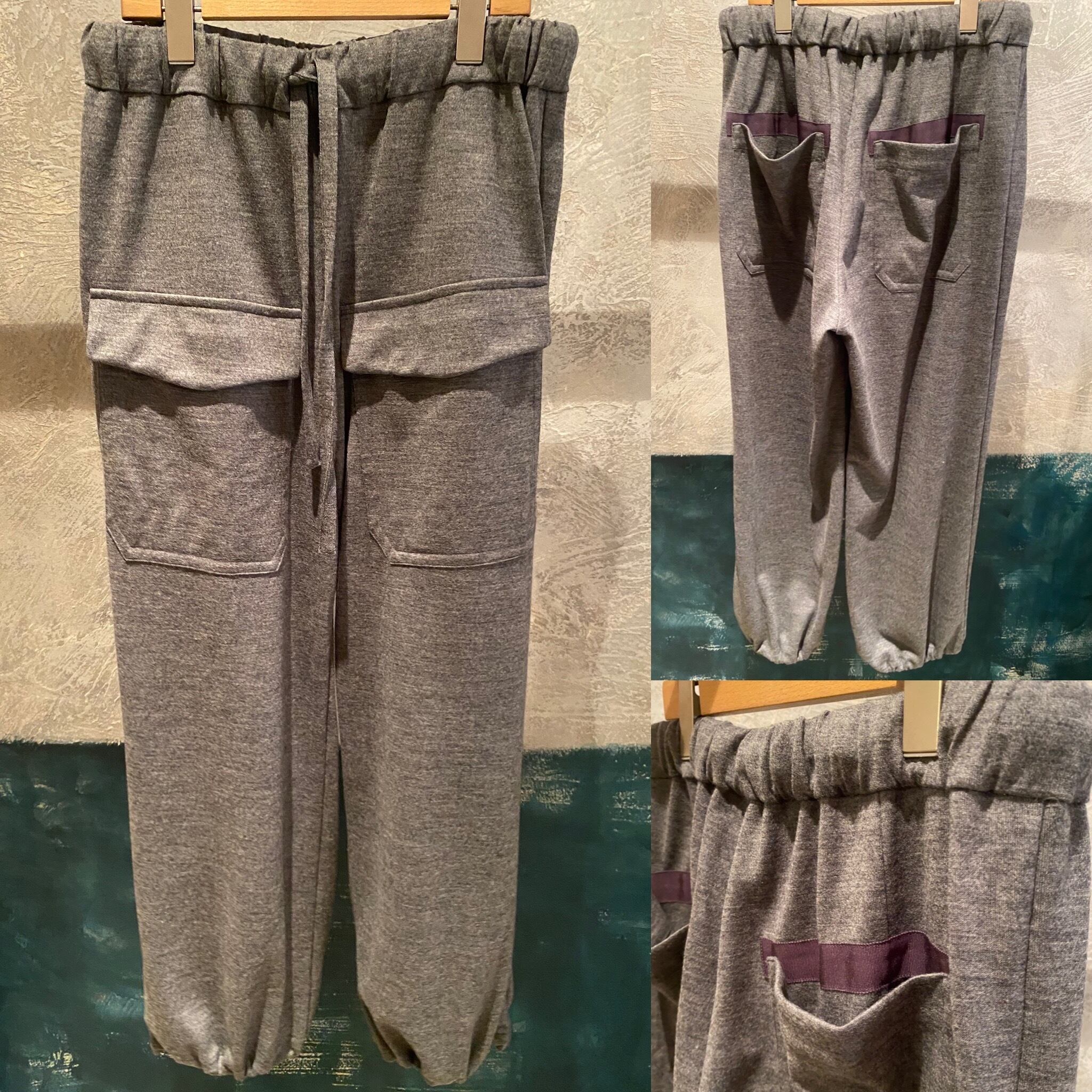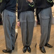 48番双糸のやや太番手のウールをミルド仕上げする事により、適度な肉感とハリ感を実現した素材。とても履き心地が良いです。