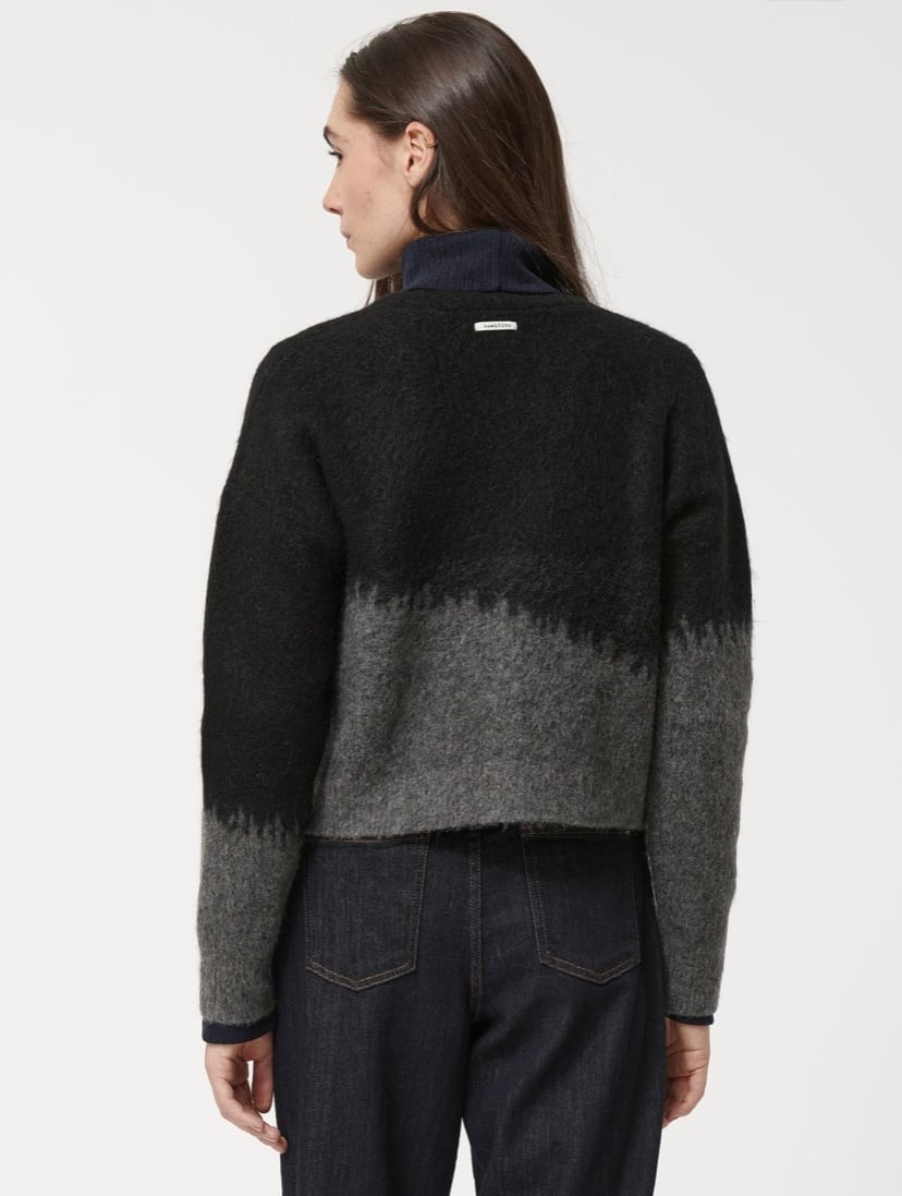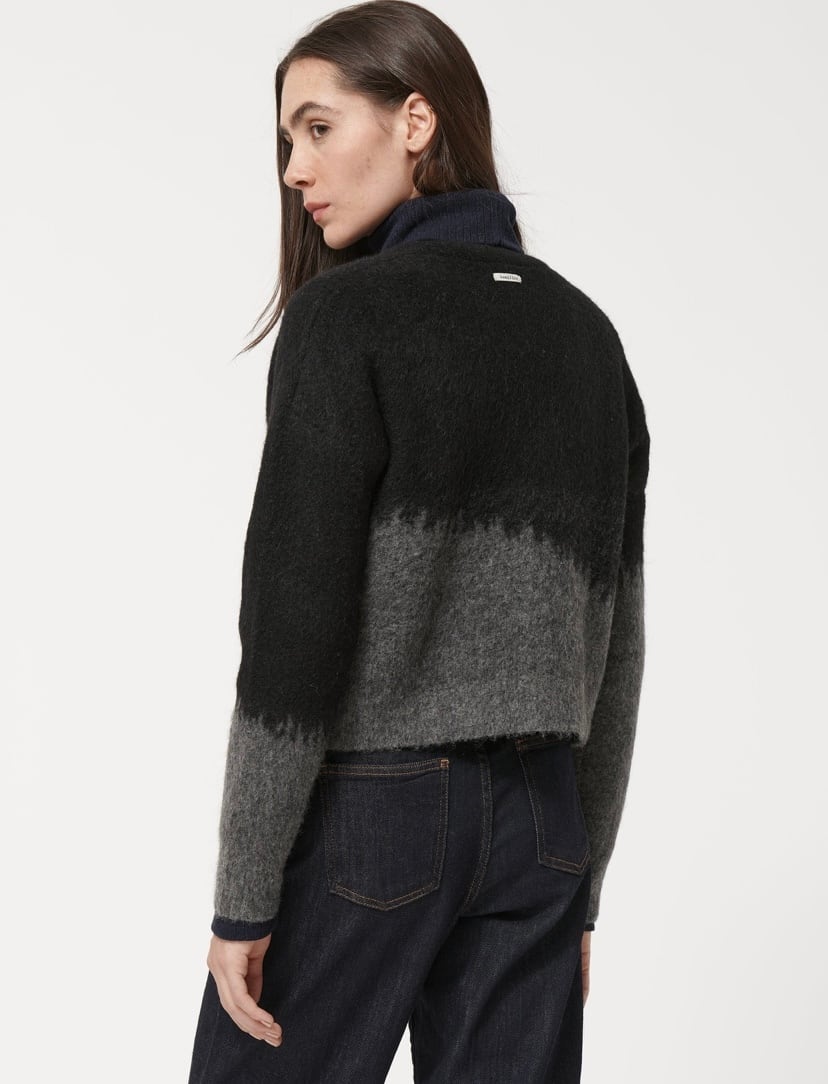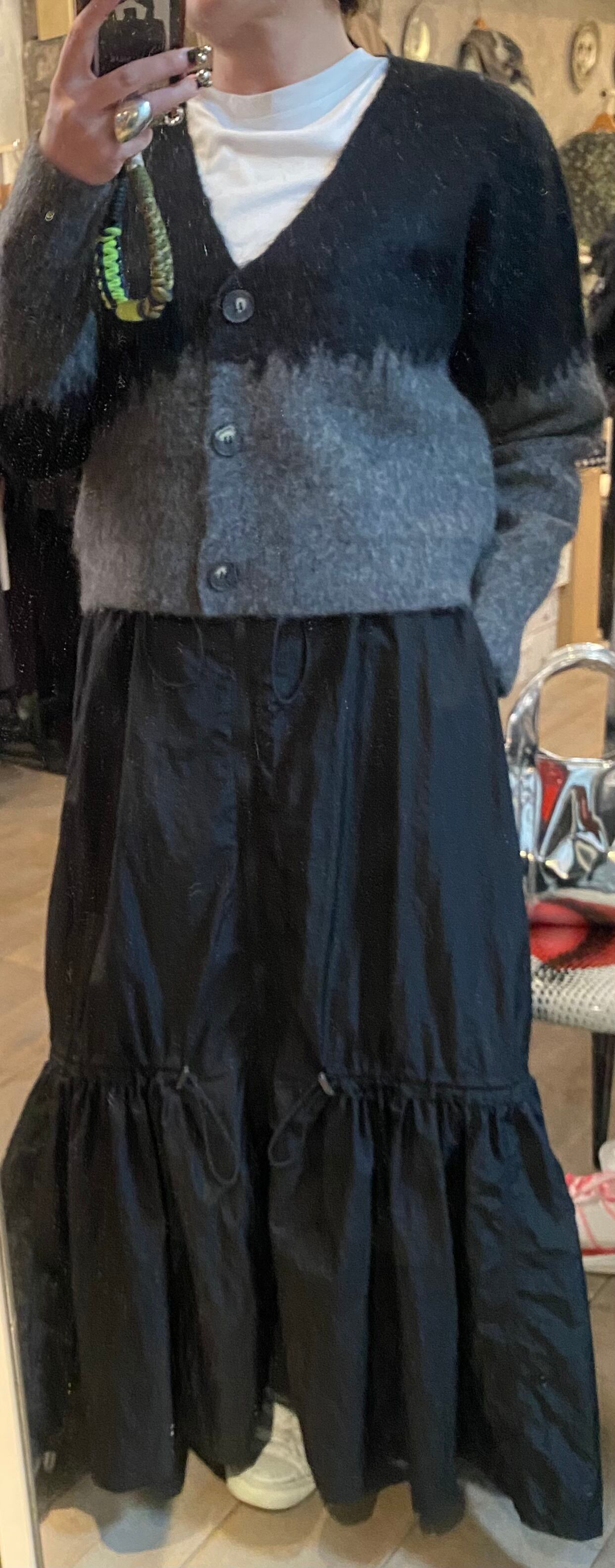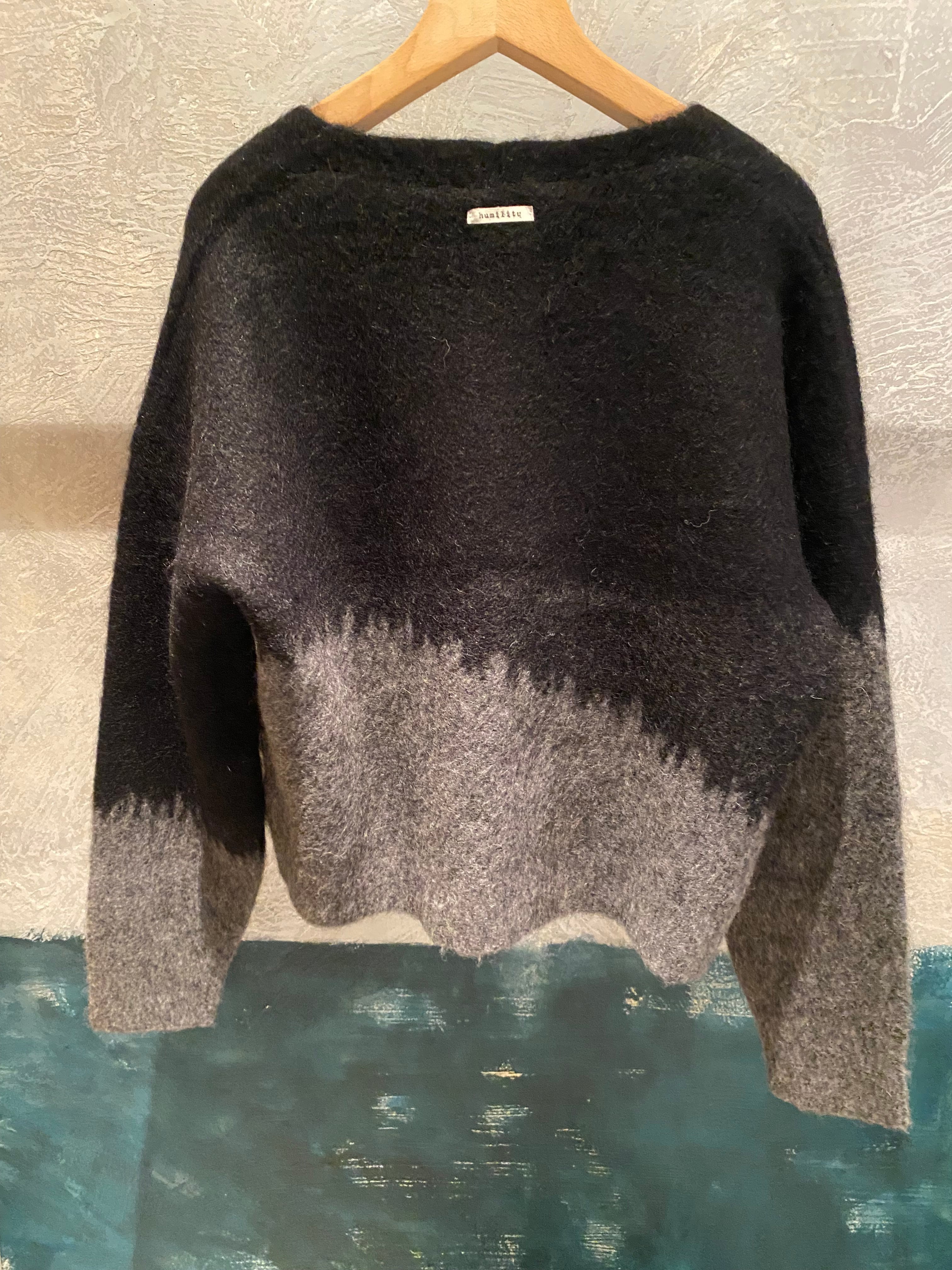 ベーシックVネックカーディガン。2トーンカラーのデザインがポイント。モヘア混の圧縮ウールで軽くてとても暖かいです。