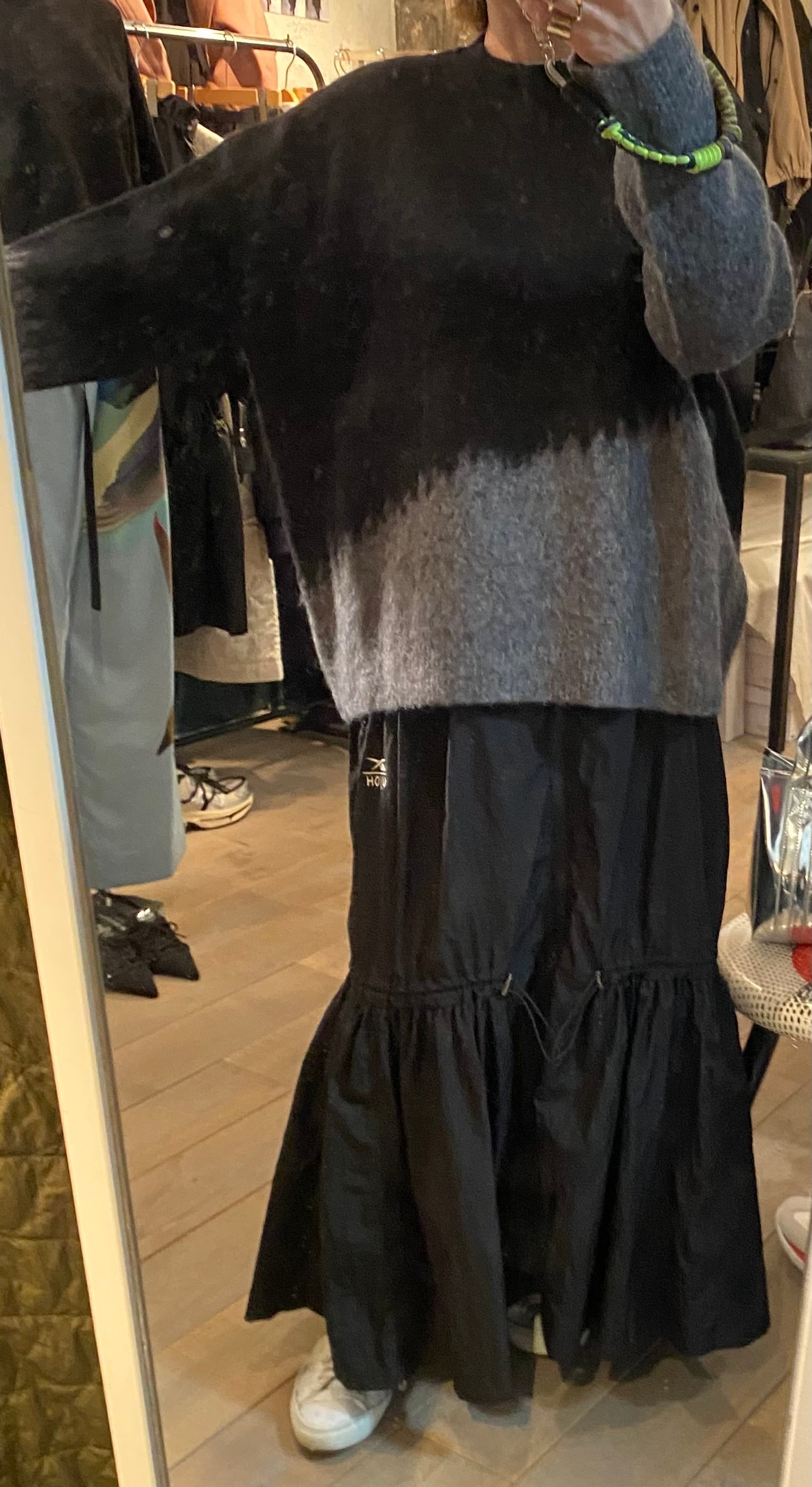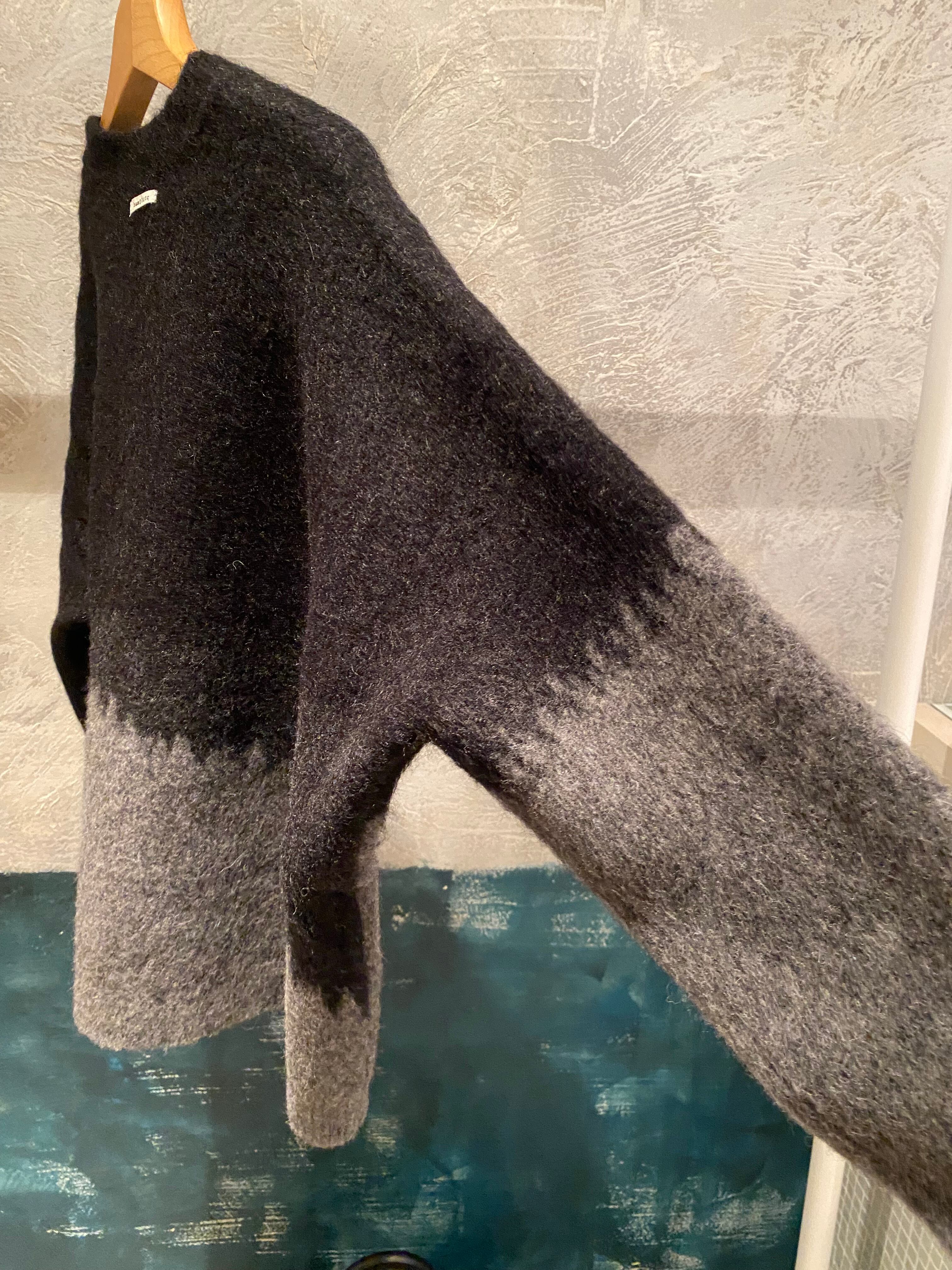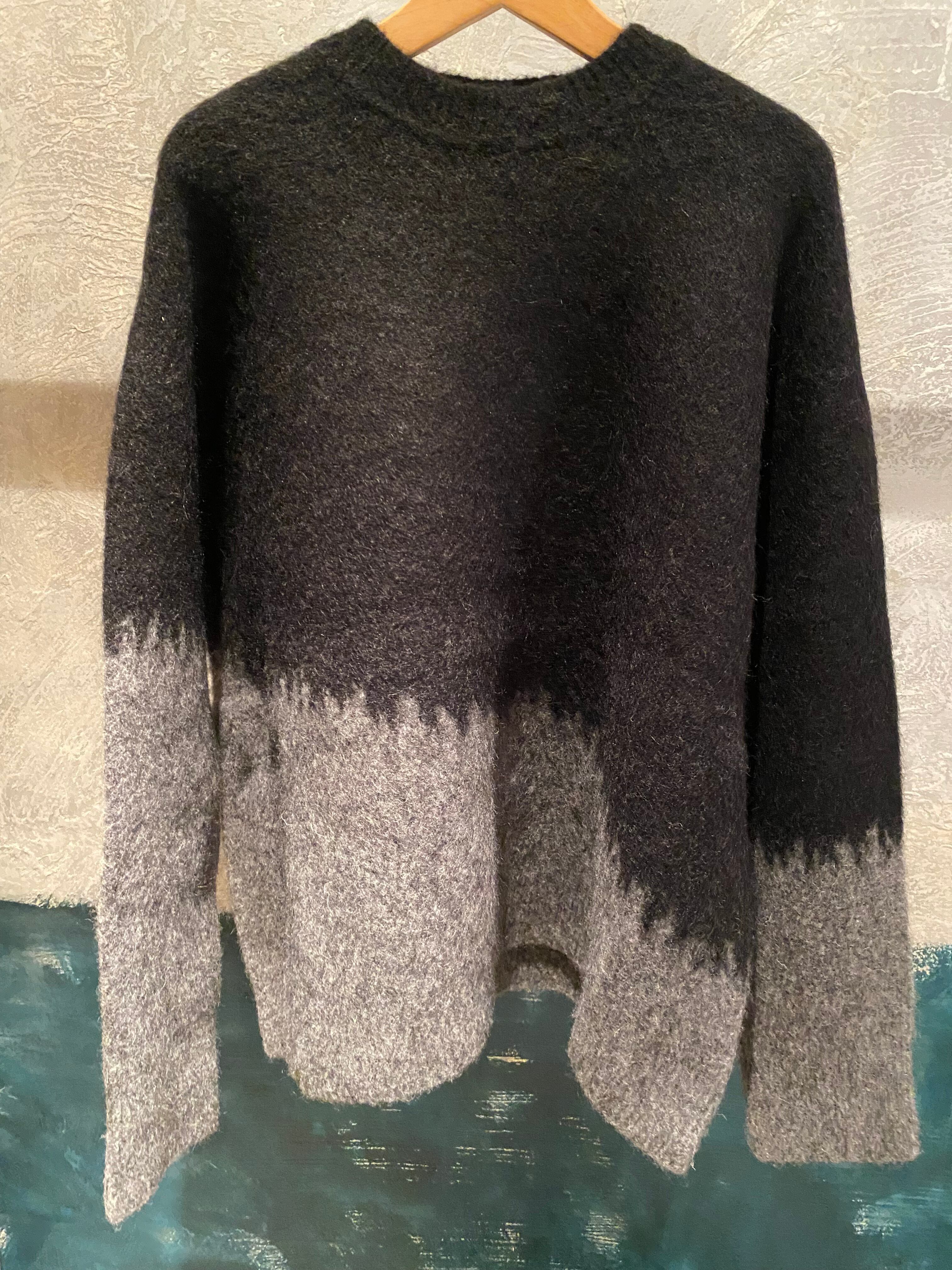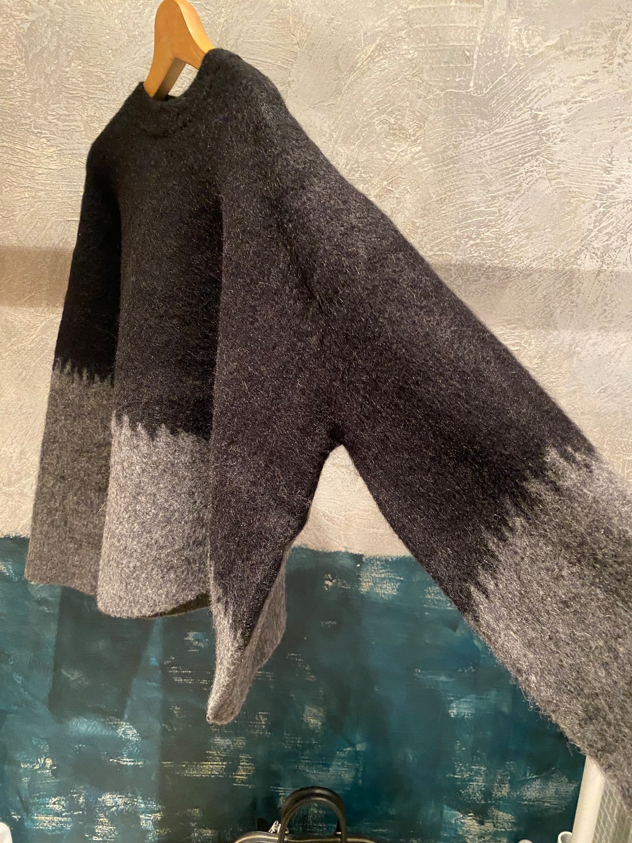 程よいオーバーシルエットのプルオーバーニット。2トーンカラーのデザインがポイント。サラッと着るだけで雰囲気が出ます。モヘア混の圧縮ウールで軽くてとても暖かいです♪