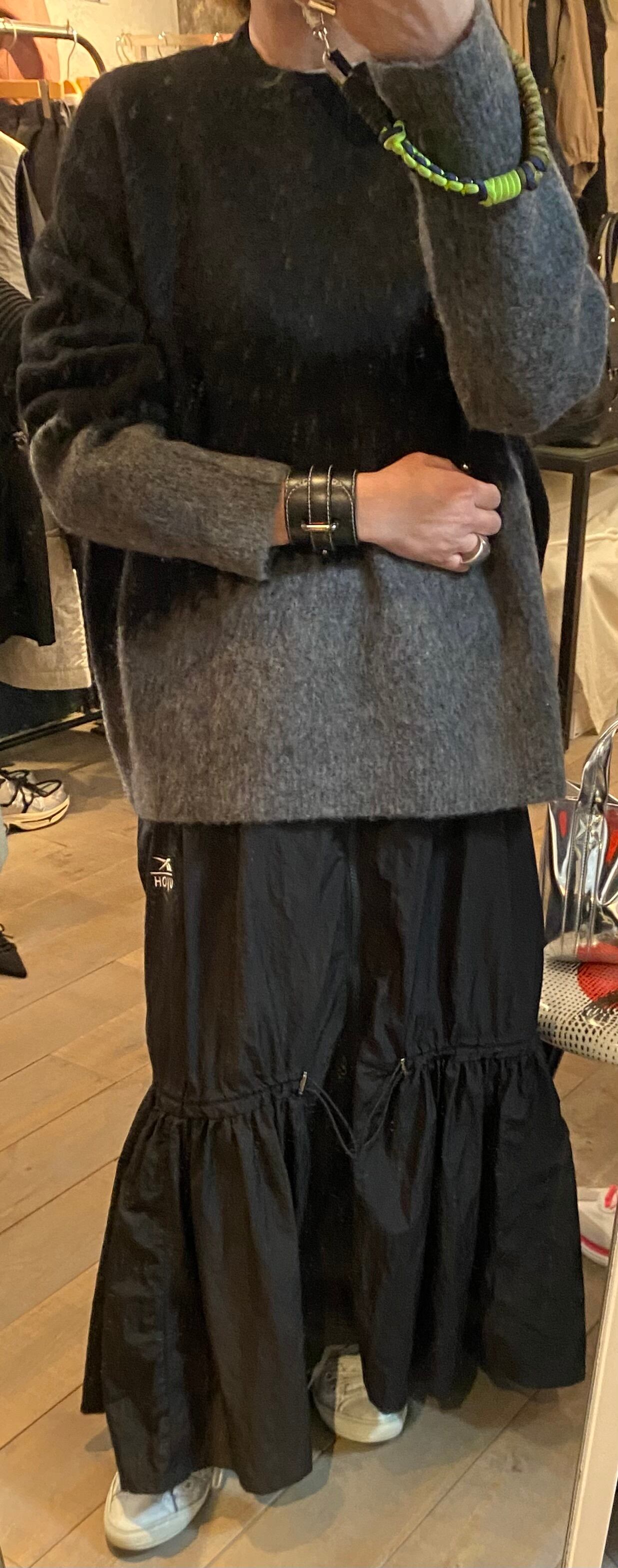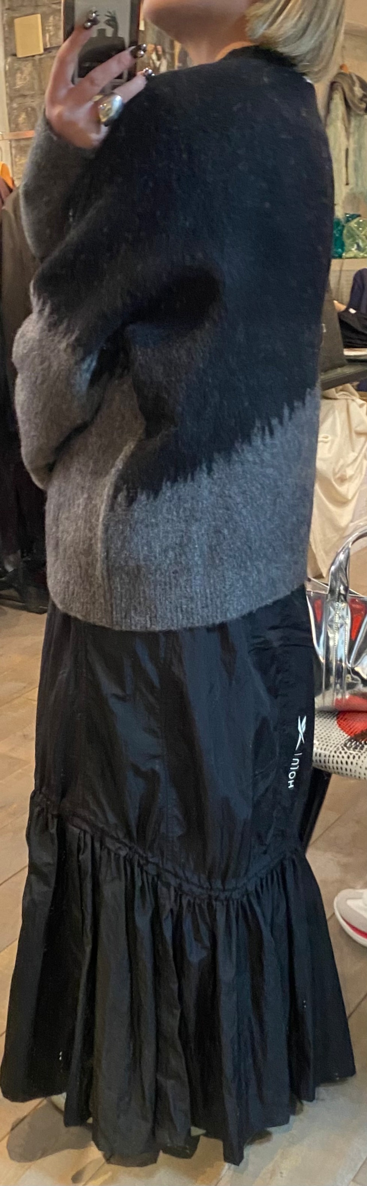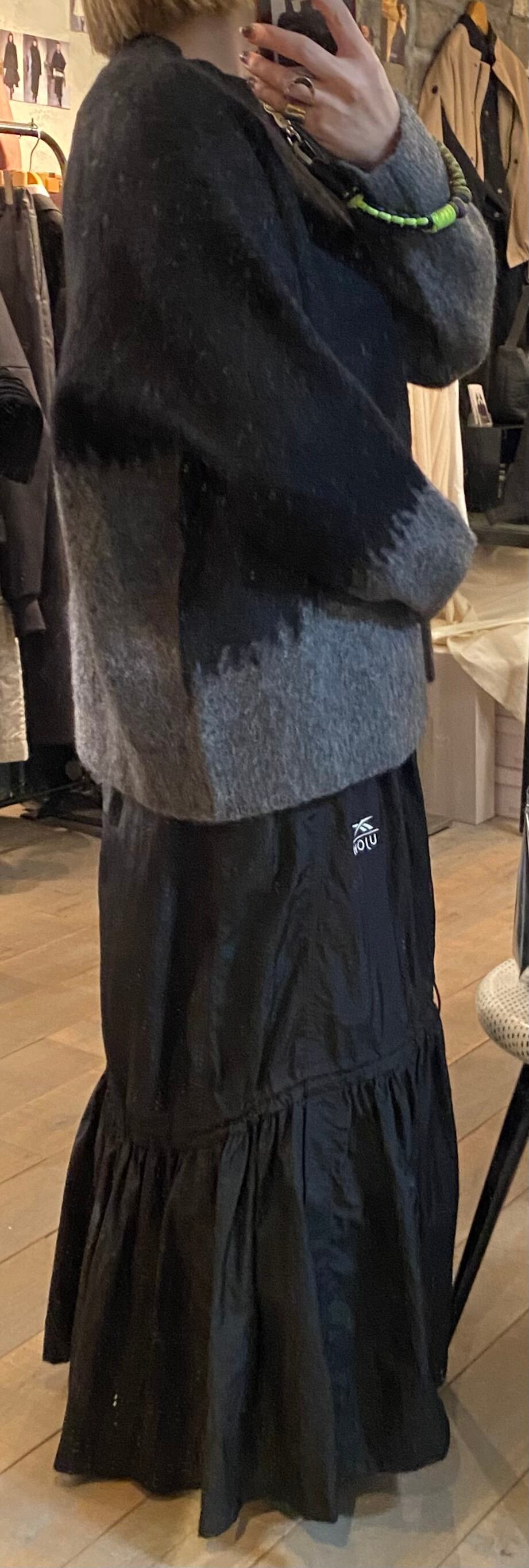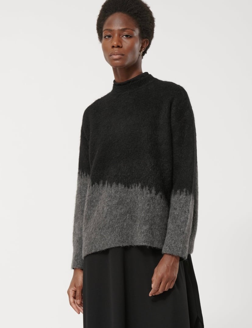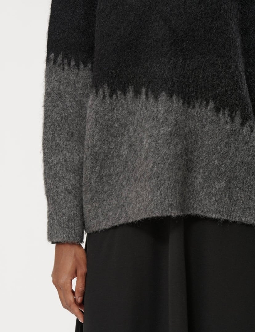程よいオーバーシルエットのプルオーバーニット。2トーンカラーのデザインがポイント。サラッと着るだけで雰囲気が出ます。モヘア混の圧縮ウールで軽くてとても暖かいです♪