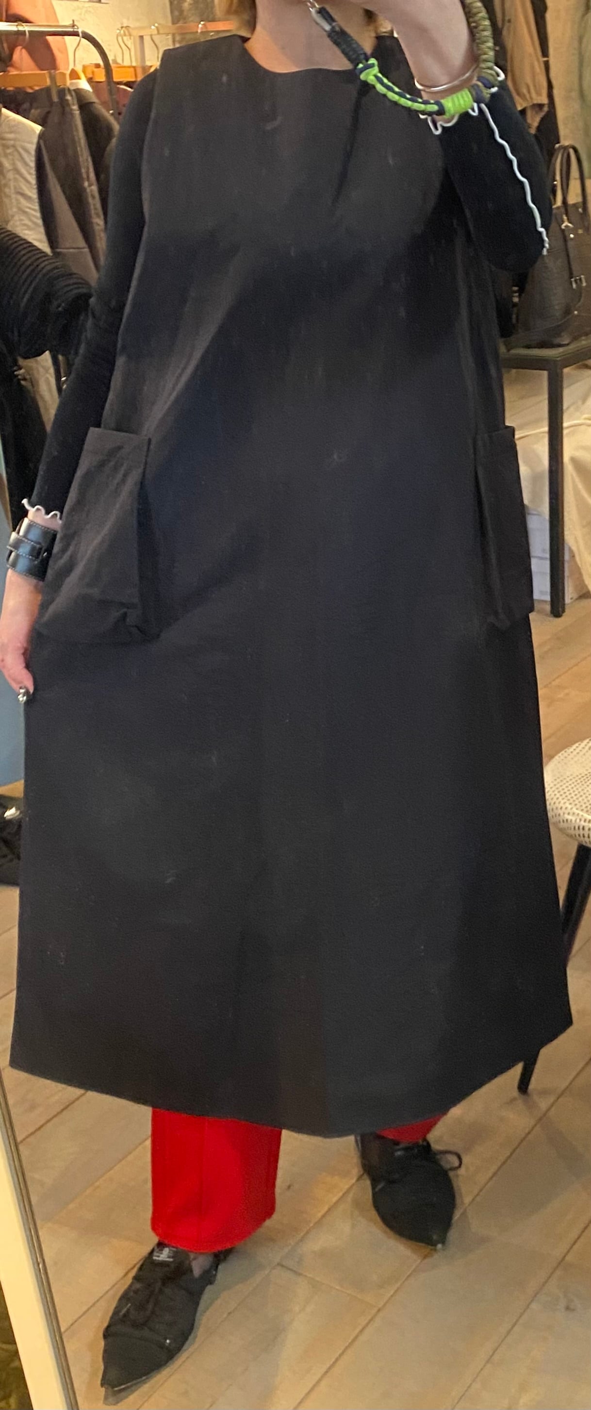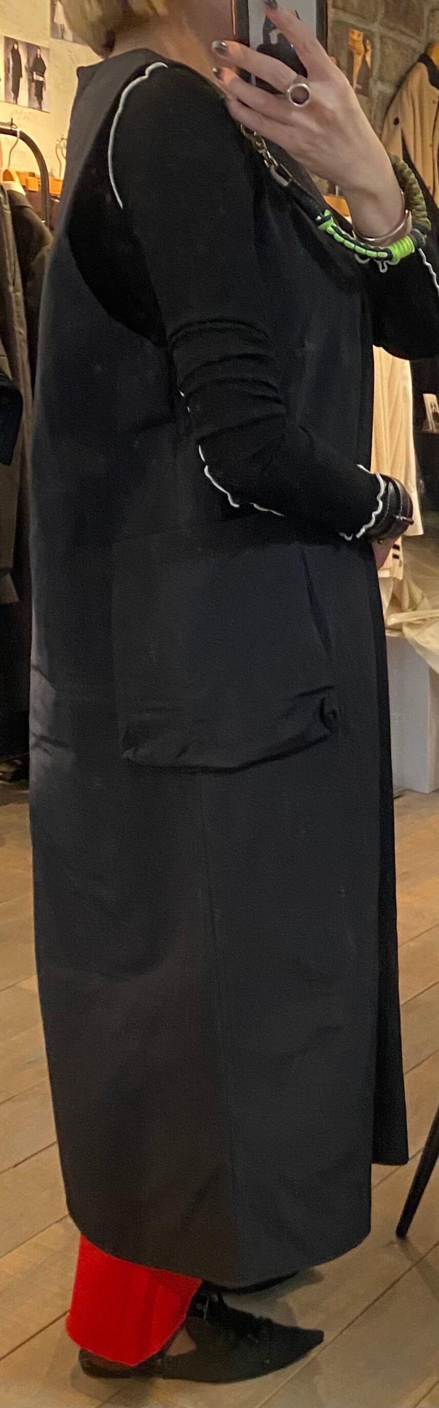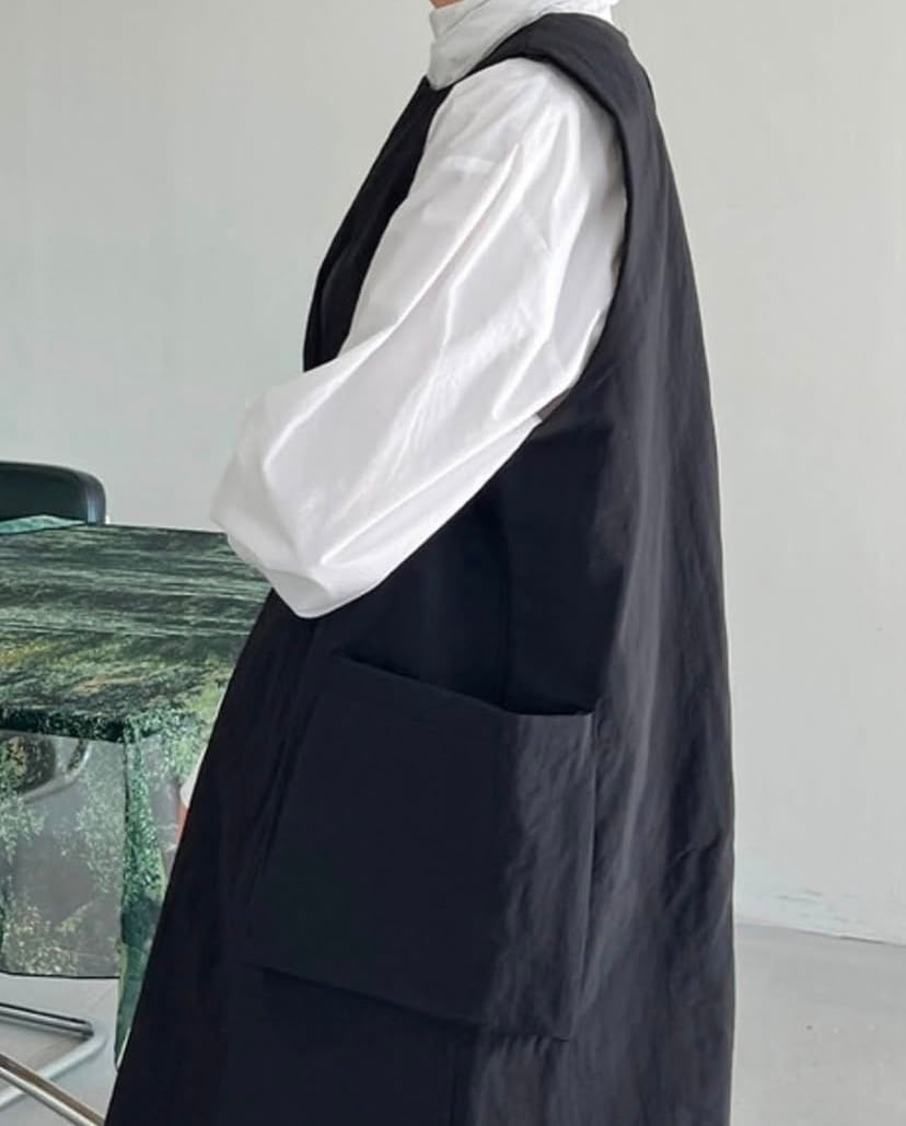 ボックスシルエットのポケットがポイントのワンピース。パデットワンピースで、軽くて保温性もあり暖かく、これからの季節に◎シンプルなデザインにまとめてあるのであらゆるインナーとレイヤードを楽しめます。身長のある方はパンツとのレイヤードも◎