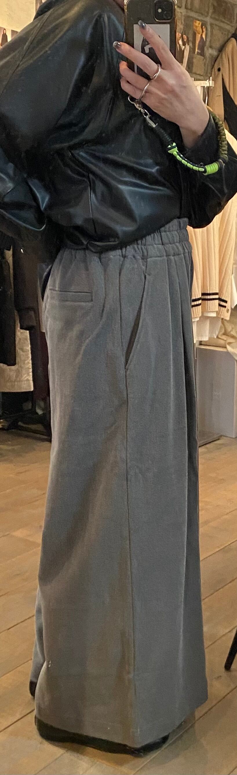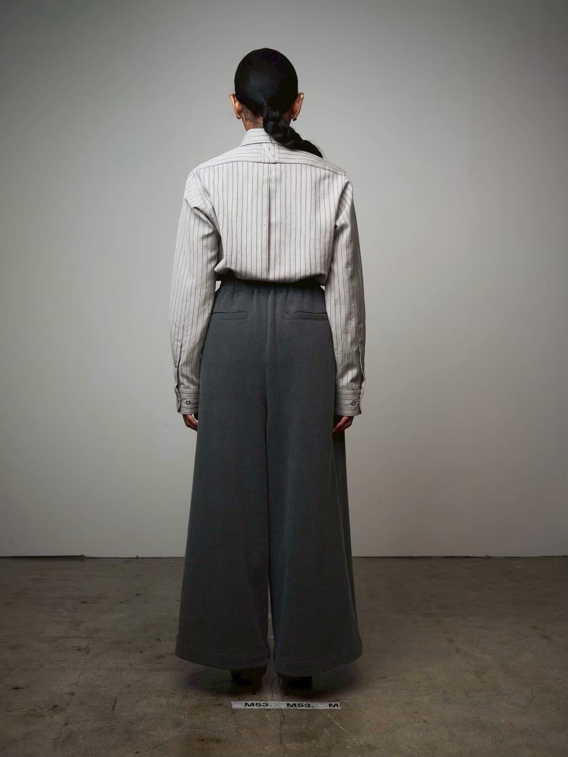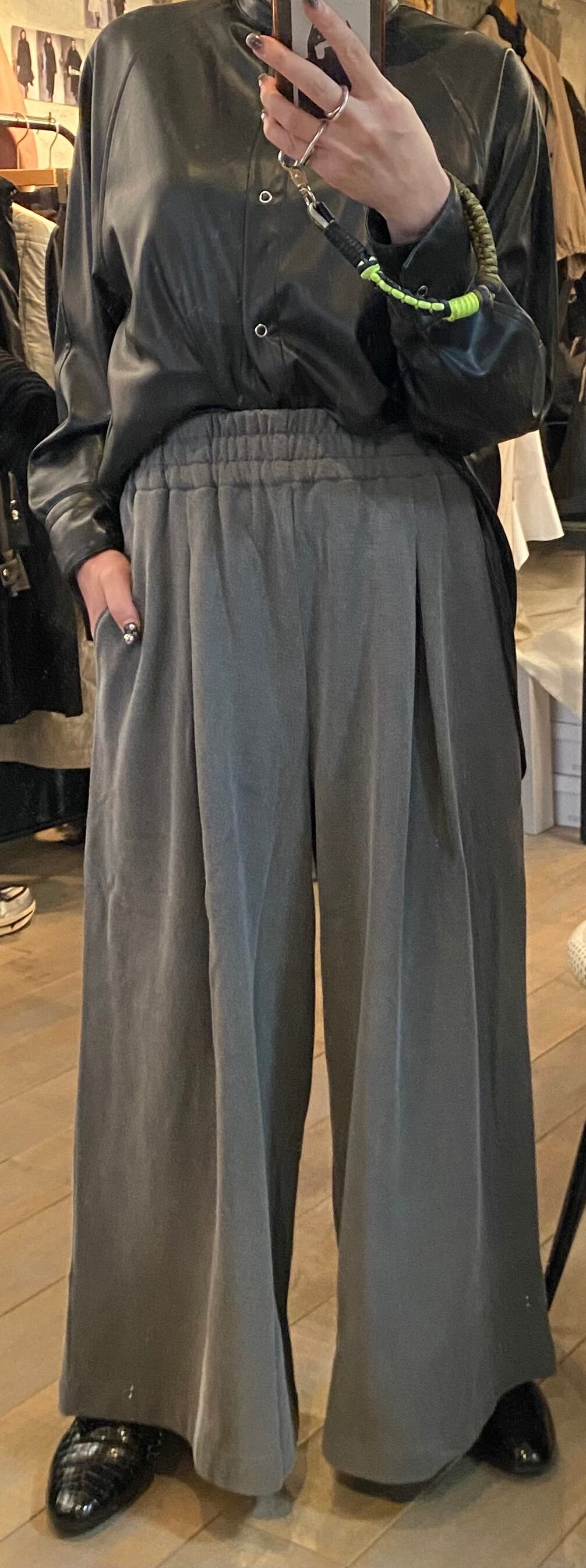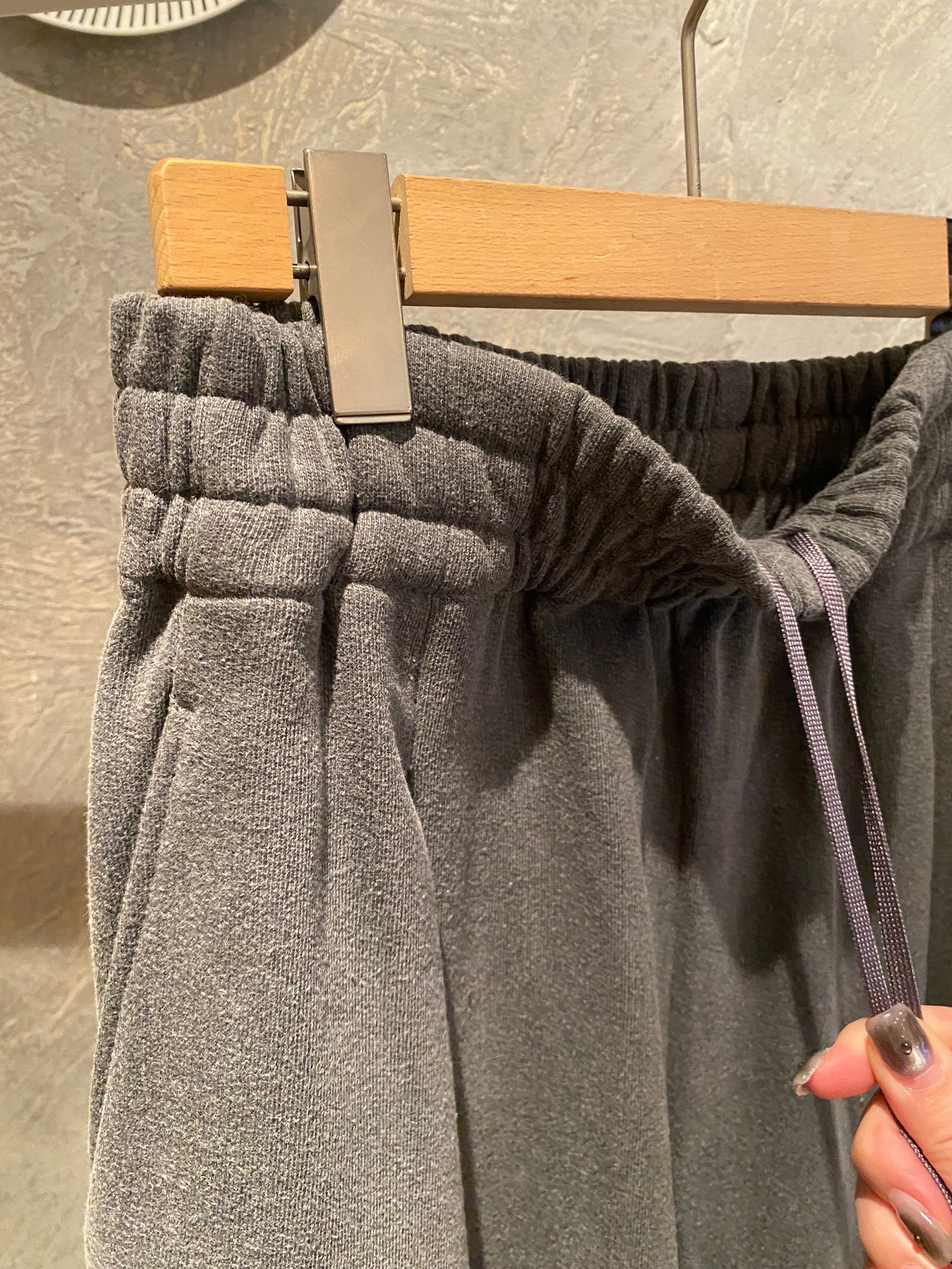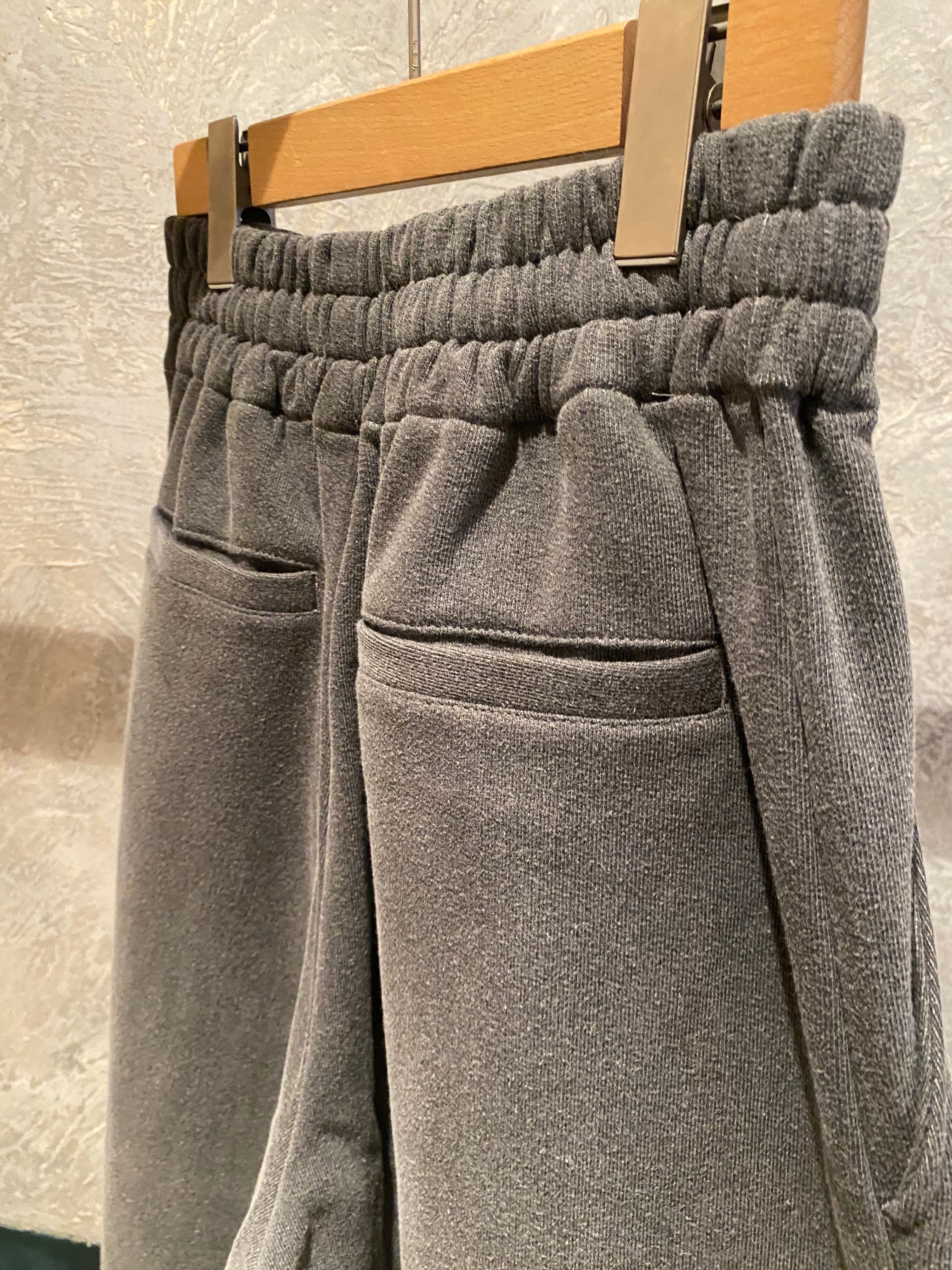 バギーパンツ。裏毛のスウェット素材ながらオチ感もありシルエットによりキレイめな雰囲気も出してくれるパンツ。女性らしさもプラスされ、カジュアルでもキレイめにも対応。従来の裏毛のスウェットとは別にビンテージ裏毛を採用。