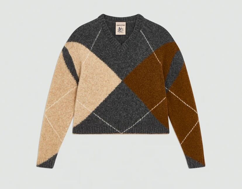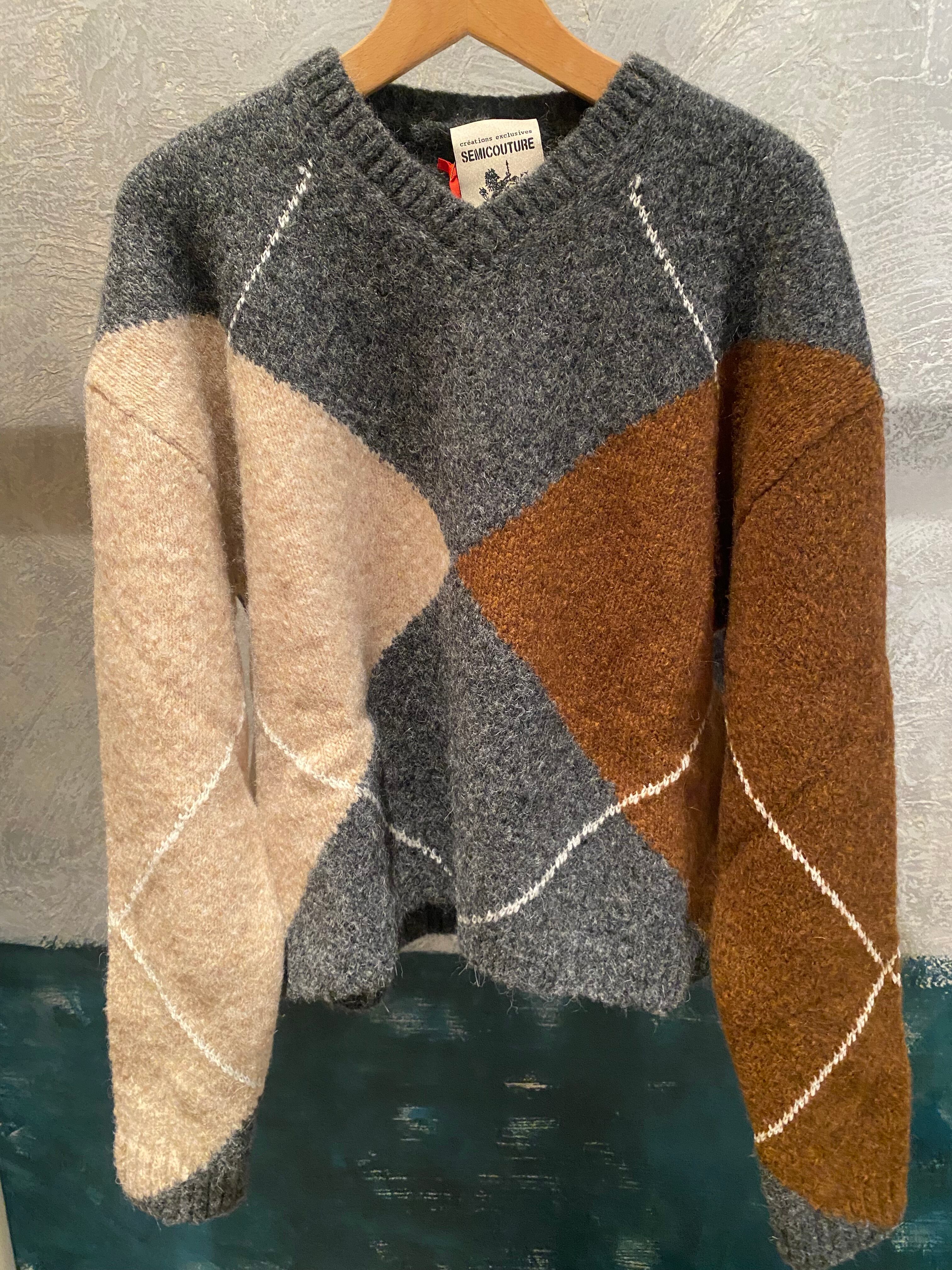 【SEMICOUTURE】argyle pullover knit