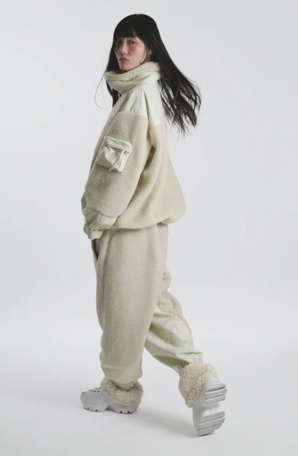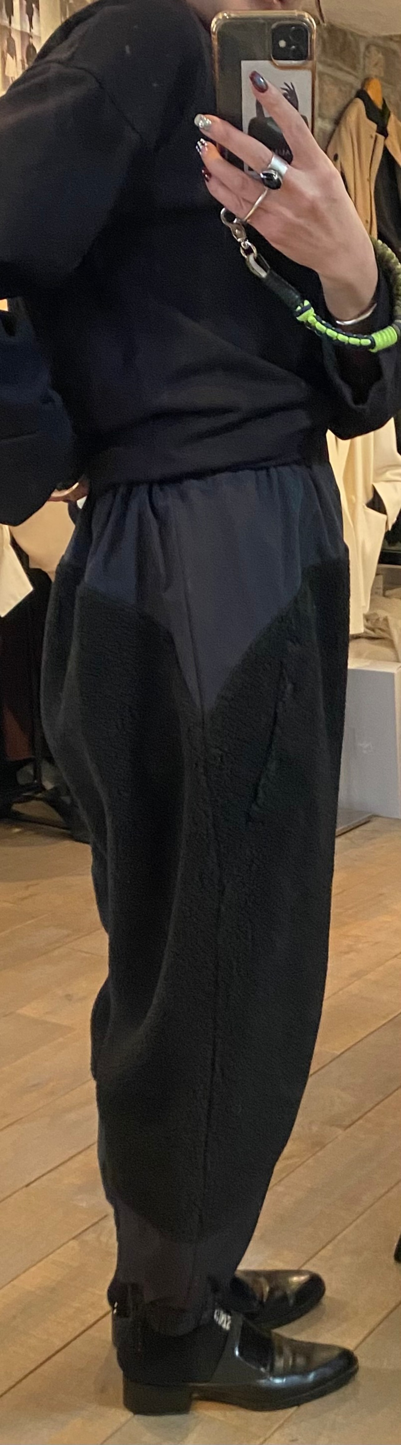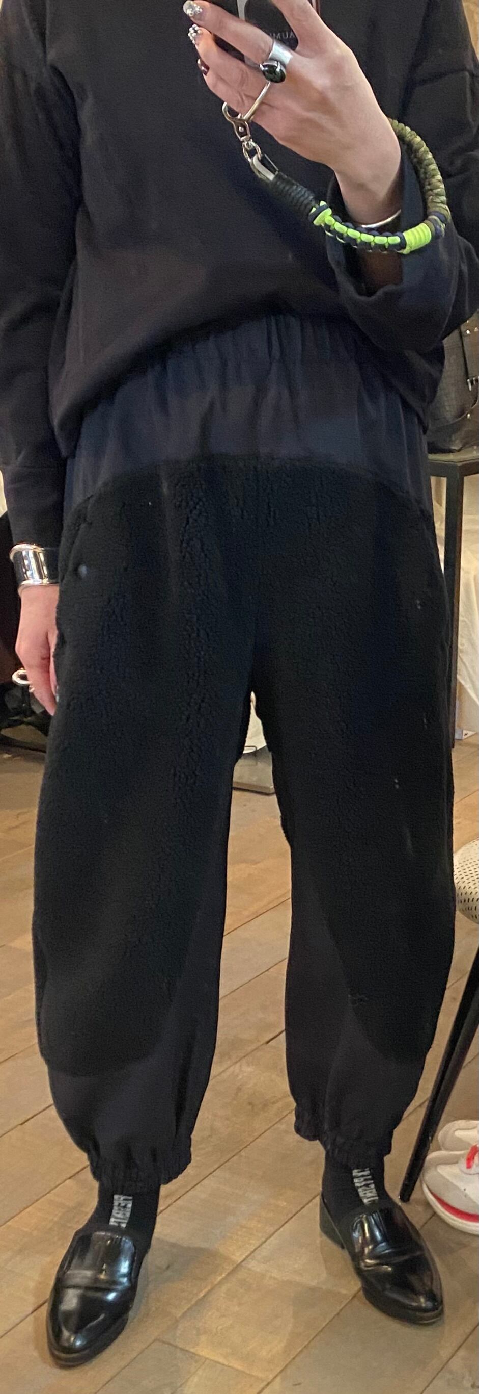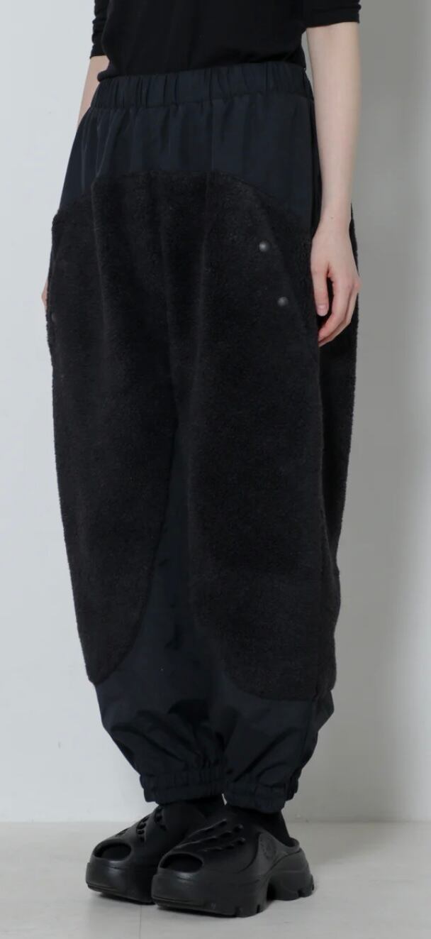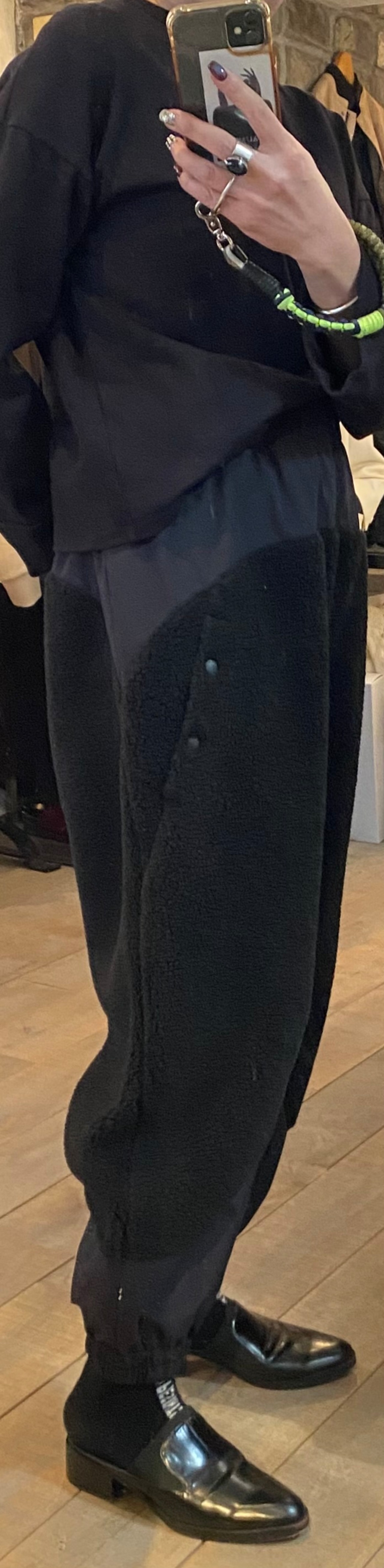 ボリュームのあるボア部分を中心に配置し、ウエスト部分と裾部分はスッキリと着用できるようにナイロン素材を使用しています。冬には手放せないパンツとしてオススメです。