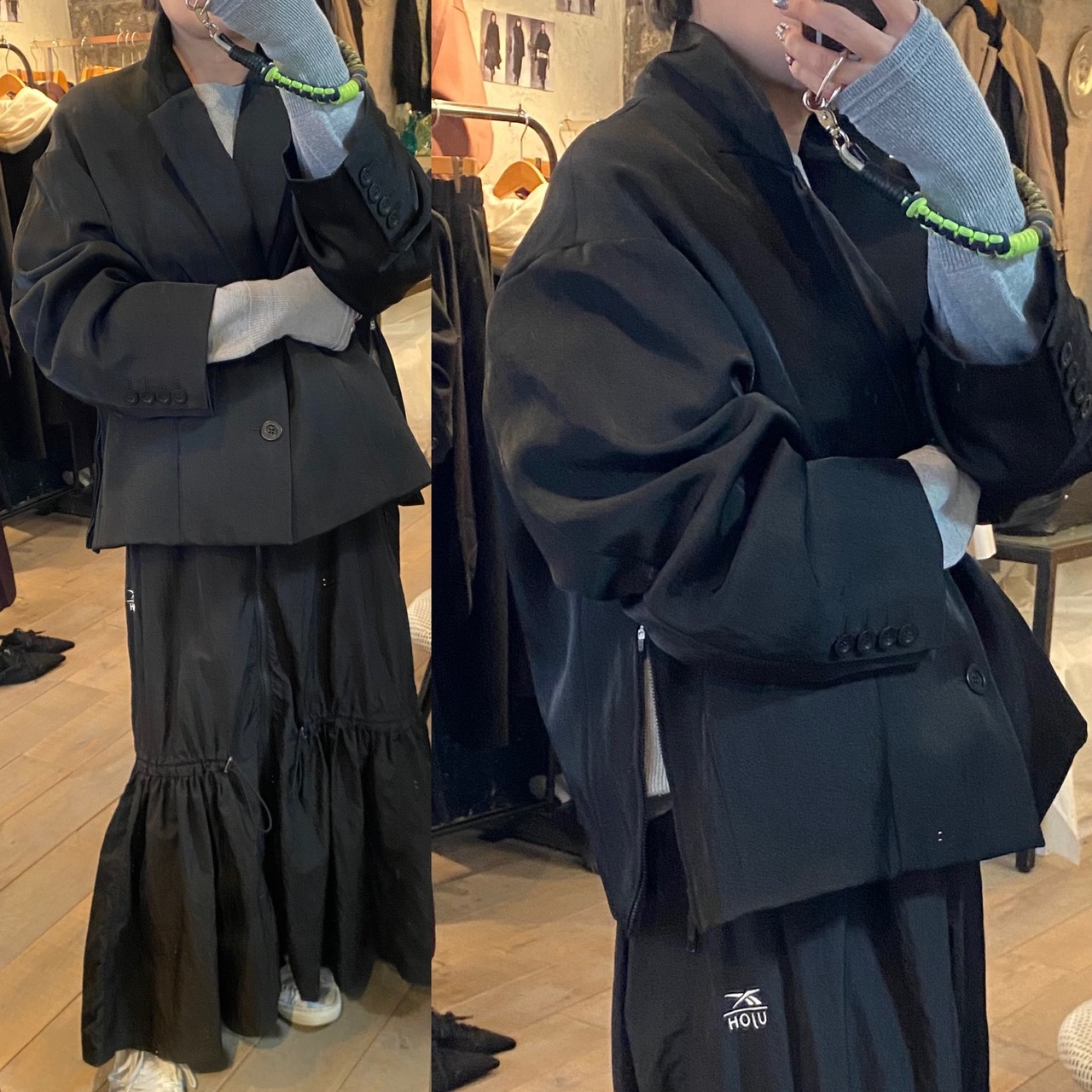 ロングシーズン着回せるテーラードブルゾン。インナーはカットソーから、肉厚のニットやパーカーなどまでかなり下にも着込んで頂けますので、ショートコートとしても活躍。両サイドにはファスナーデザインが施されていて、お好きな場所まで開けてもらいシルエットを変えたり、インナーを見せたりして頂けます。