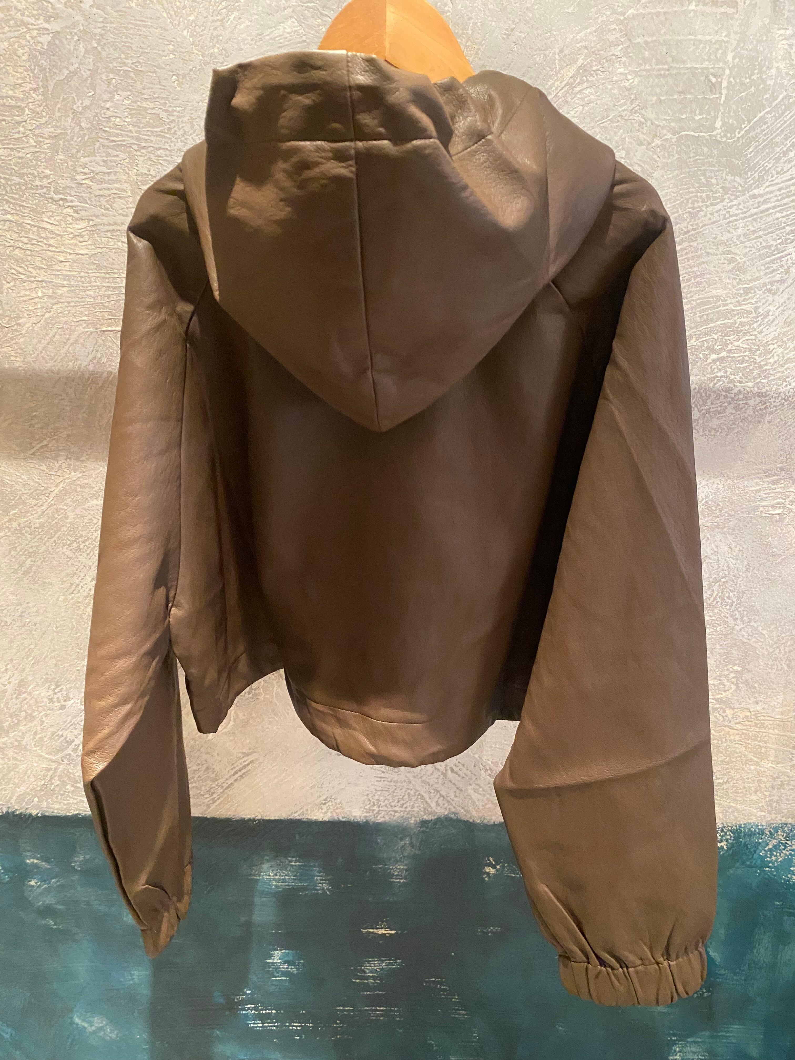 【ekat】fake leather cropped hoodie