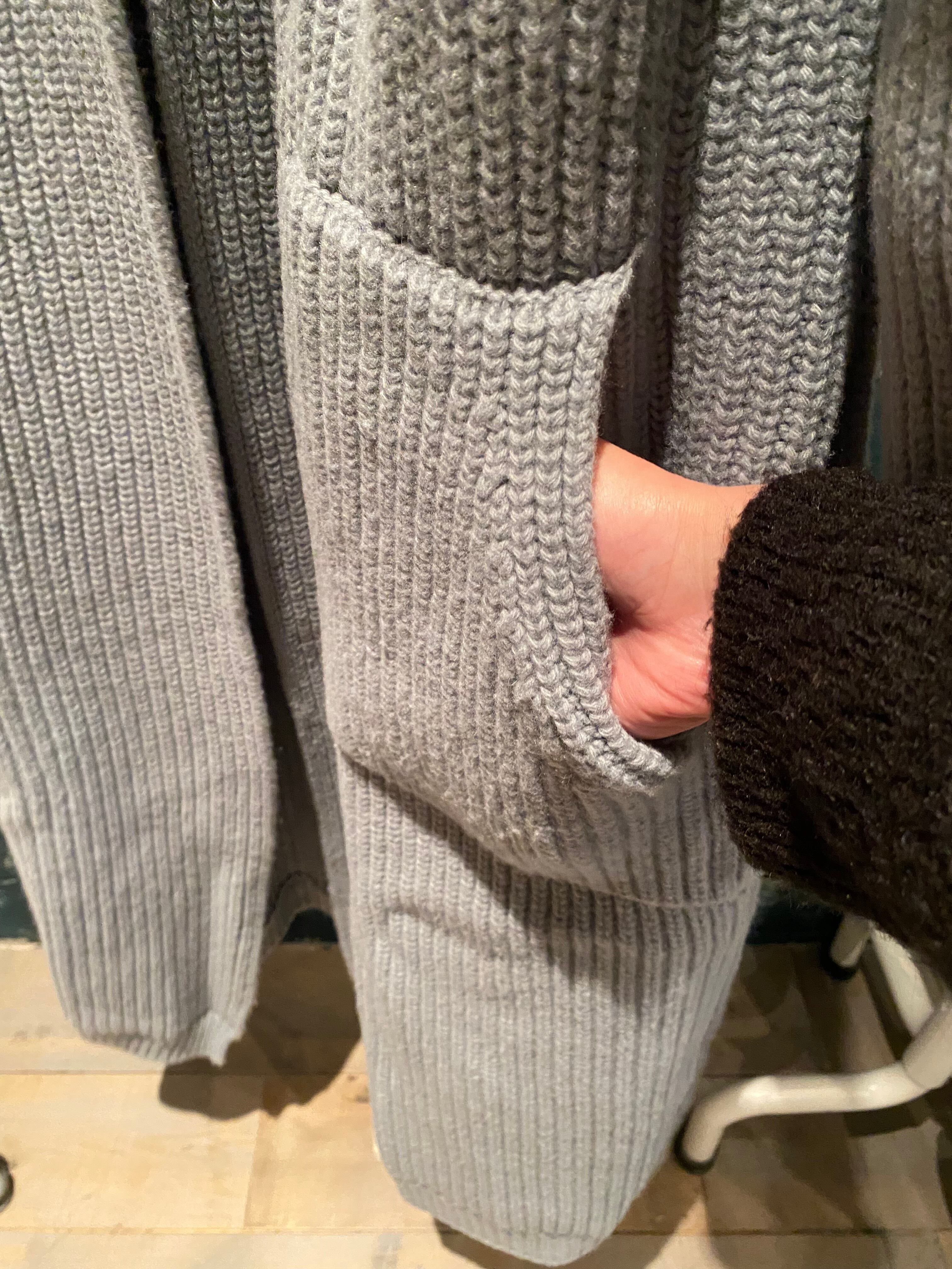 上品なカラーで、シンプルなシルエットで飽きのこないデザイン。両側ポケット有り。