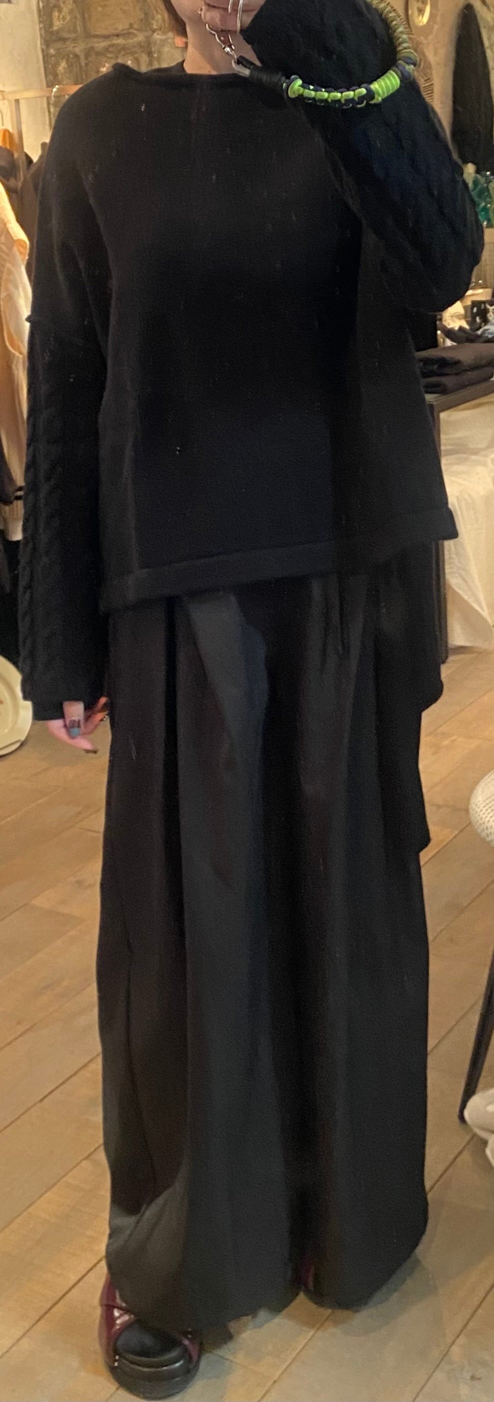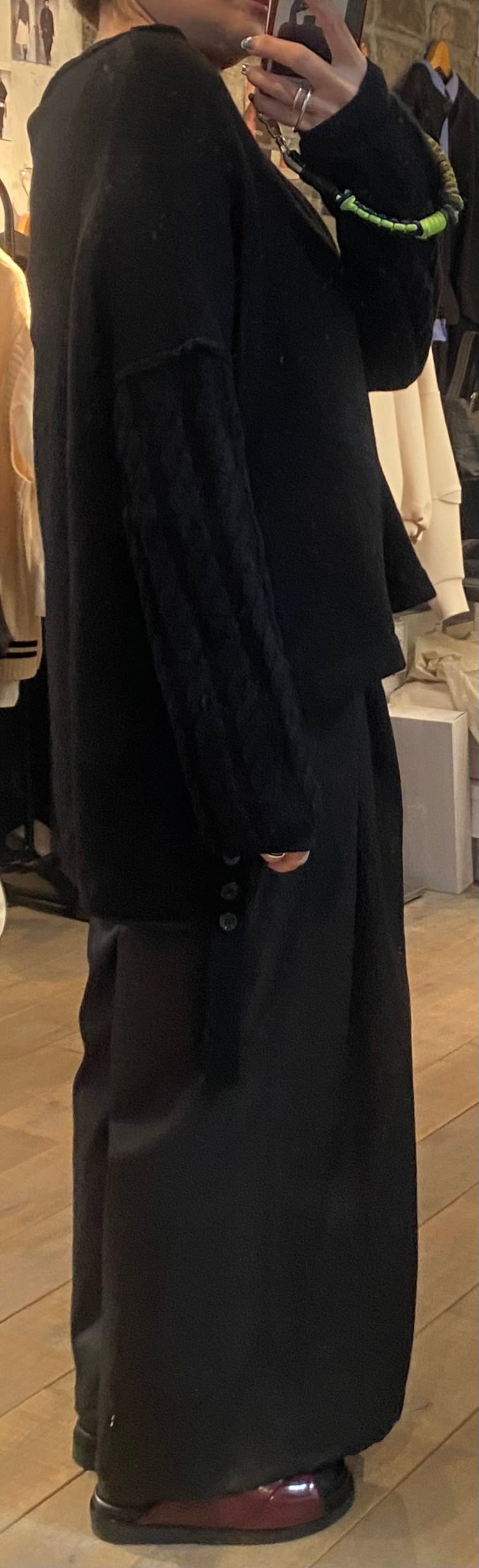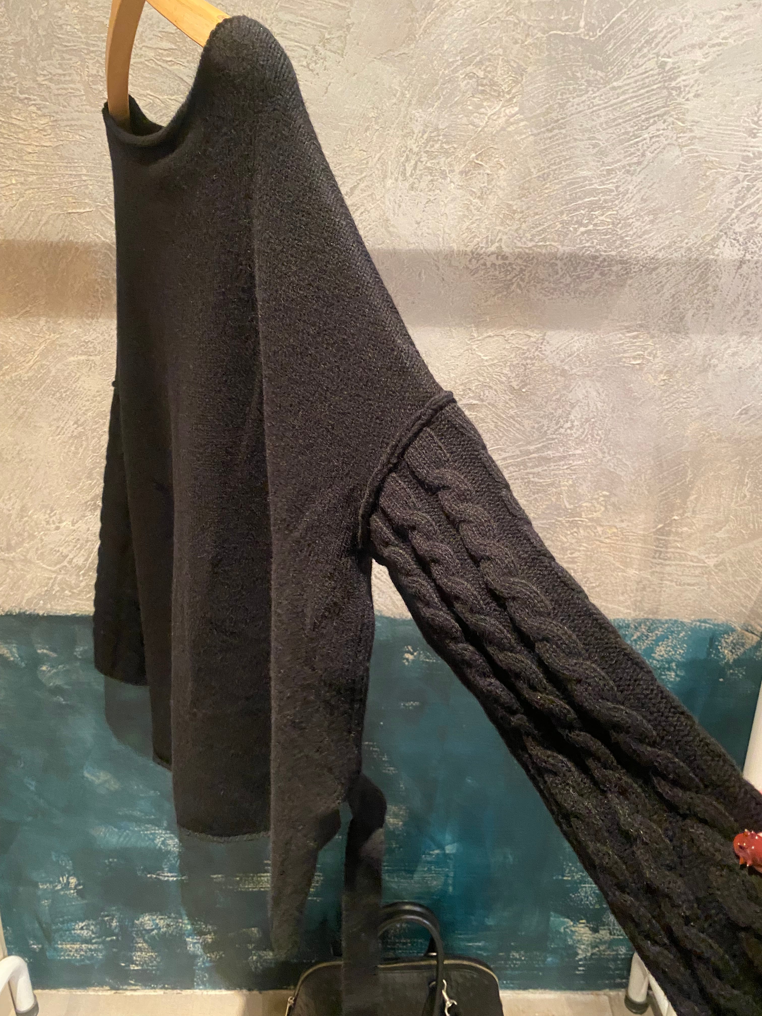オーバーシルエットのプルオーバーニット。お袖と見頃部分の編み方の違いがポイント。サラッと着るだけで雰囲気が出るニット。あらゆるボトムとのバランスも取りやすくヘビロテアイテムです♪