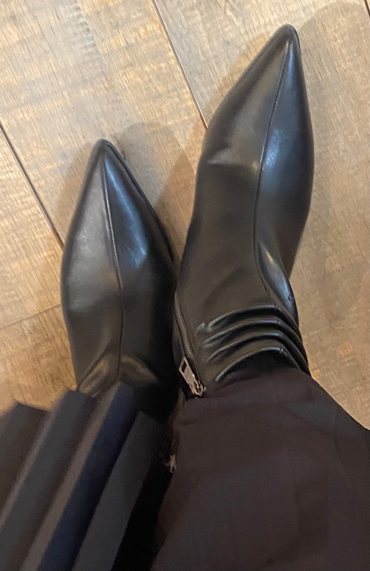 サイドファスナー開きのブーティー。クシュっとした履き口が特徴的なデザイン。ヒールですが安定感もあり履きやすいです。とても軽量で柔らかい質感なのでとても履き心地が良いです。ブランドロゴなどもポイントに♪少々ヒールはありますが、頑張らずに履ける楽チンブーティーです♪