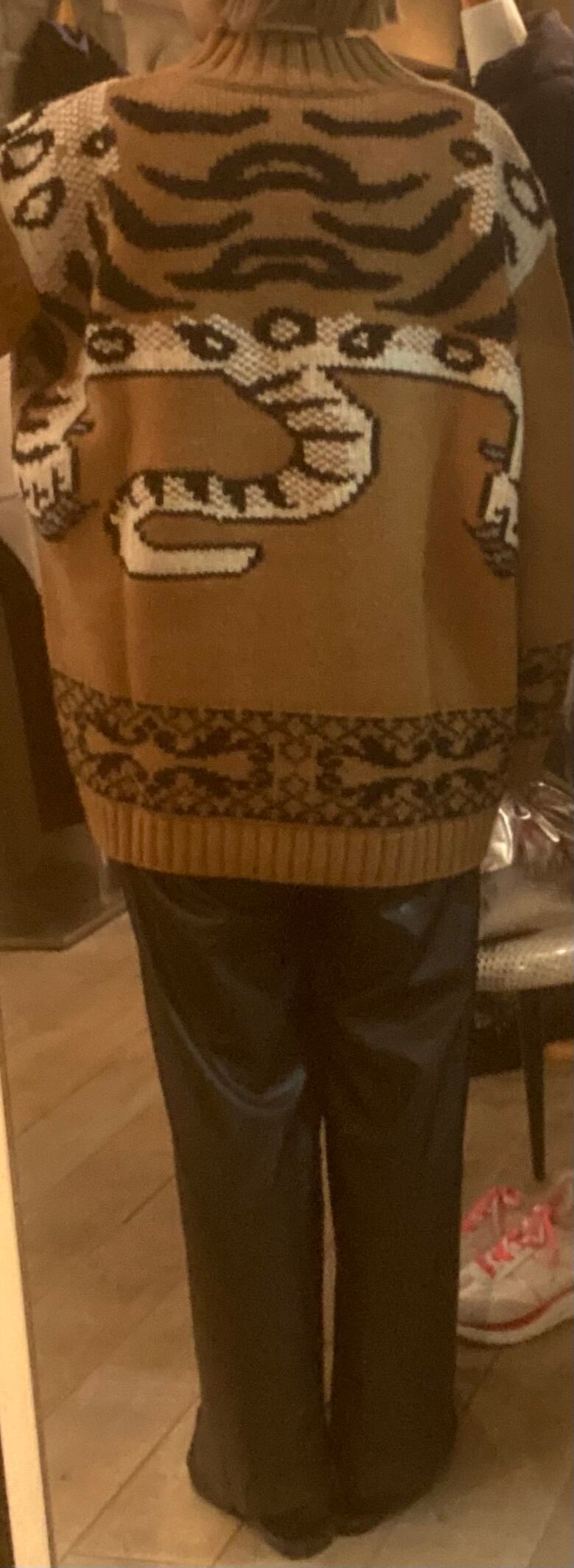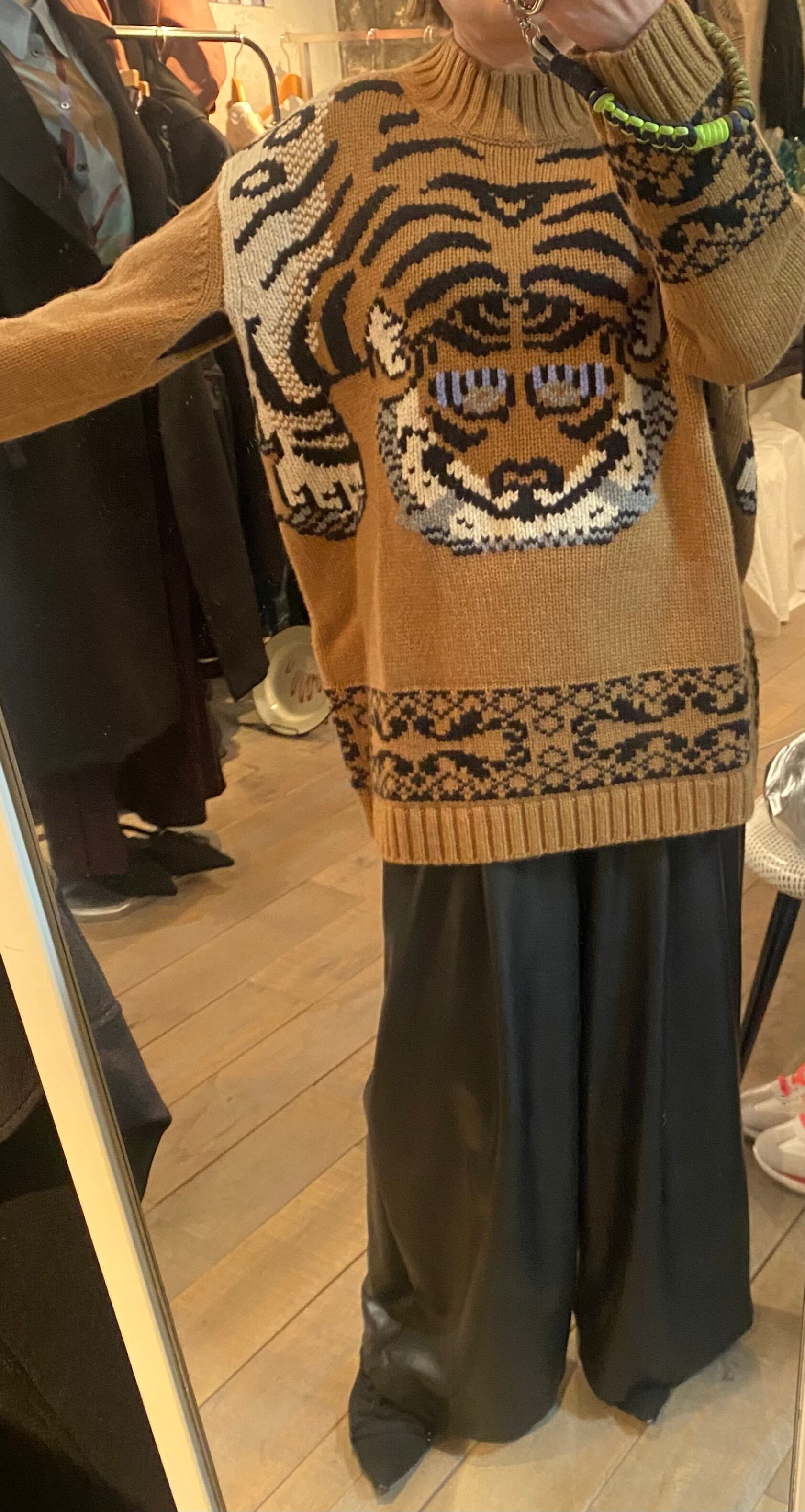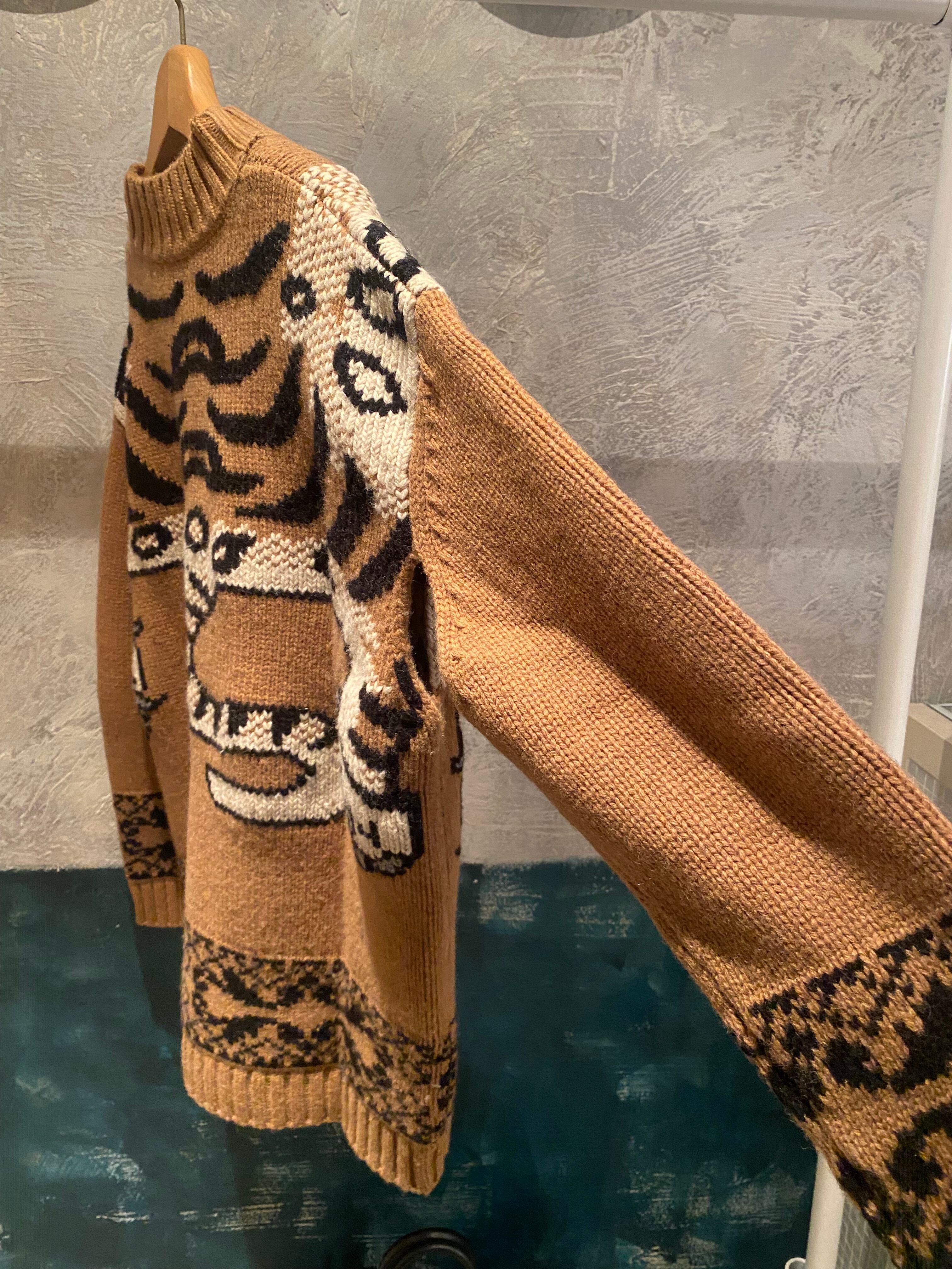 両面こだわりのある柄のスペシャルなニット。シンプルに着用するだけでスタイリングが完結します♪インパクトのあるアニマル柄ですが上品な印象も兼ね備えています。オーバーシルエットですが重さも無く着心地も◎