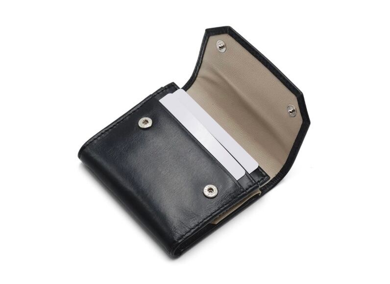 上質なスムースレザーを採用し、コシのある質感で使うごとに手に馴染んでいきます。内張にはヤギ革を採用し、高級感のある仕様になっています。お札、小銭、カードとそれぞれの収納スペースを確保し、コンパクトながら機能的です。