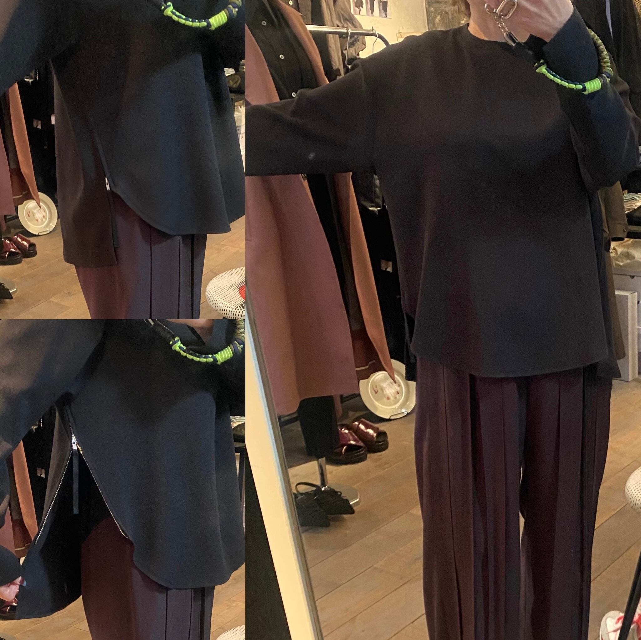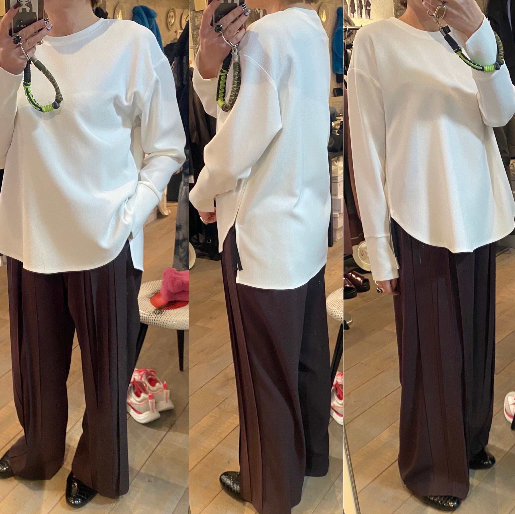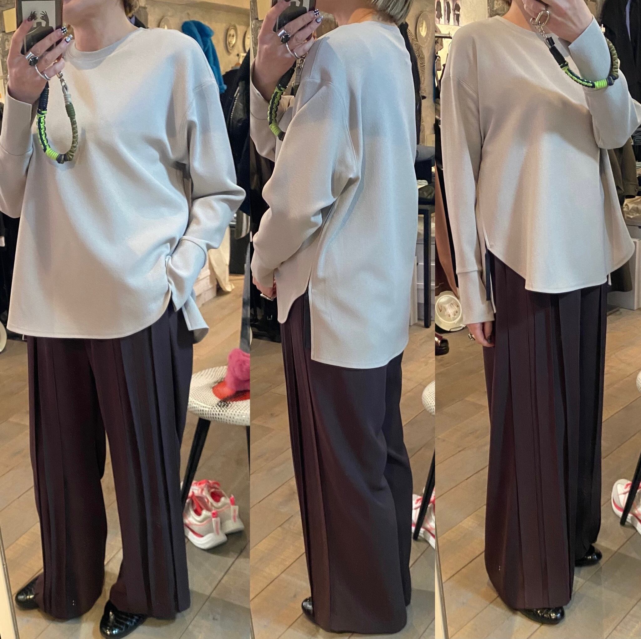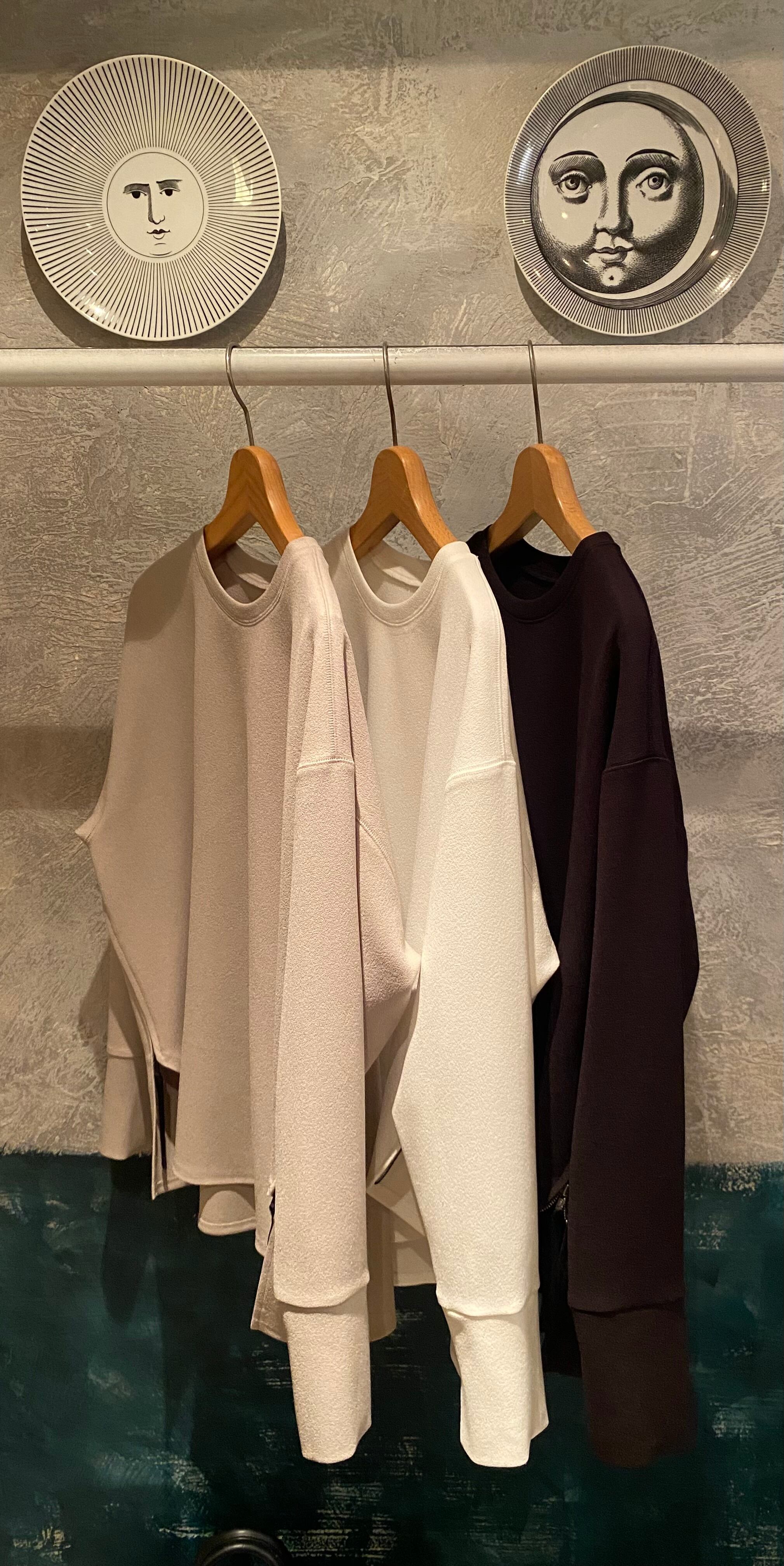 サラッとした着心地。サイドのジップデザインがポイントで、お好みでスリットとして開けて頂けるデザイン。体のラインも拾わず、合わせるボトムスも選ばないのでどなたでも着回せるヘビロテアイテムです♪Tシャツよりキレイめ見えするのも嬉しいところ。