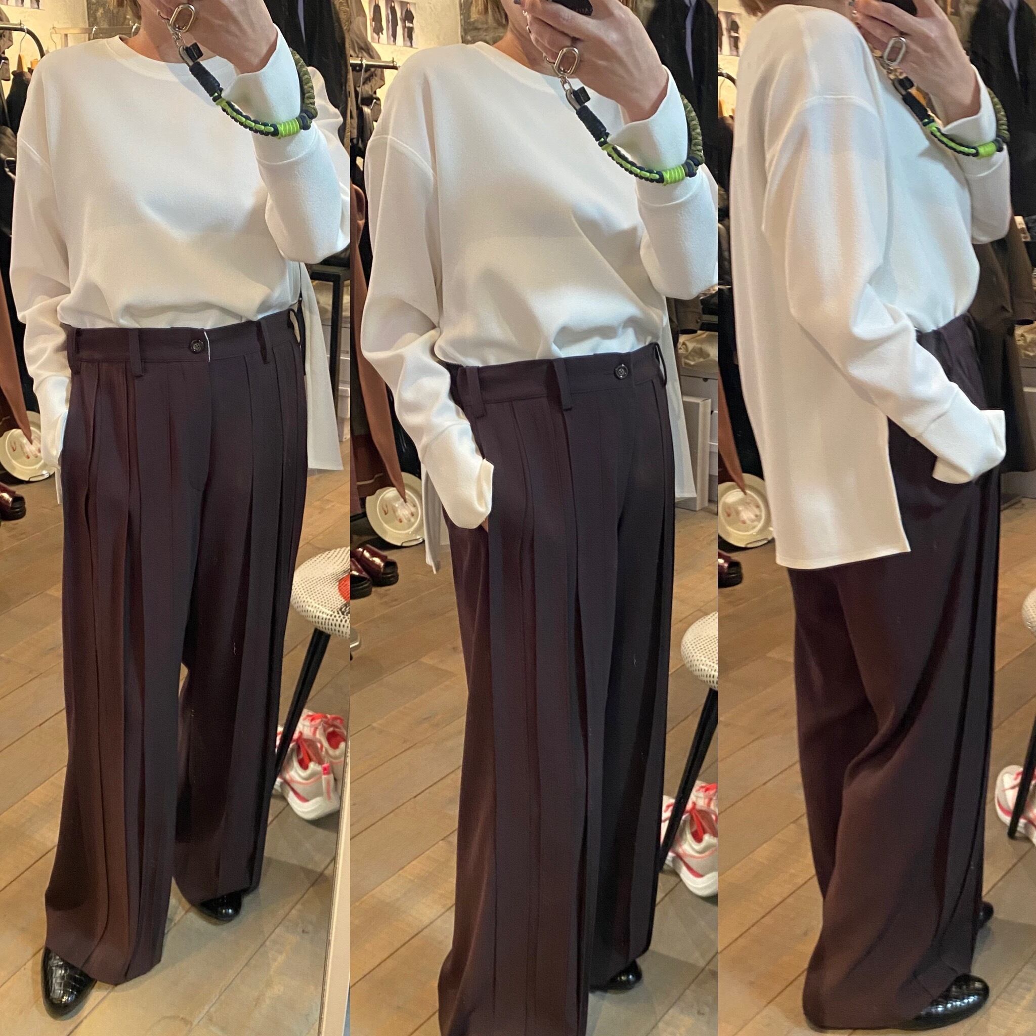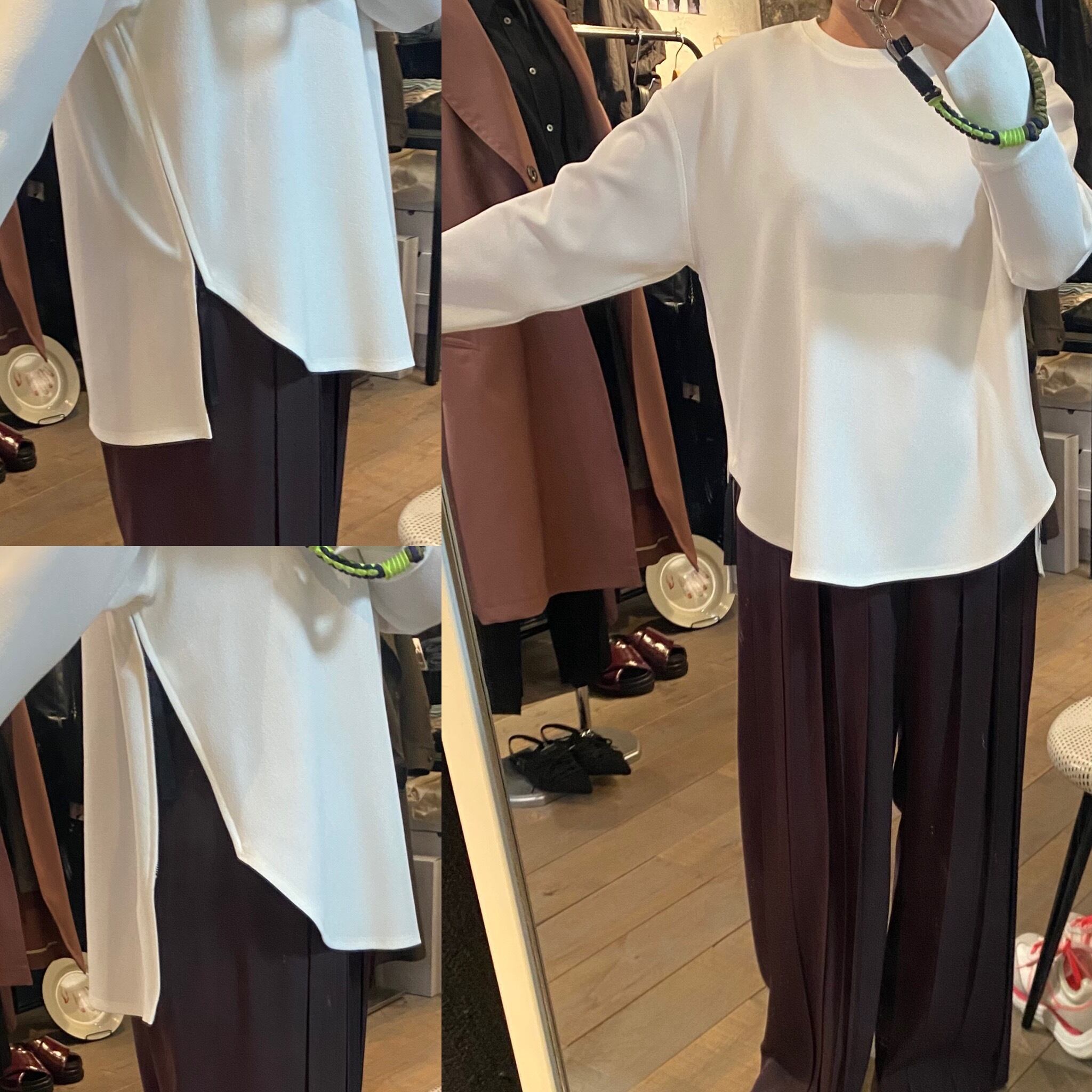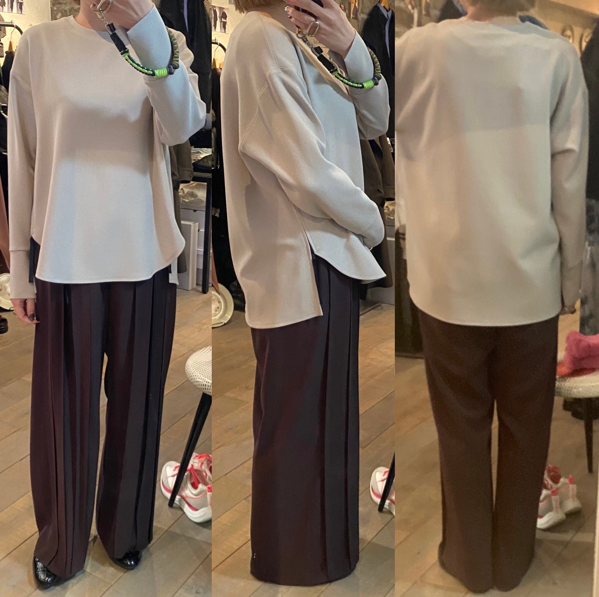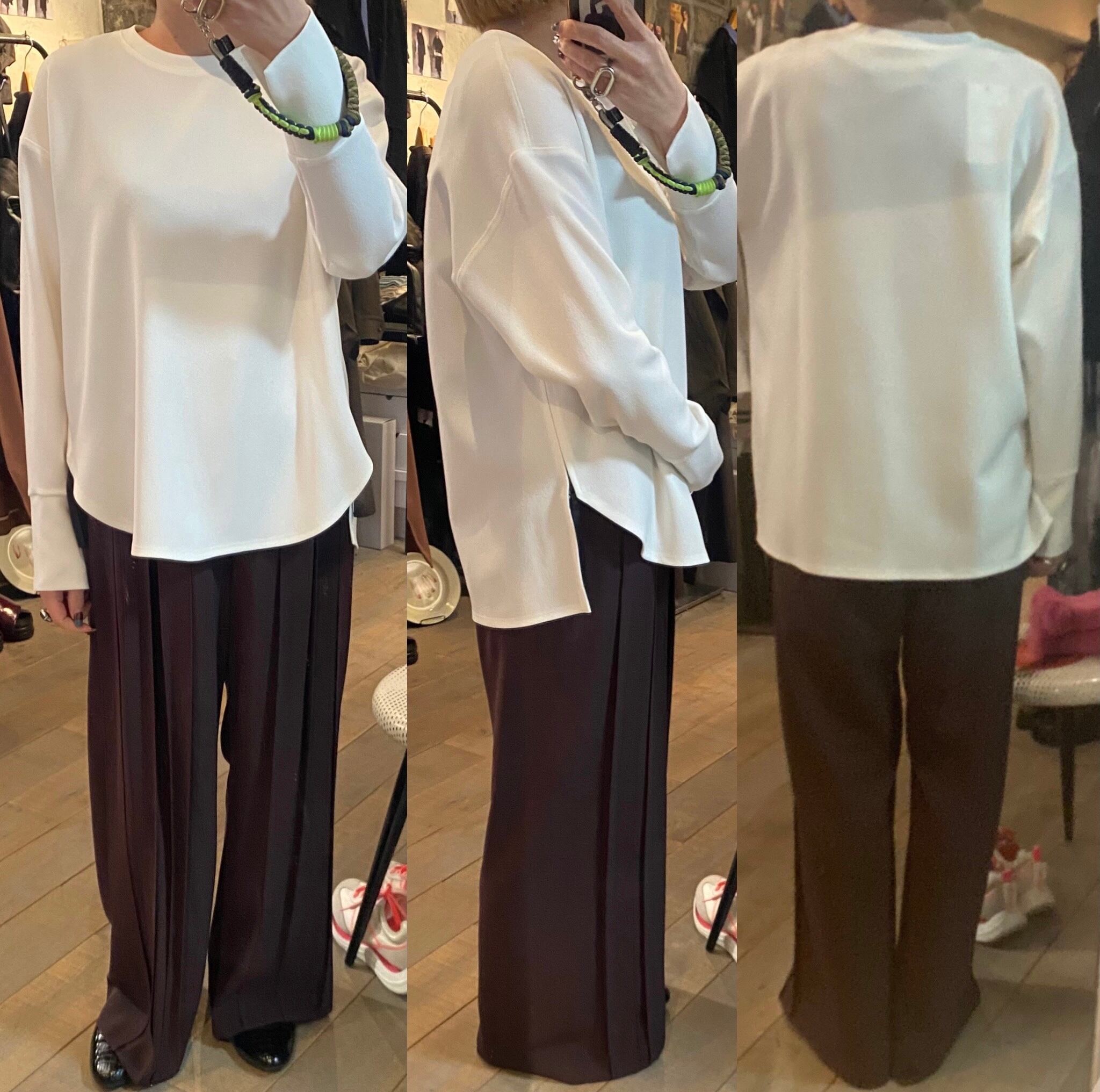 サラッとした着心地。サイドのジップデザインがポイントで、お好みでスリットとして開けて頂けるデザイン。体のラインも拾わず、合わせるボトムスも選ばないのでどなたでも着回せるヘビロテアイテムです♪Tシャツよりキレイめ見えするのも嬉しいところ。