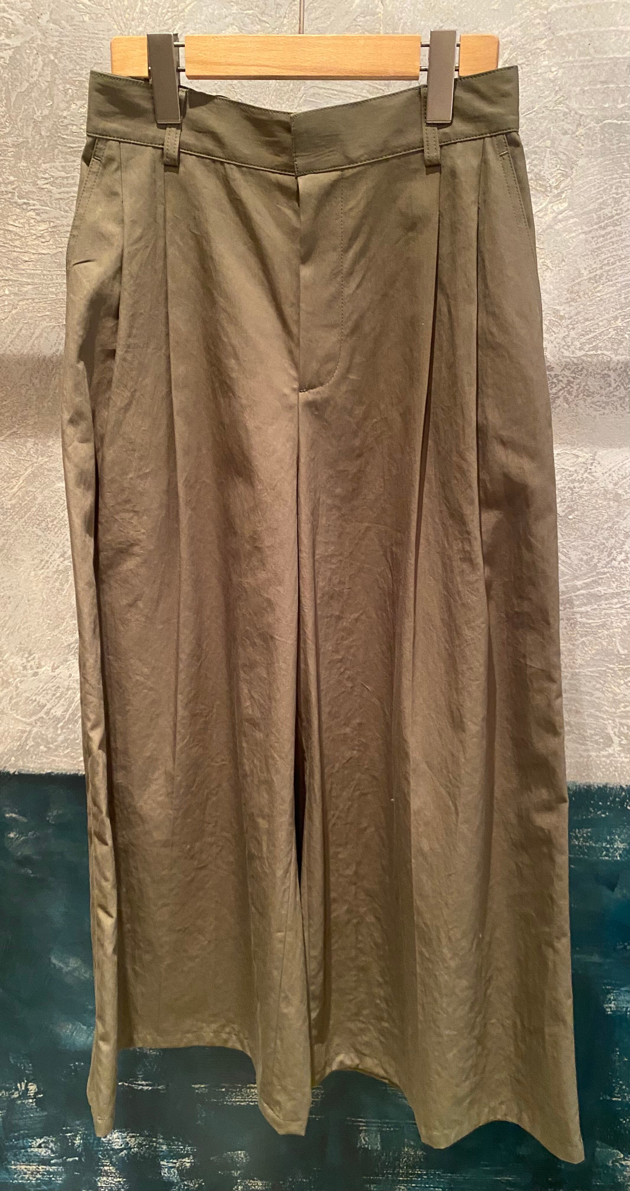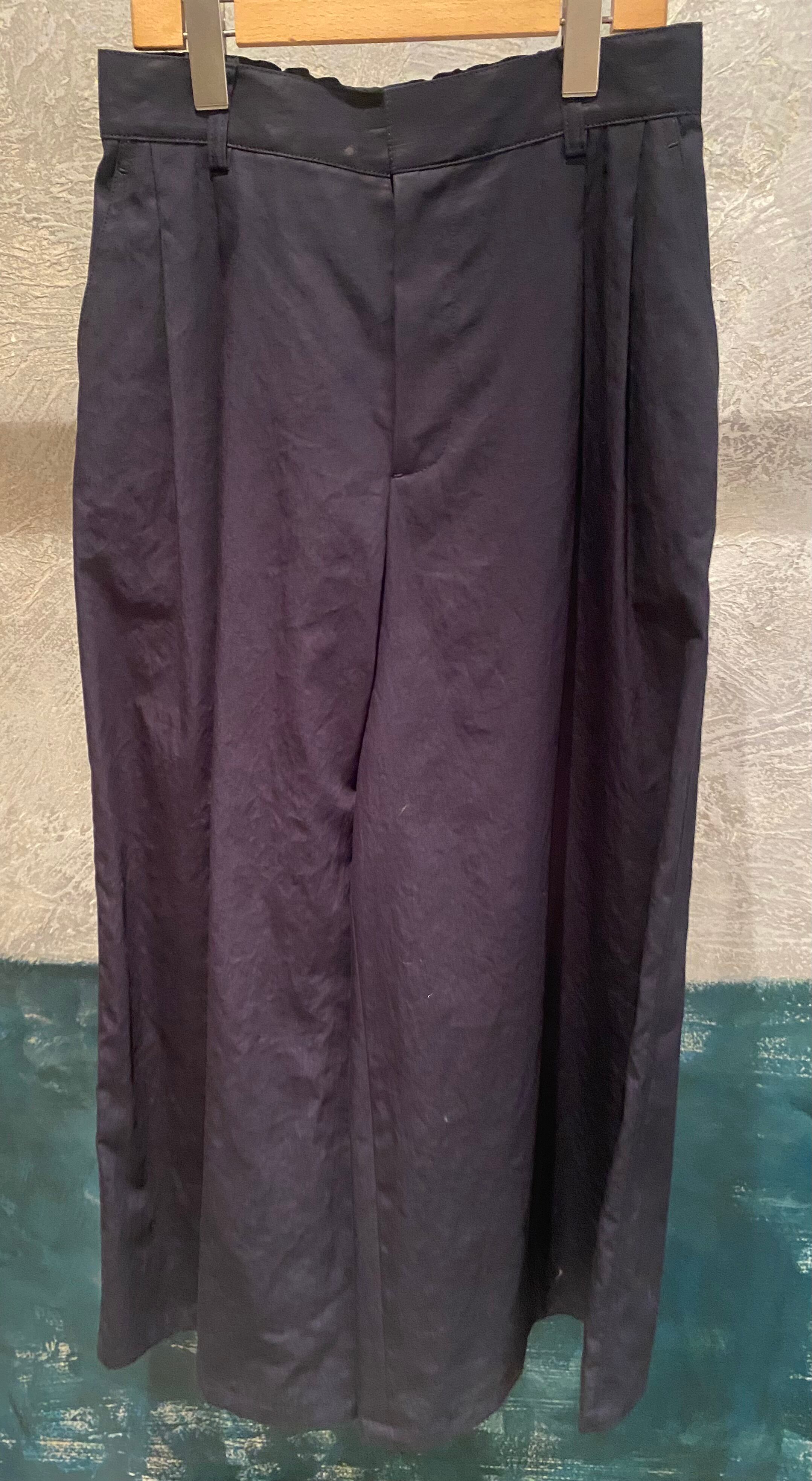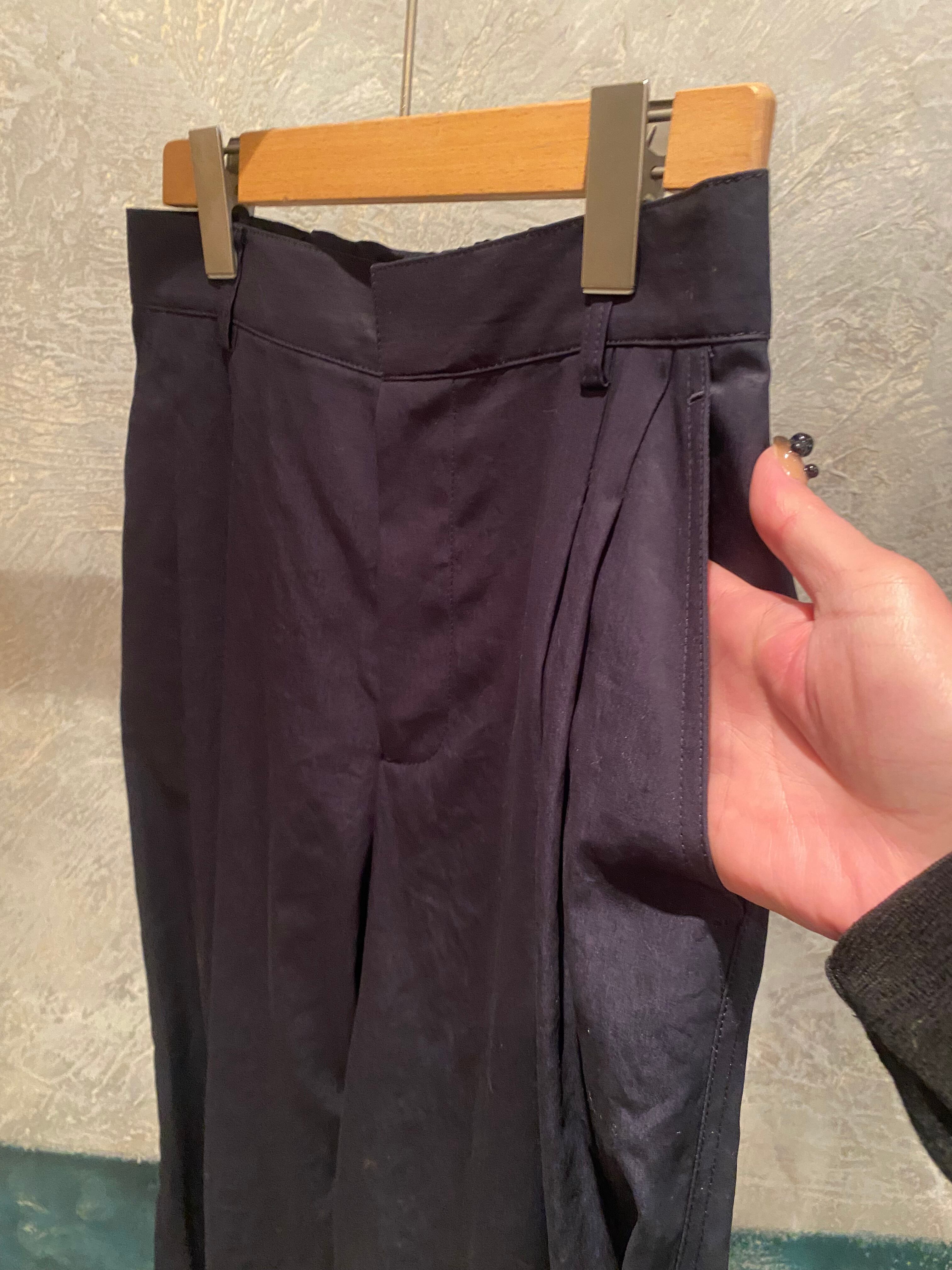 タックの入ったワイドパンツ。ボリュームが出過ぎずスッキリ履いて頂けます♪シンプルなトップスとのレイヤードでも存在感のあるパンツで、春夏のシンプルなコーディネートにも映えます♪