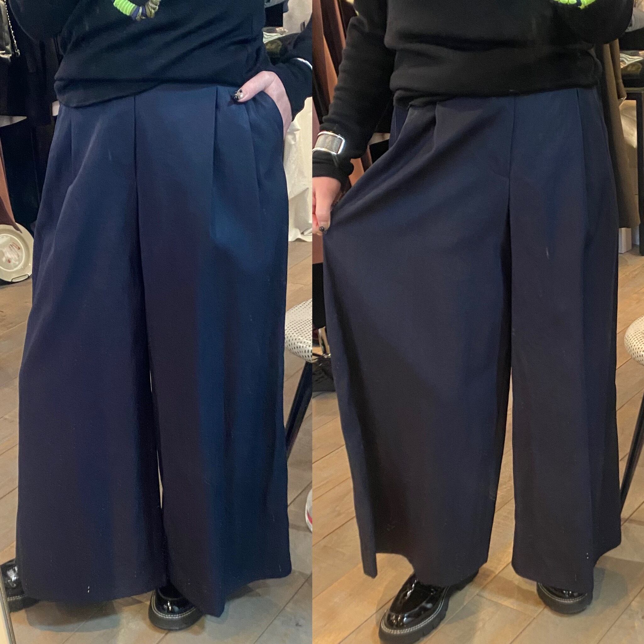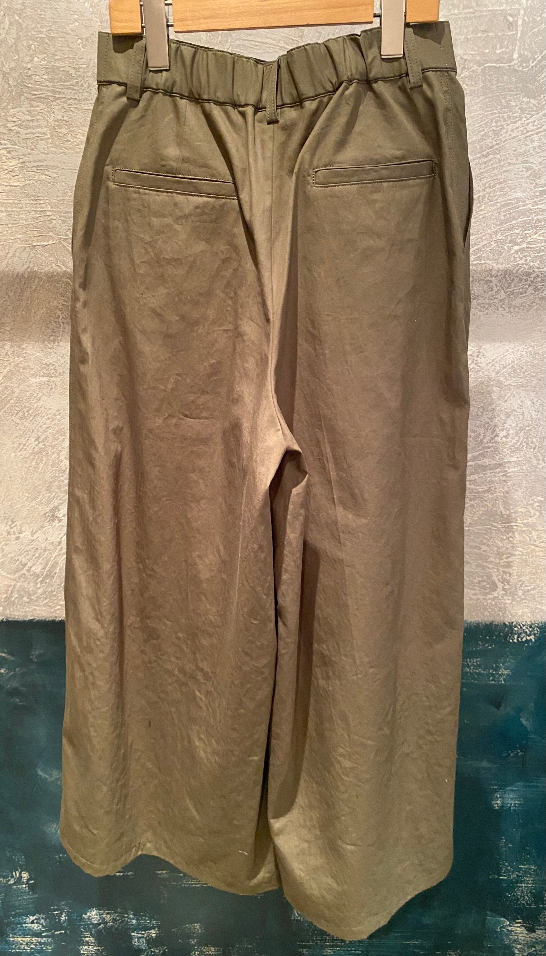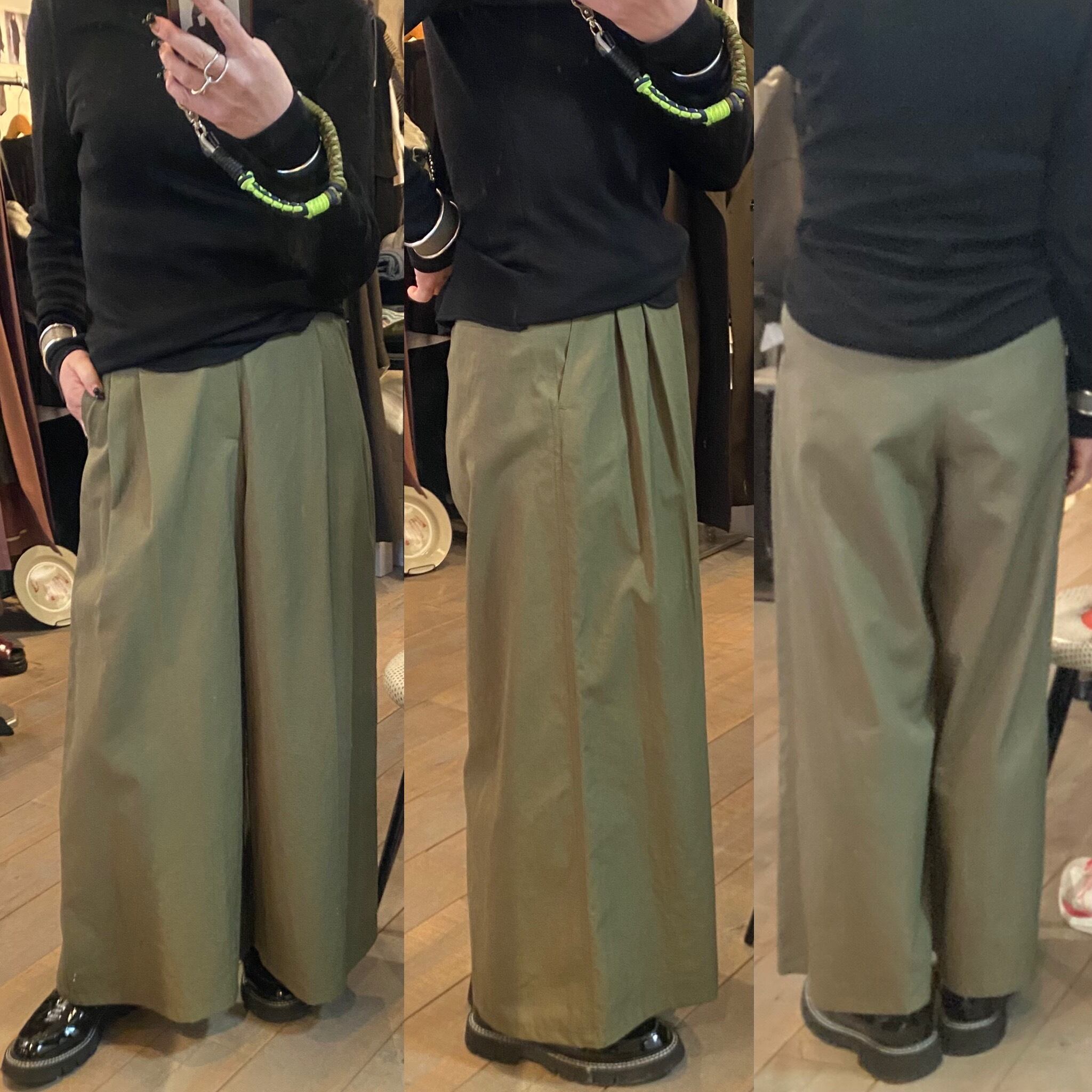 タックの入ったワイドパンツ。ボリュームが出過ぎずスッキリ履いて頂けます♪シンプルなトップスとのレイヤードでも存在感のあるパンツで、春夏のシンプルなコーディネートにも映えます♪