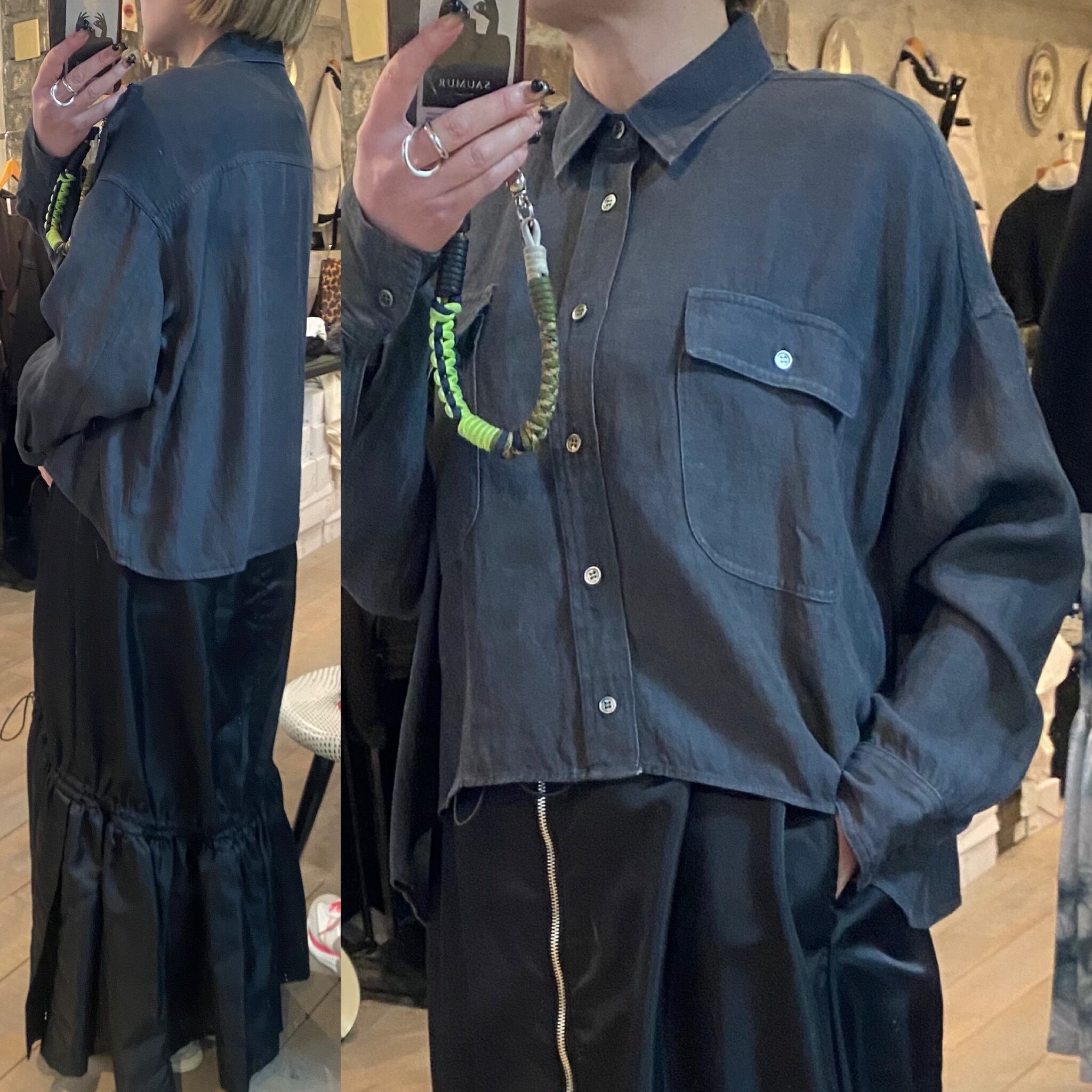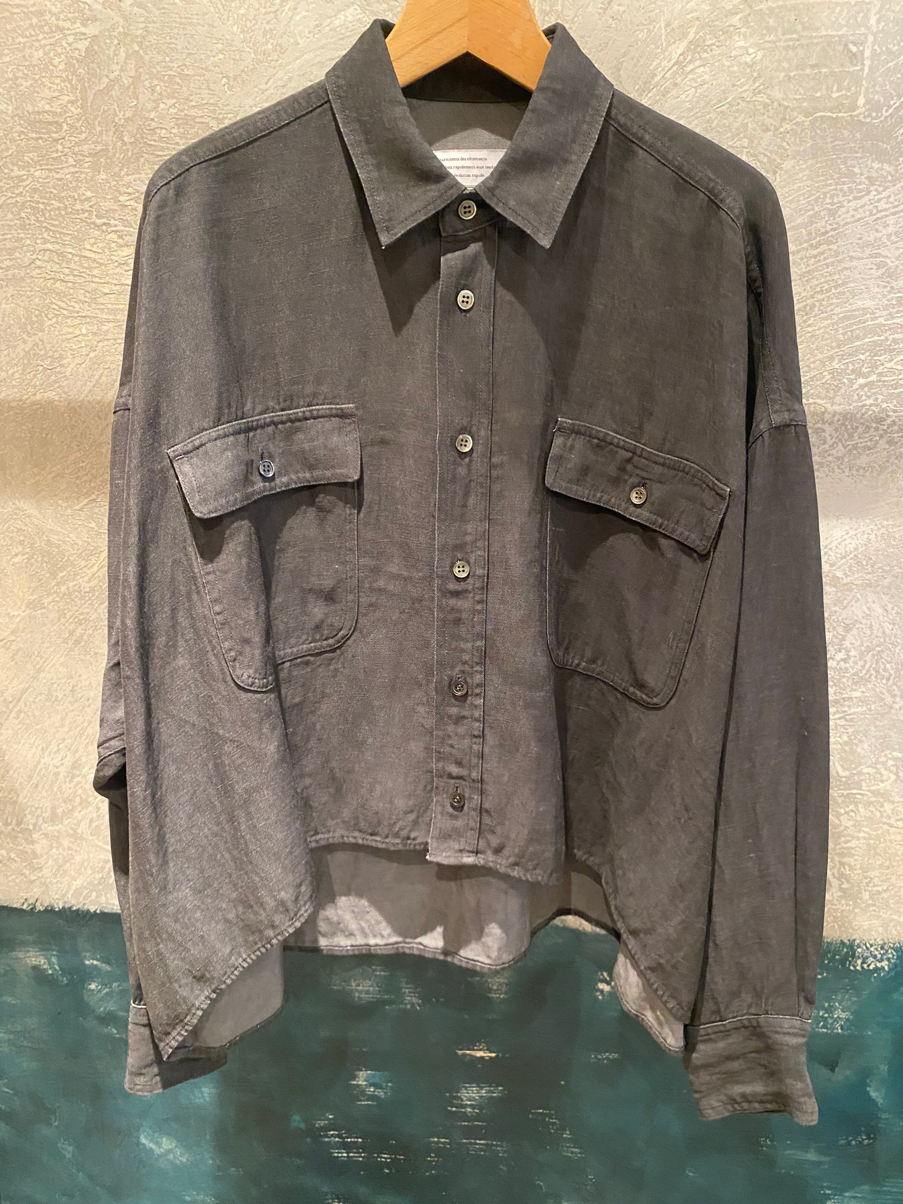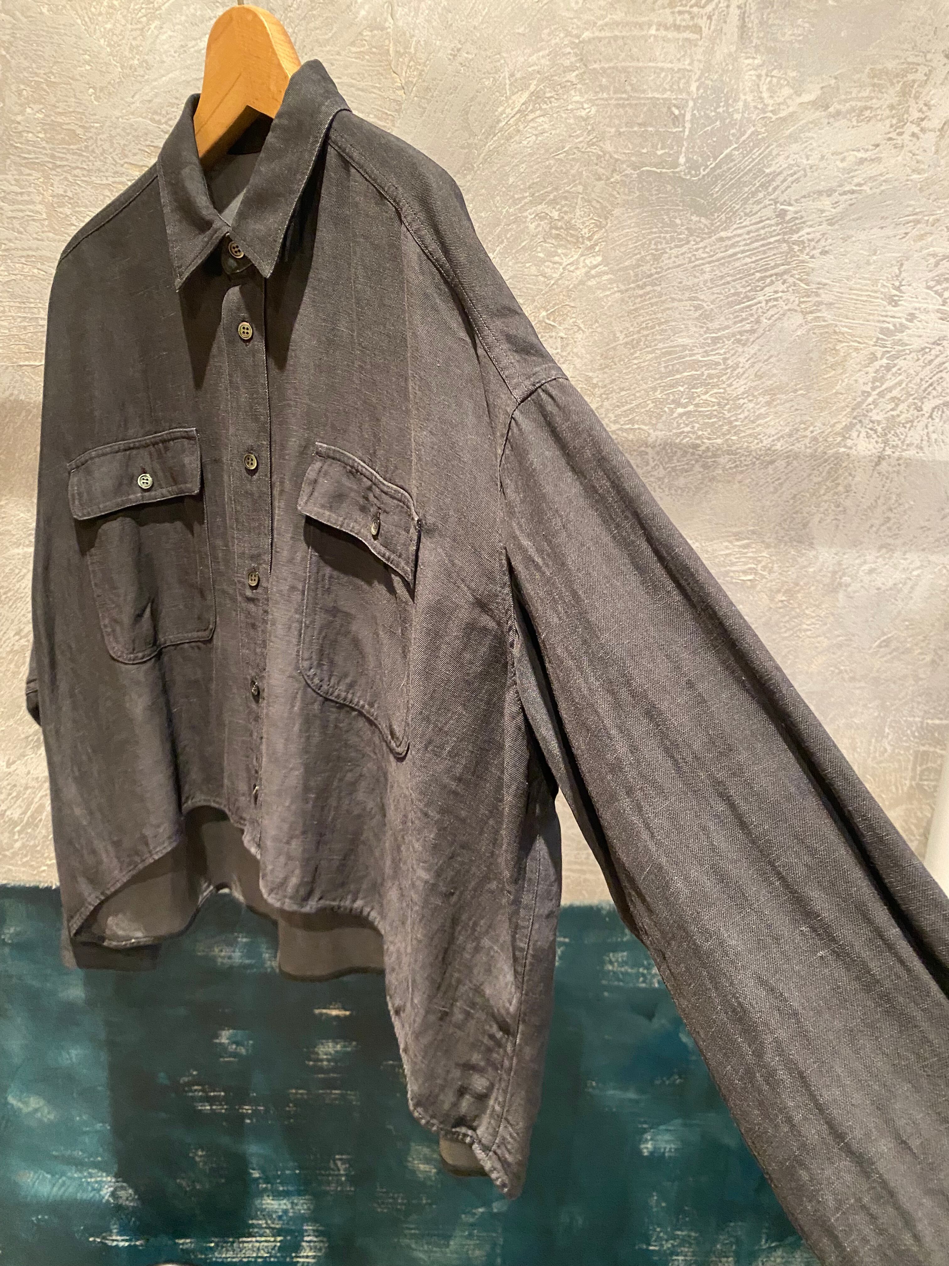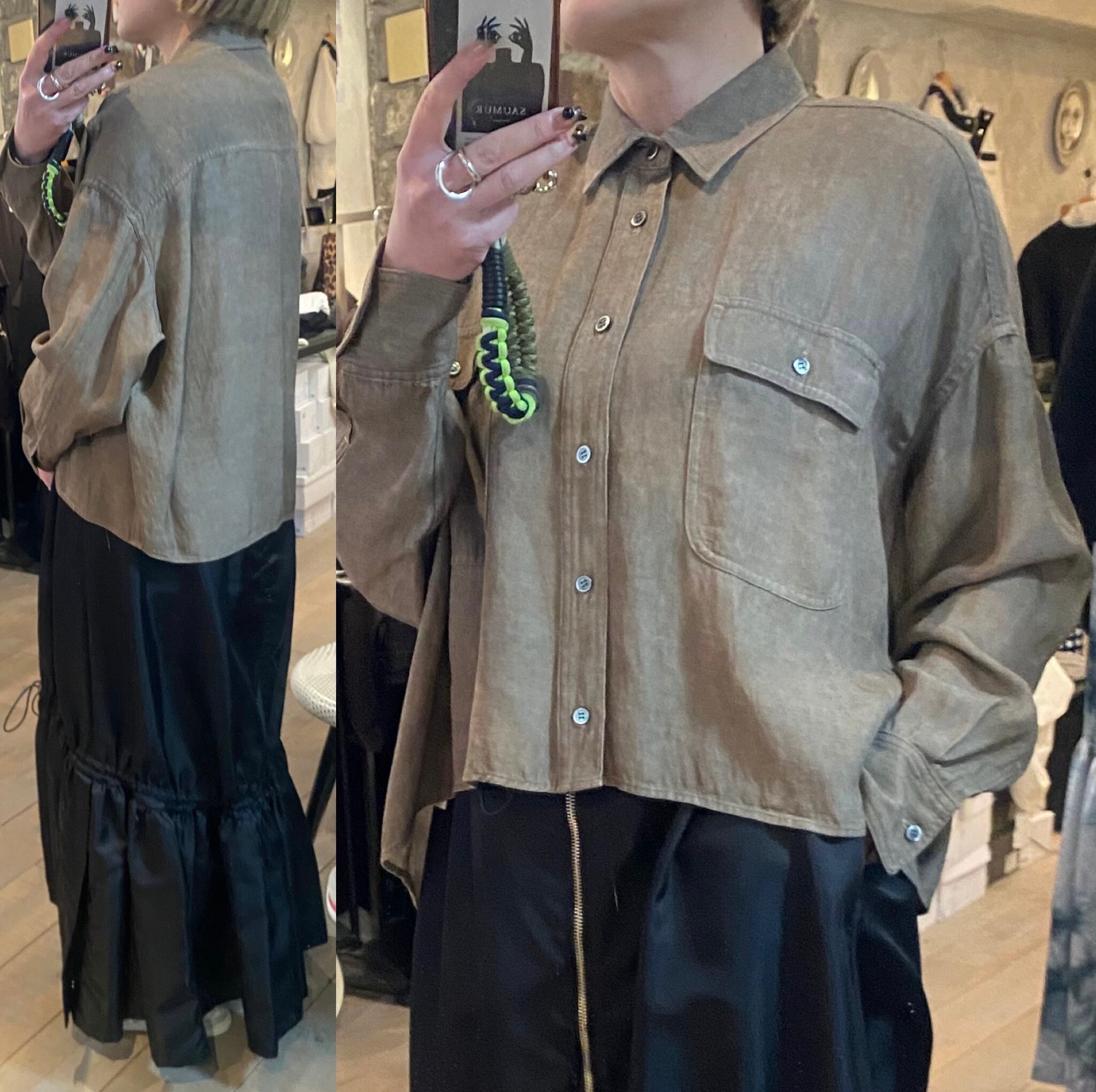 オーバーサイズのシャツジャケット。サラッと着るだけでも雰囲気の出るシルエット。閉めてブラウスとしても開けてシャツジャケットとしても対応できます。夏の羽織りとしても活躍するレーヨンリネン素材。製品染しているカラーの雰囲気も◎程よいハリ感とコシのある素材感です。