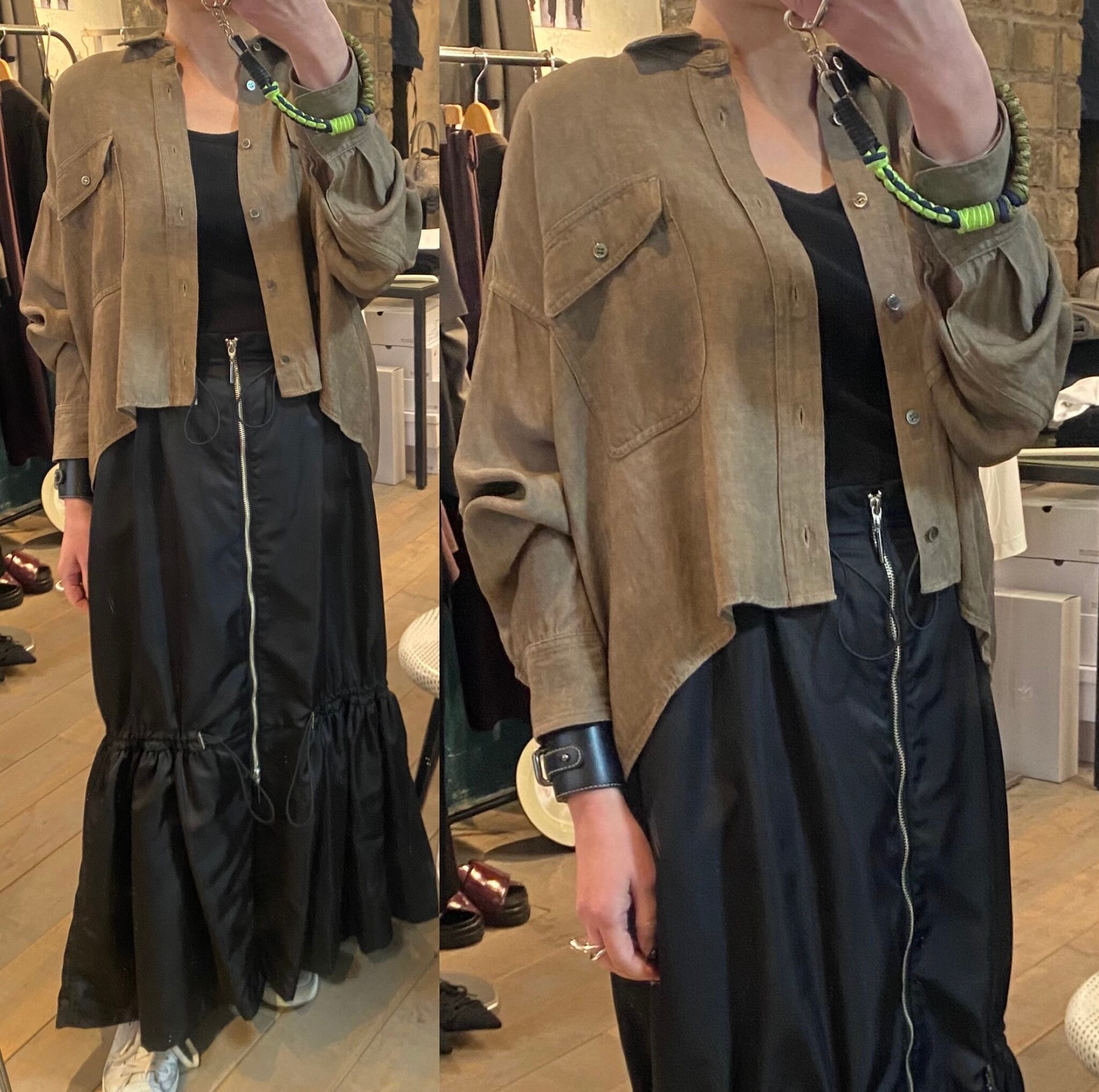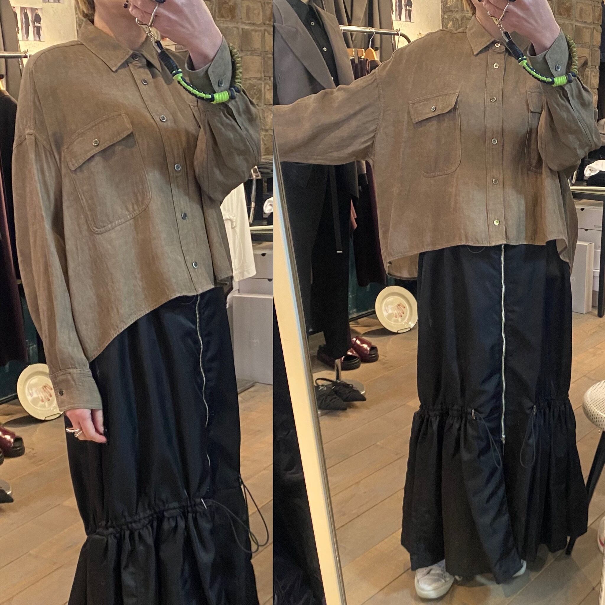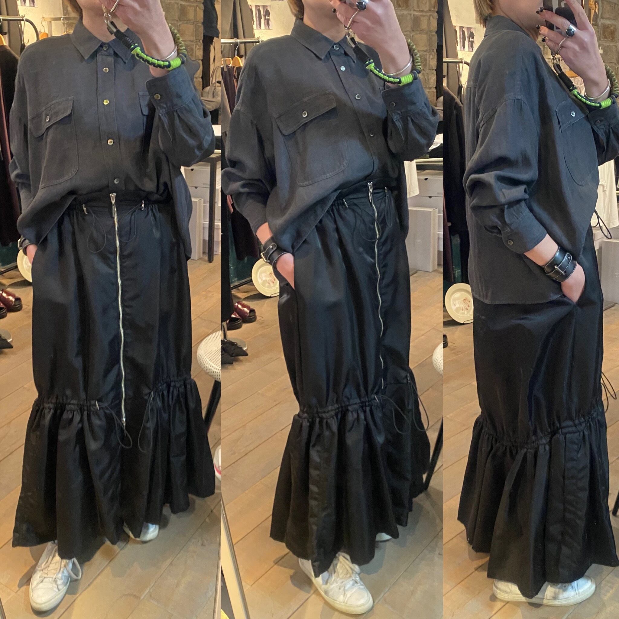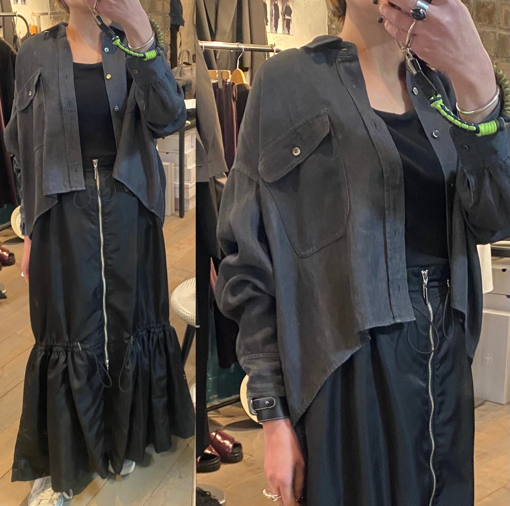 オーバーサイズのシャツジャケット。サラッと着るだけでも雰囲気の出るシルエット。閉めてブラウスとしても開けてシャツジャケットとしても対応できます。夏の羽織りとしても活躍するレーヨンリネン素材。製品染しているカラーの雰囲気も◎程よいハリ感とコシのある素材感です。